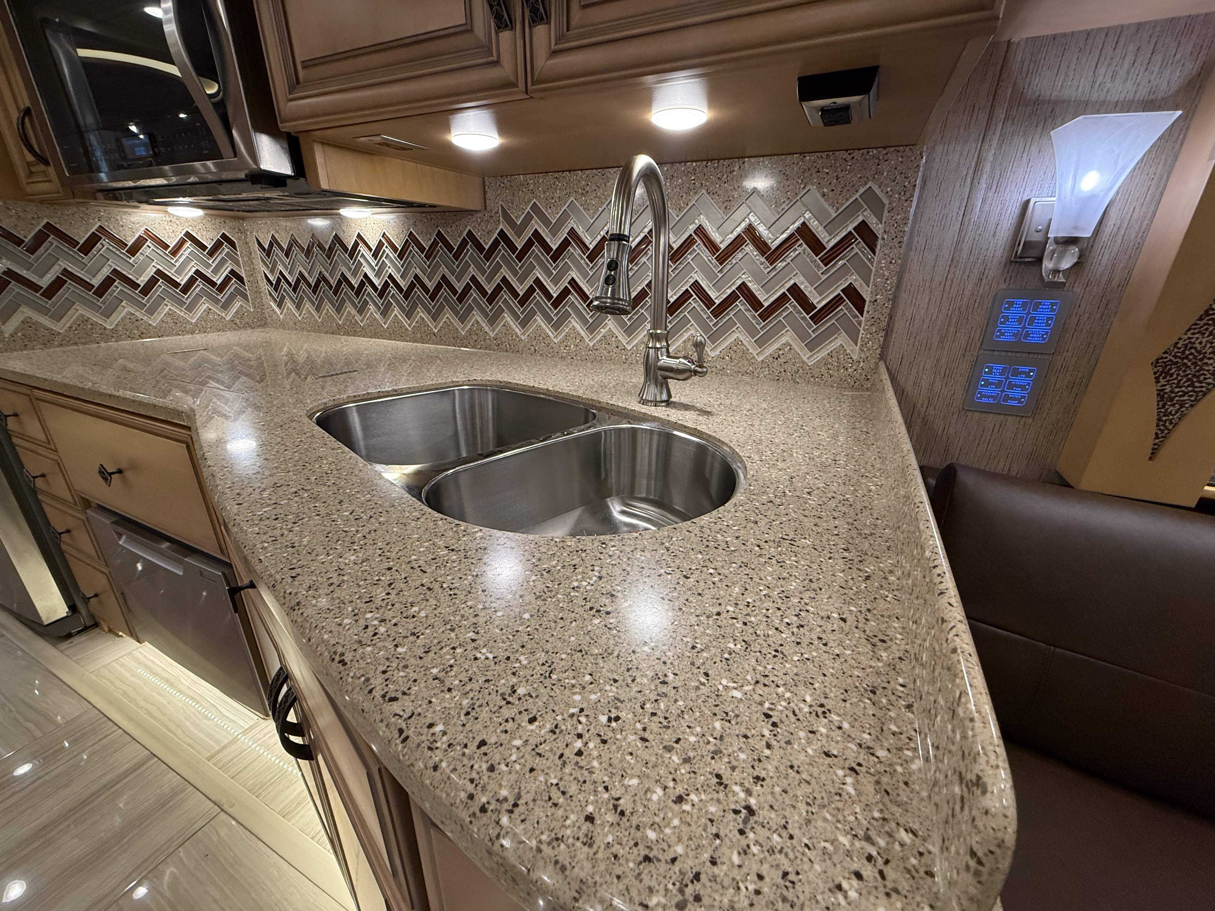 An 11-speaker JBL cockpit audio system is yours to enjoy behind the wheel, while an available exterior entertainment center complete with a 40 Sony LED TV and Soundbar can be had along with a side-mounted hammock.