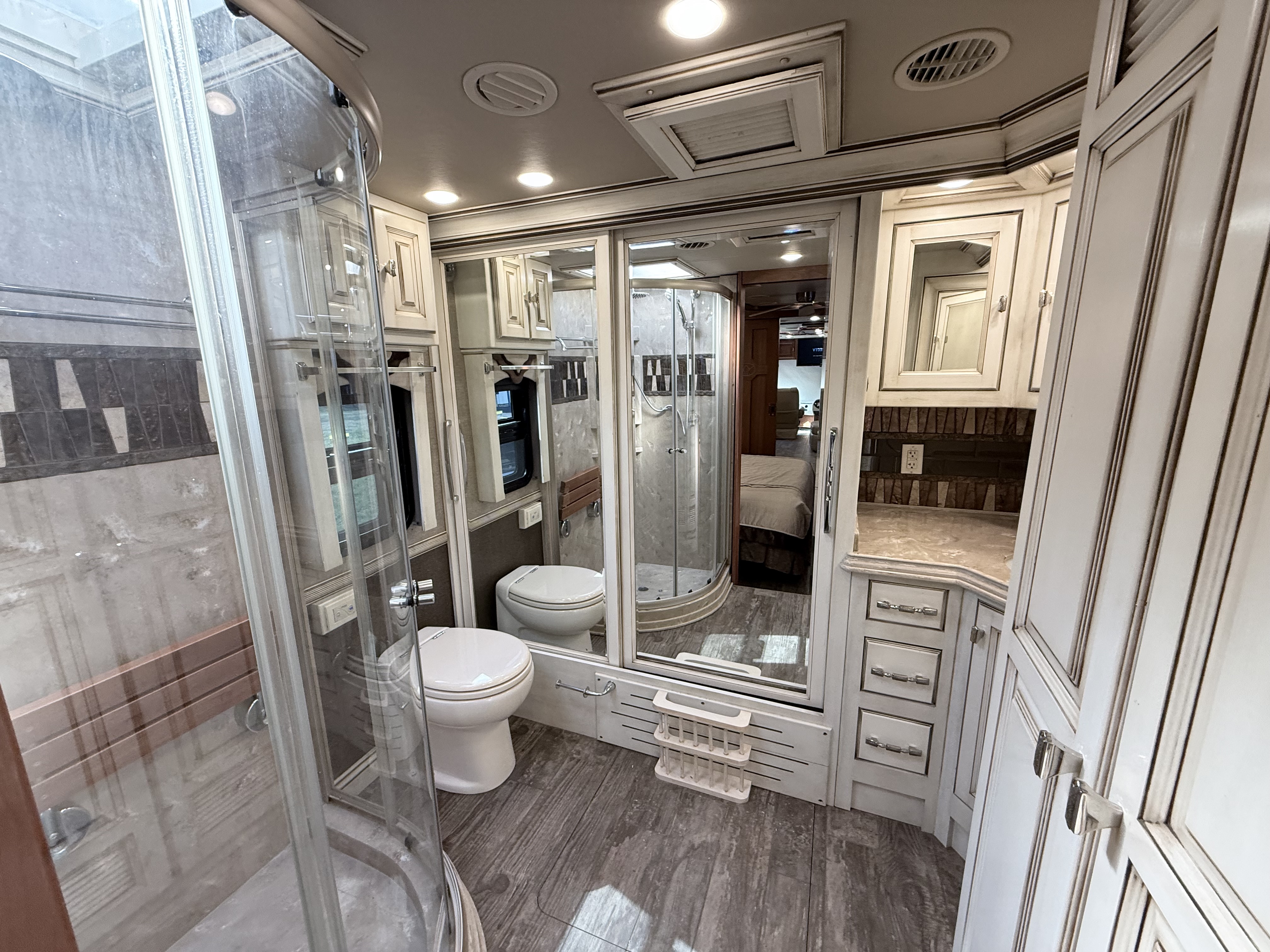 If you prioritize the drive as much as the destination, this 40 SP is the coach you have been waiting for. It sits on Tiffin’s proprietary PowerGlide Chassis with Independent Front Suspension, giving you a silky-smooth ride and a tight turning radius that makes this 40-footer handle like a luxury car. The exterior is sleek and modern with integrated Paramount roof awnings that hide the hardware for a clean profile, while the massive 450 HP Cummins engine provides the torque you need to flatten mountain grades with ease. Inside, the luxury is undeniable, featuring heated porcelain tile floors and a spacious Quad-Slide layout filled with hand-glazed hardwood cabinetry that proves they don't build them like this anymore.