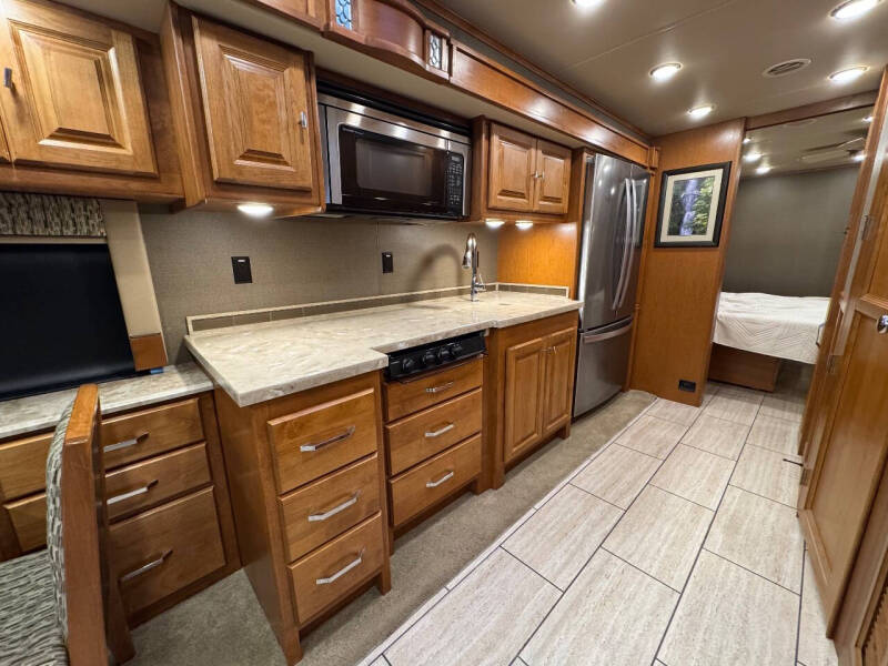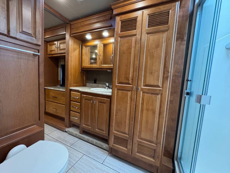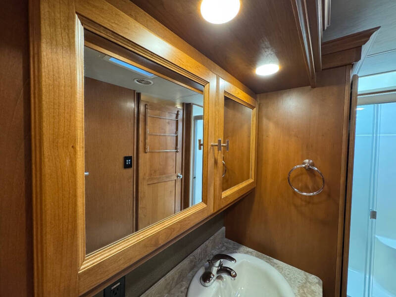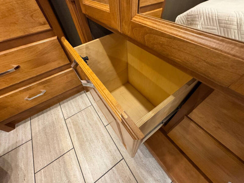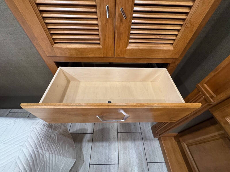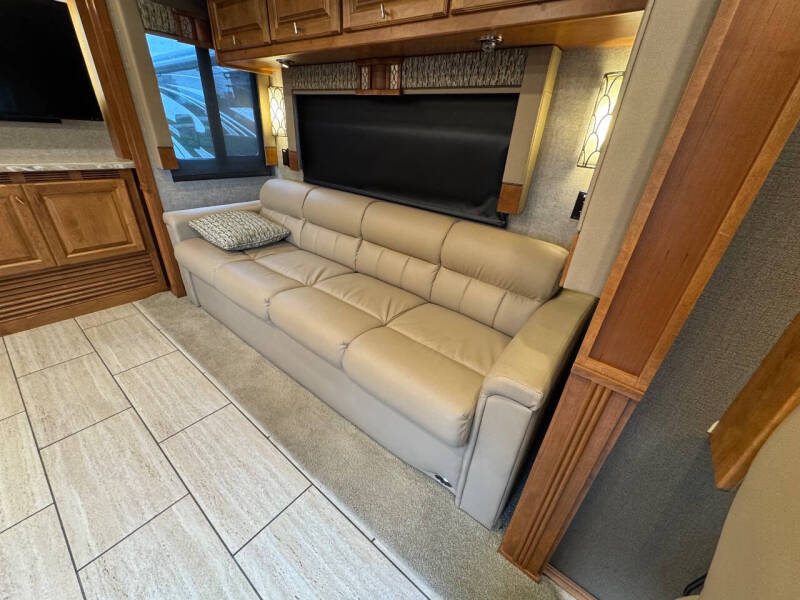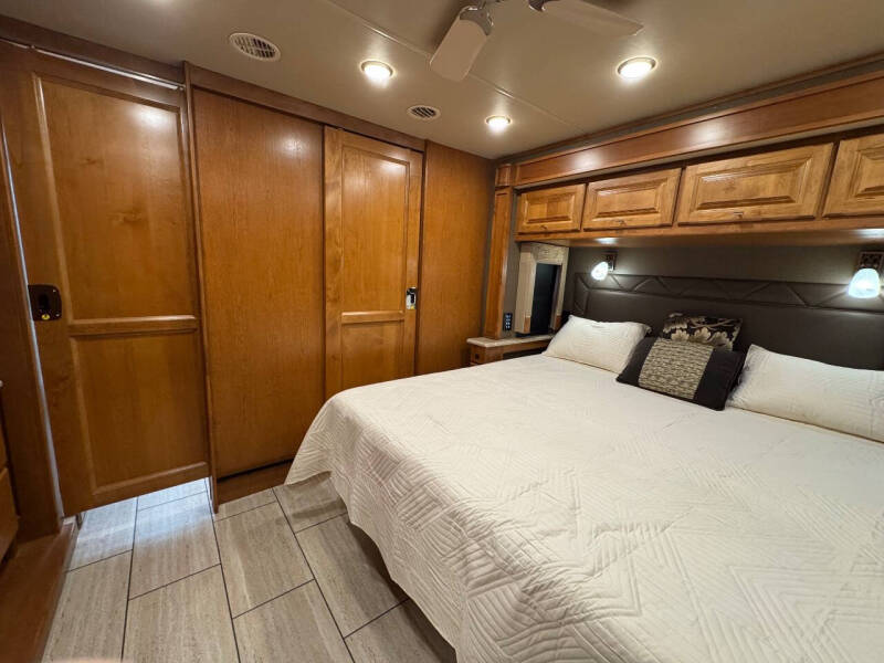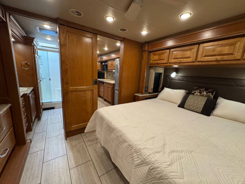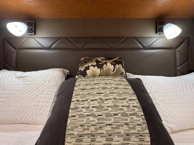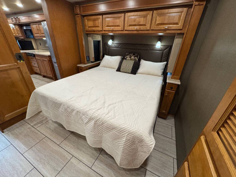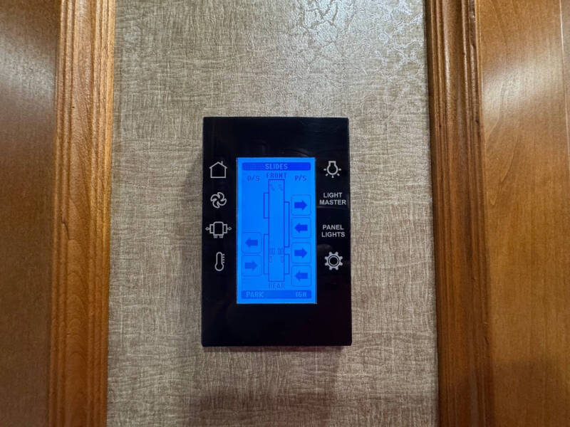 End your travel days with unparalleled ease. Transition from "driving" to "relaxing" in minutes thanks to the intuitive multiplex control panel, managing systems and the dual-ducted A/Cs with a single tap. Whether on shore power or venturing off-grid, the robust inverter and push-button Onan generator provide seamless energy. Simply pull in, level the coach, and exhale—you've already arrived.