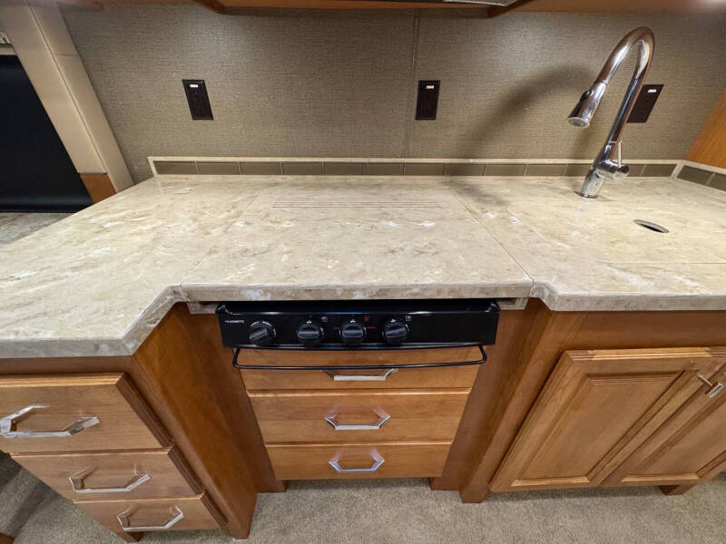 Step inside and let the stress melt away. With four slide-outs engaged, the 34PA opens into a residential-style haven. The living area is perfectly arranged for socializing, featuring comfortable seating and optimized entertainment viewing. The sought-after bath-and-a-half configuration provides a private master sanctuary, while the elegant galley makes meal prep a pleasure with solid-surface counters and a modern convection microwave.