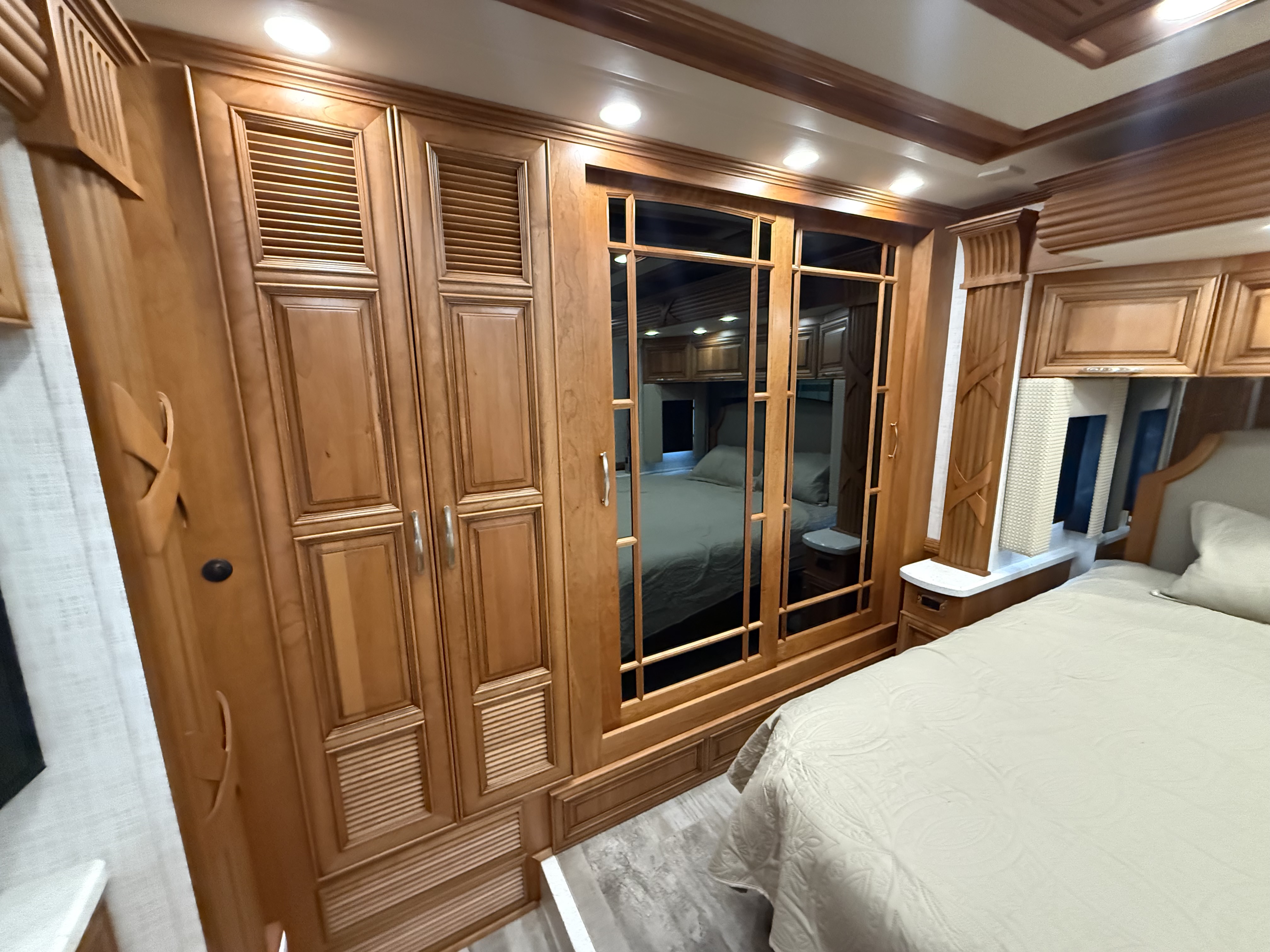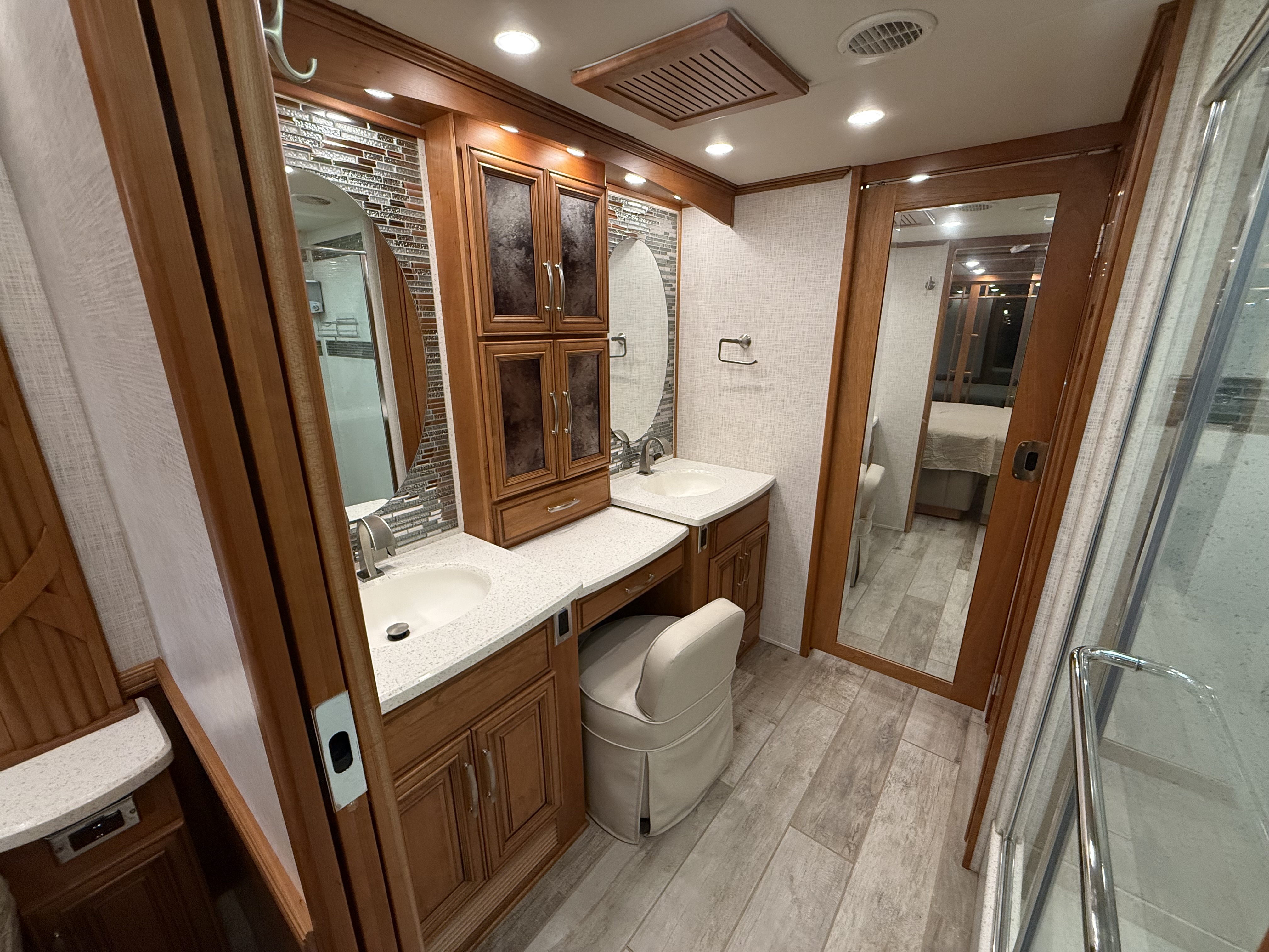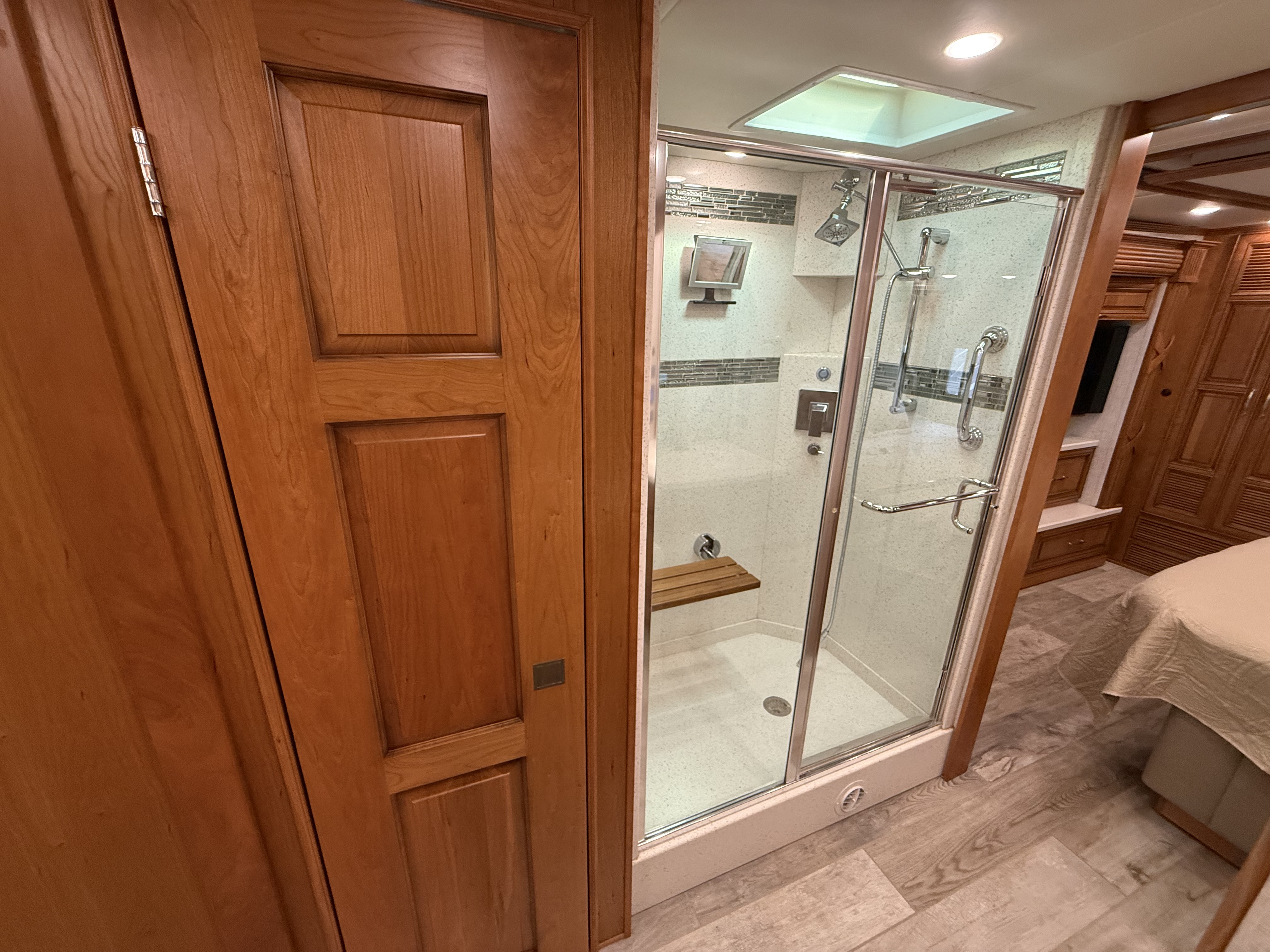 The 2019 Newmar Mountain Aire 4550 is the kind of coach that ruins you for anything else; the quietness inside the cabin while driving is almost unbelievable. It’s built with thicker walls and floors than most competitors, meaning once you park and shut the door, you barely hear the campground outside. We really appreciate the 4550 floor plan for its master bath setup—it feels like a high-end hotel suite with a massive shower and beautiful cabinetry, plus the 500HP engine means you aren't the slow guy holding up traffic on mountain grades.