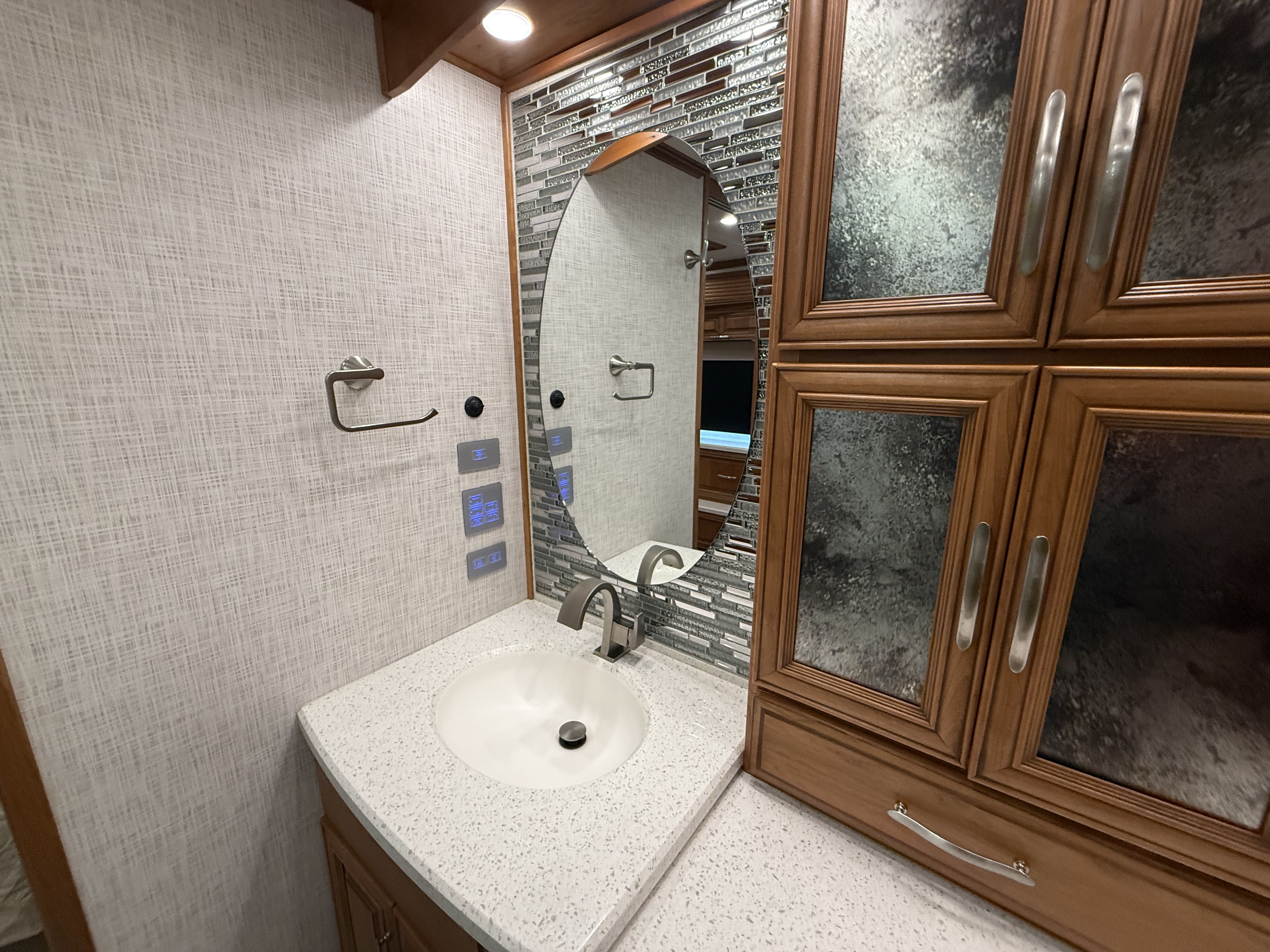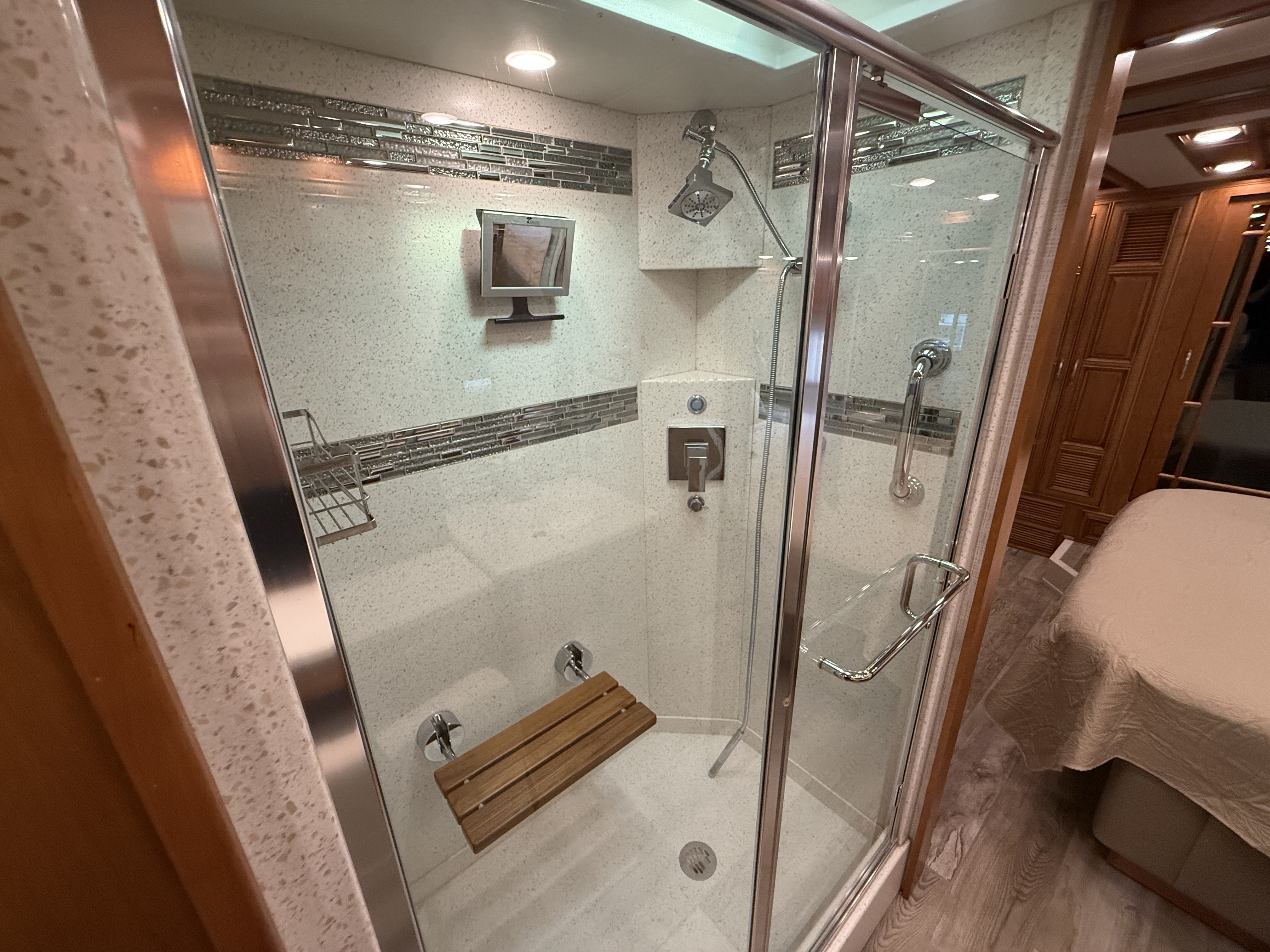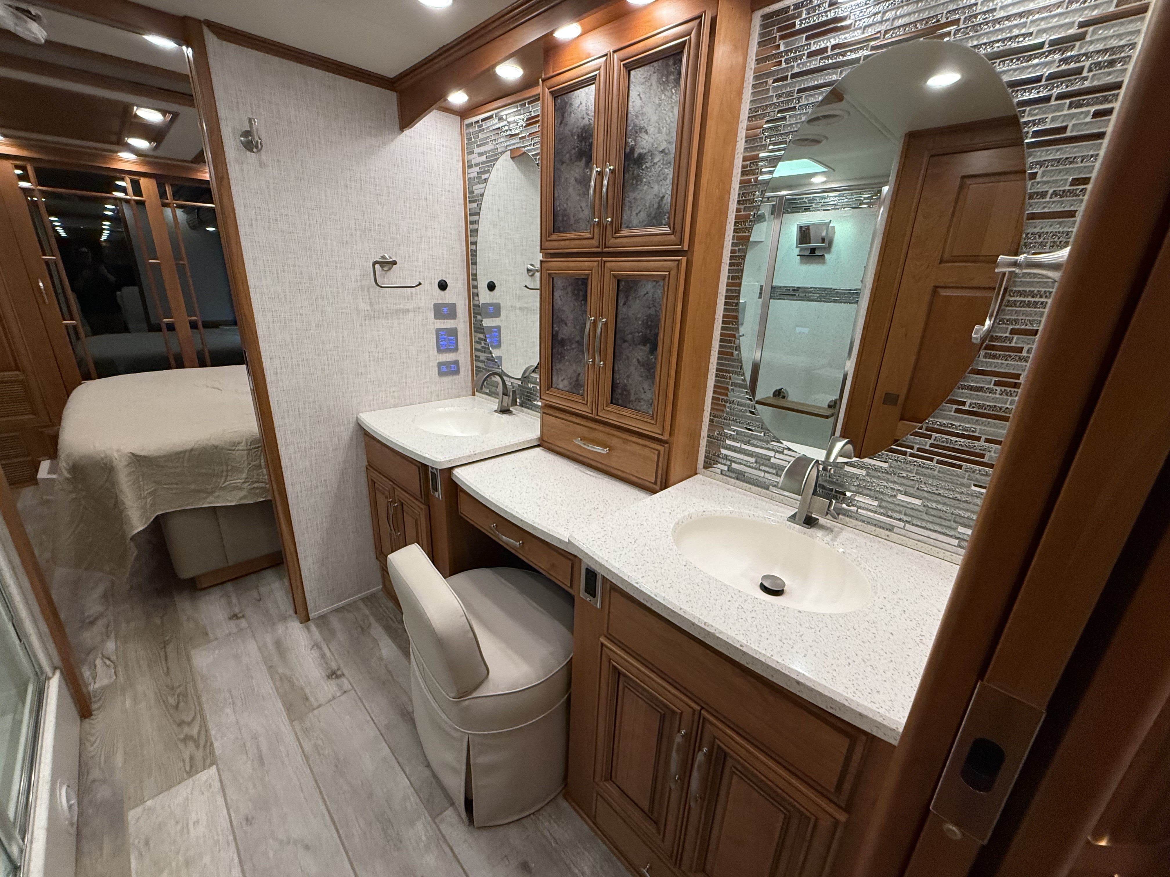 The 2019 Newmar Mountain Aire 4550 is the kind of coach that ruins you for anything else; the quietness inside the cabin while driving is almost unbelievable. It’s built with thicker walls and floors than most competitors, meaning once you park and shut the door, you barely hear the campground outside. We really appreciate the 4550 floor plan for its master bath setup—it feels like a high-end hotel suite with a massive shower and beautiful cabinetry, plus the 500HP engine means you aren't the slow guy holding up traffic on mountain grades.