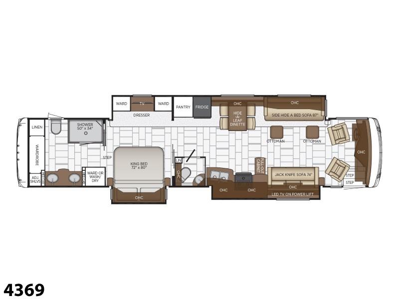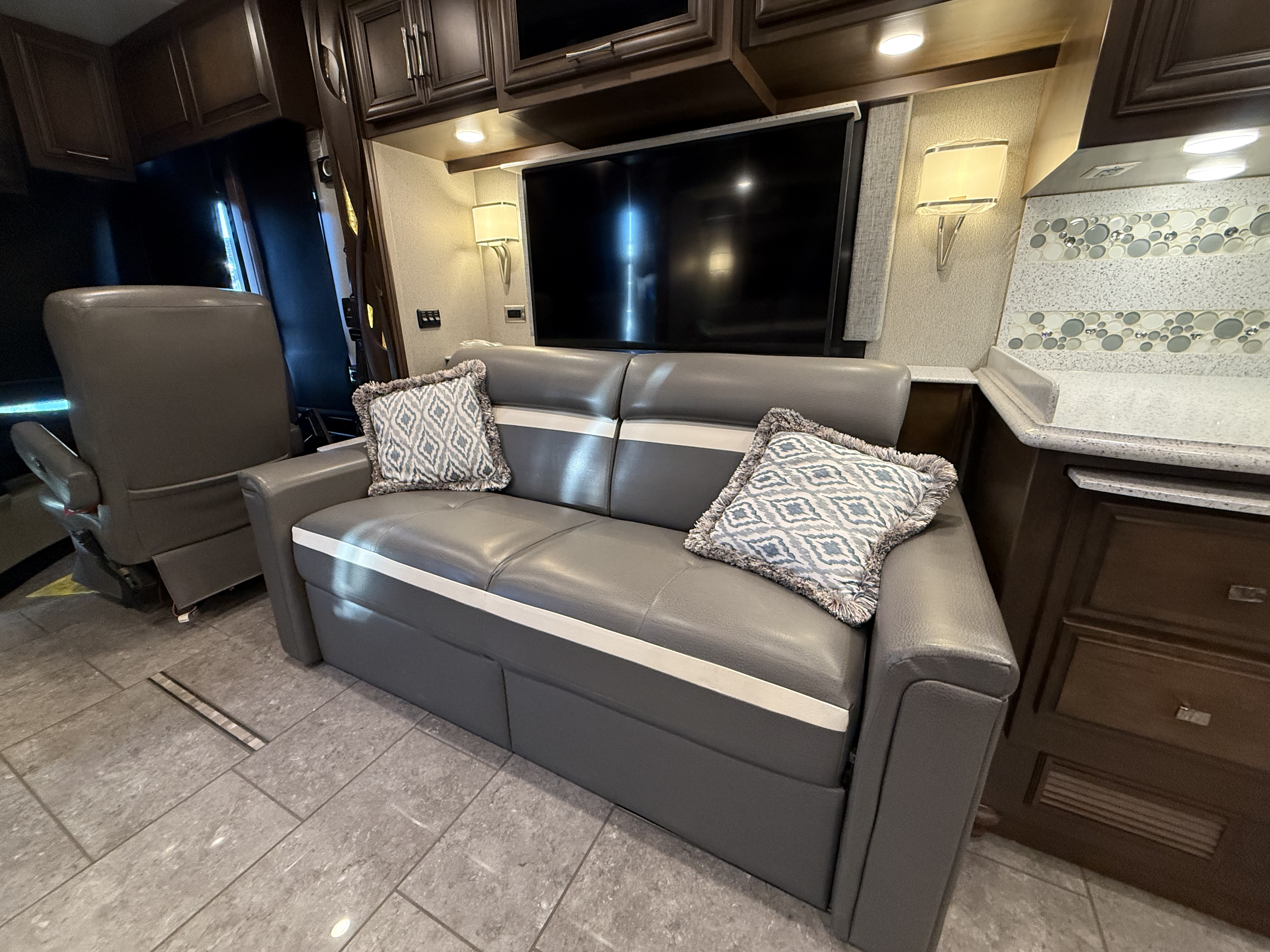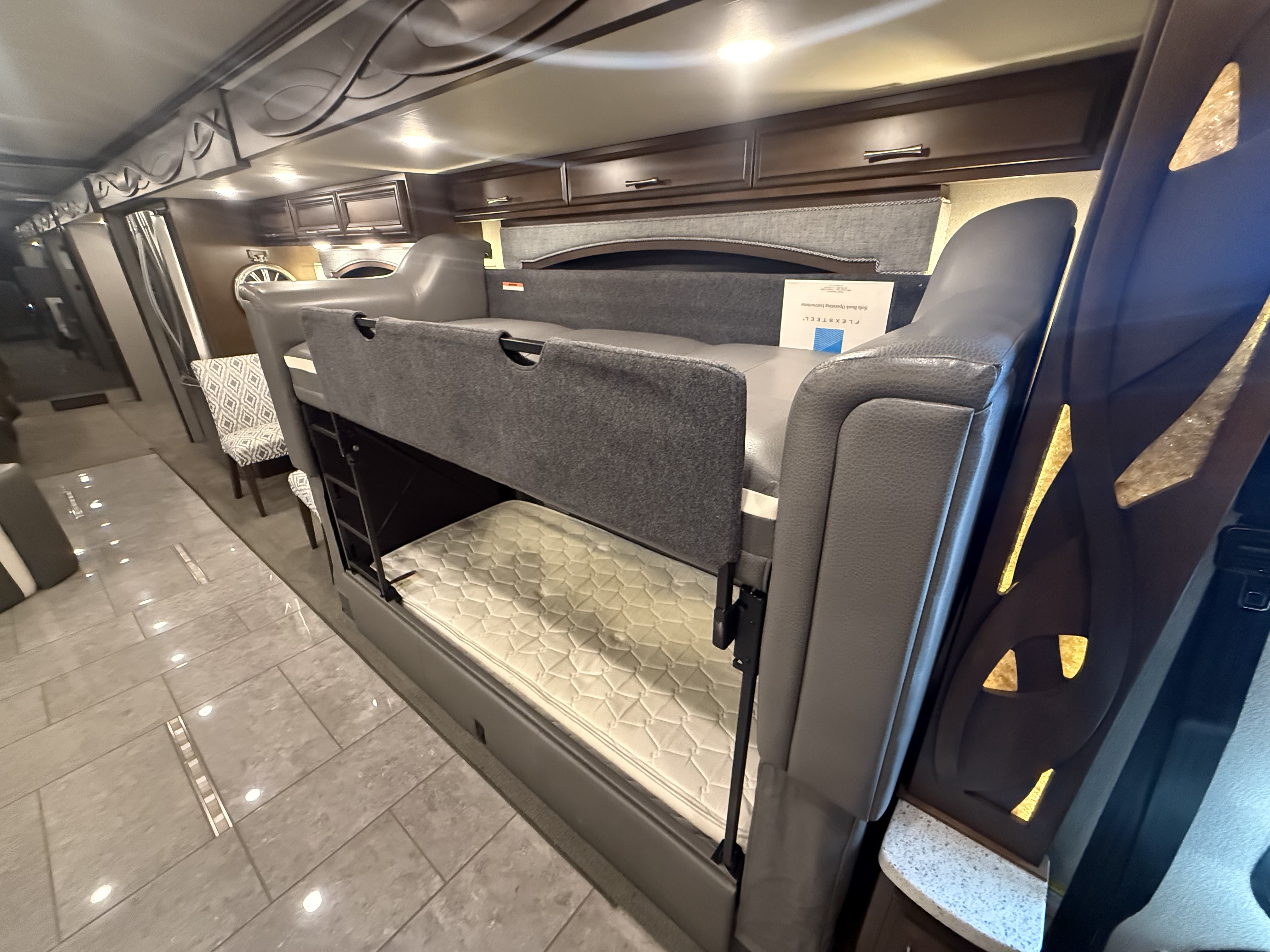 Filled with residential appointments, the 2019 Ventana is designed to feel like home. Floor plan 4348 can position a pair of available Flexsteel recliners across from a spacious base cabinet, and every Ventana is equipped to entertain thanks to a Bose soundbar and two Blu-ray/DVD players. Select floor plans even offer power-adjustable theater seats or a sofa that quickly converts to bunk beds.