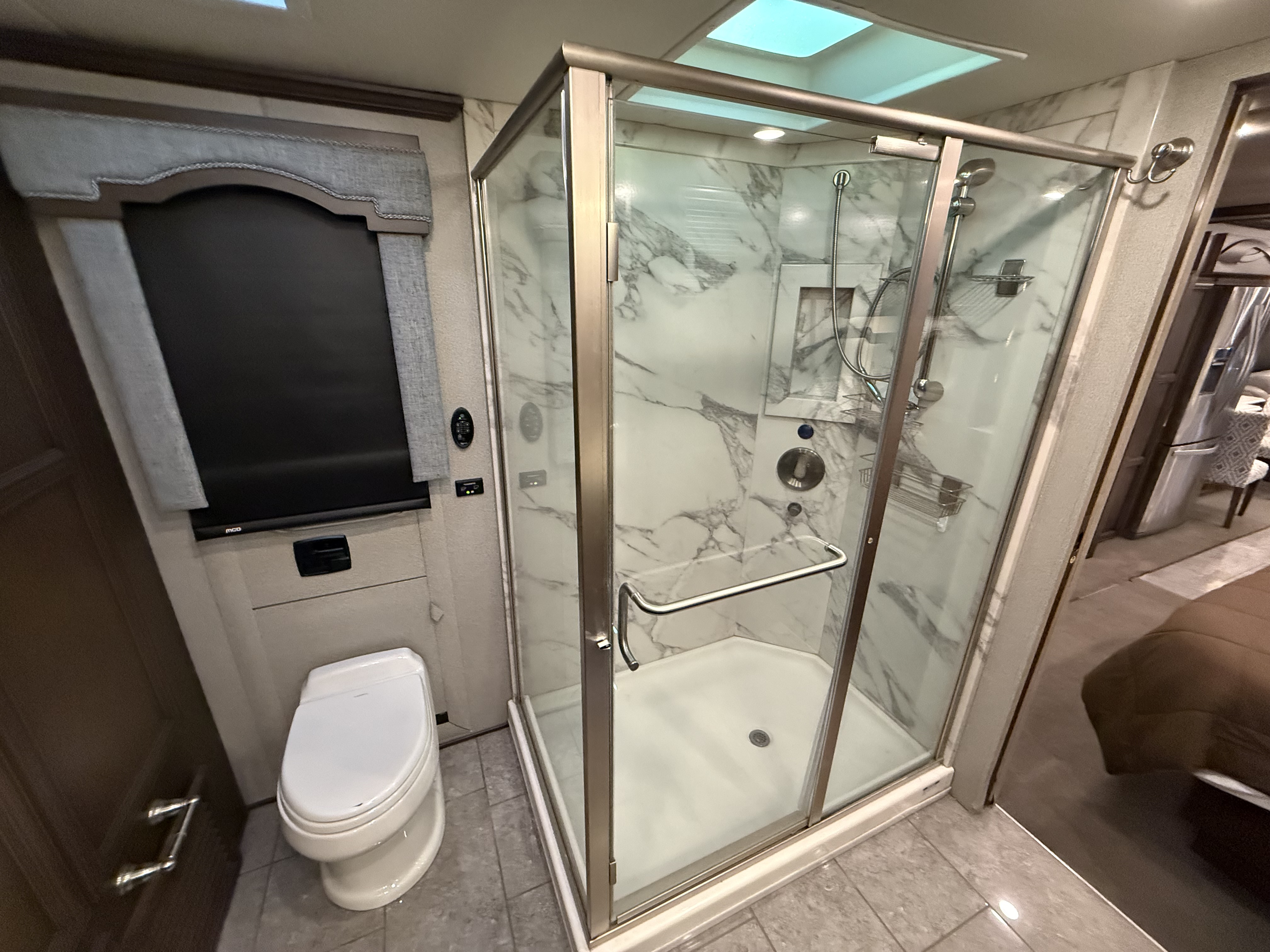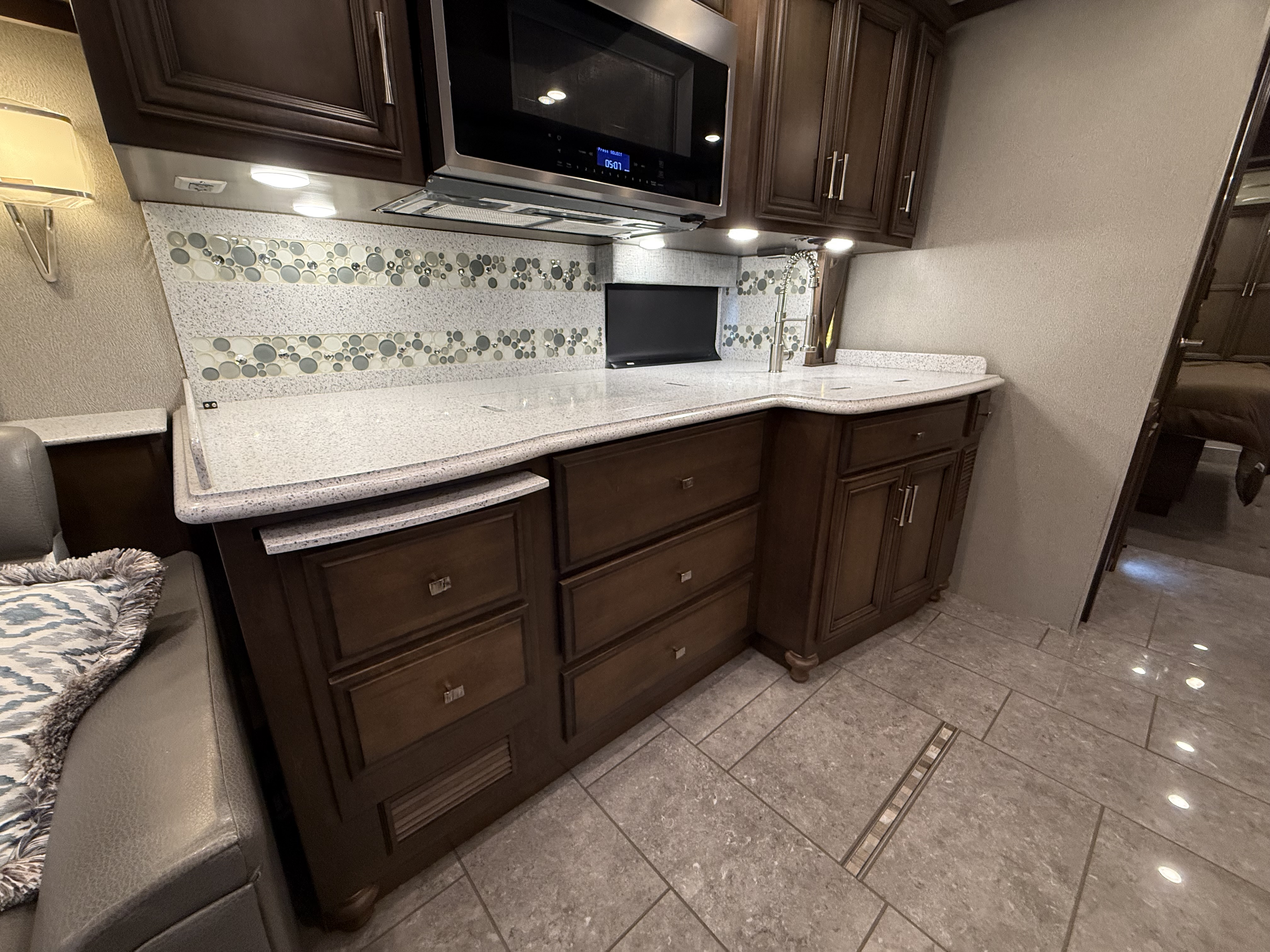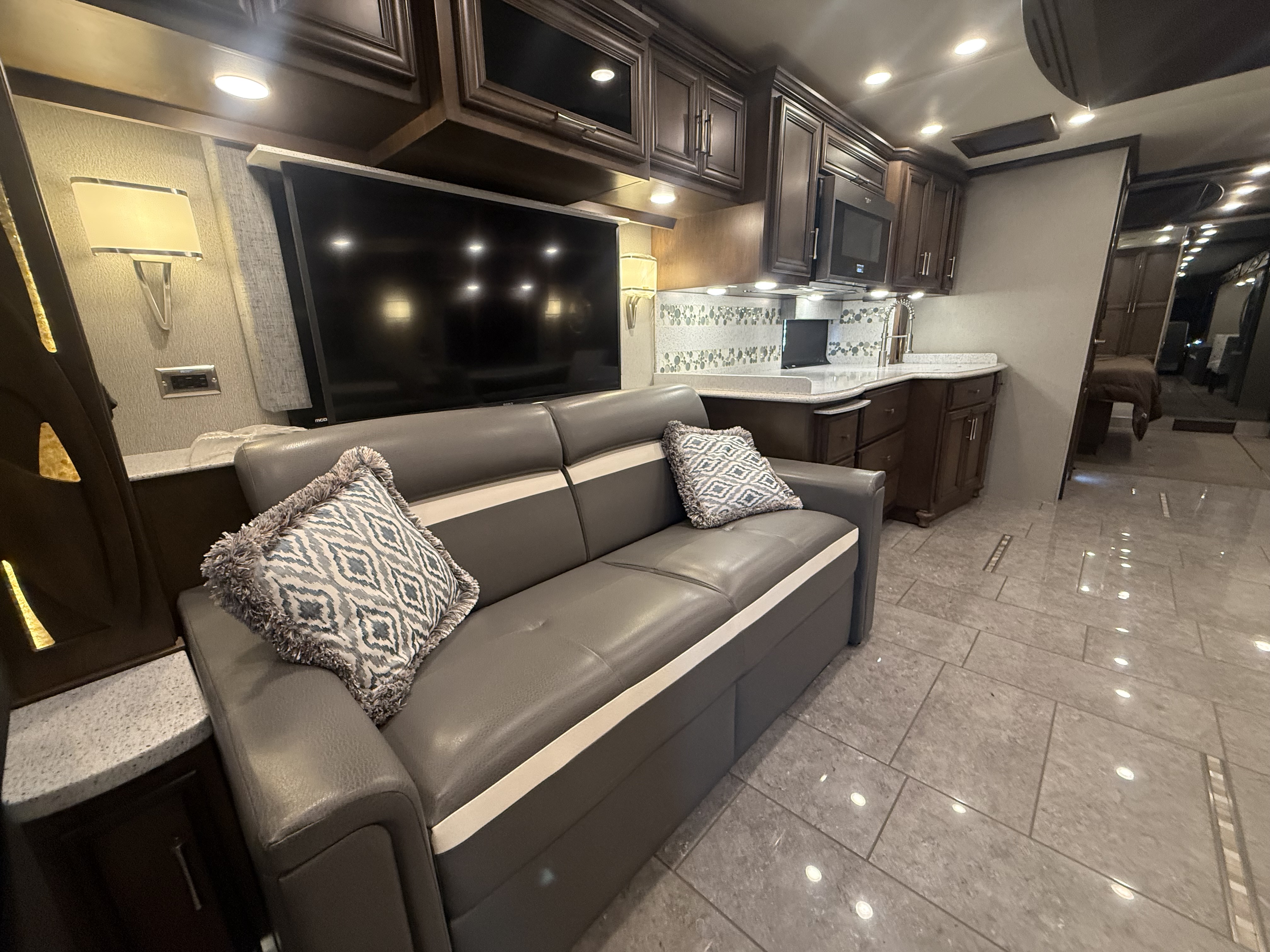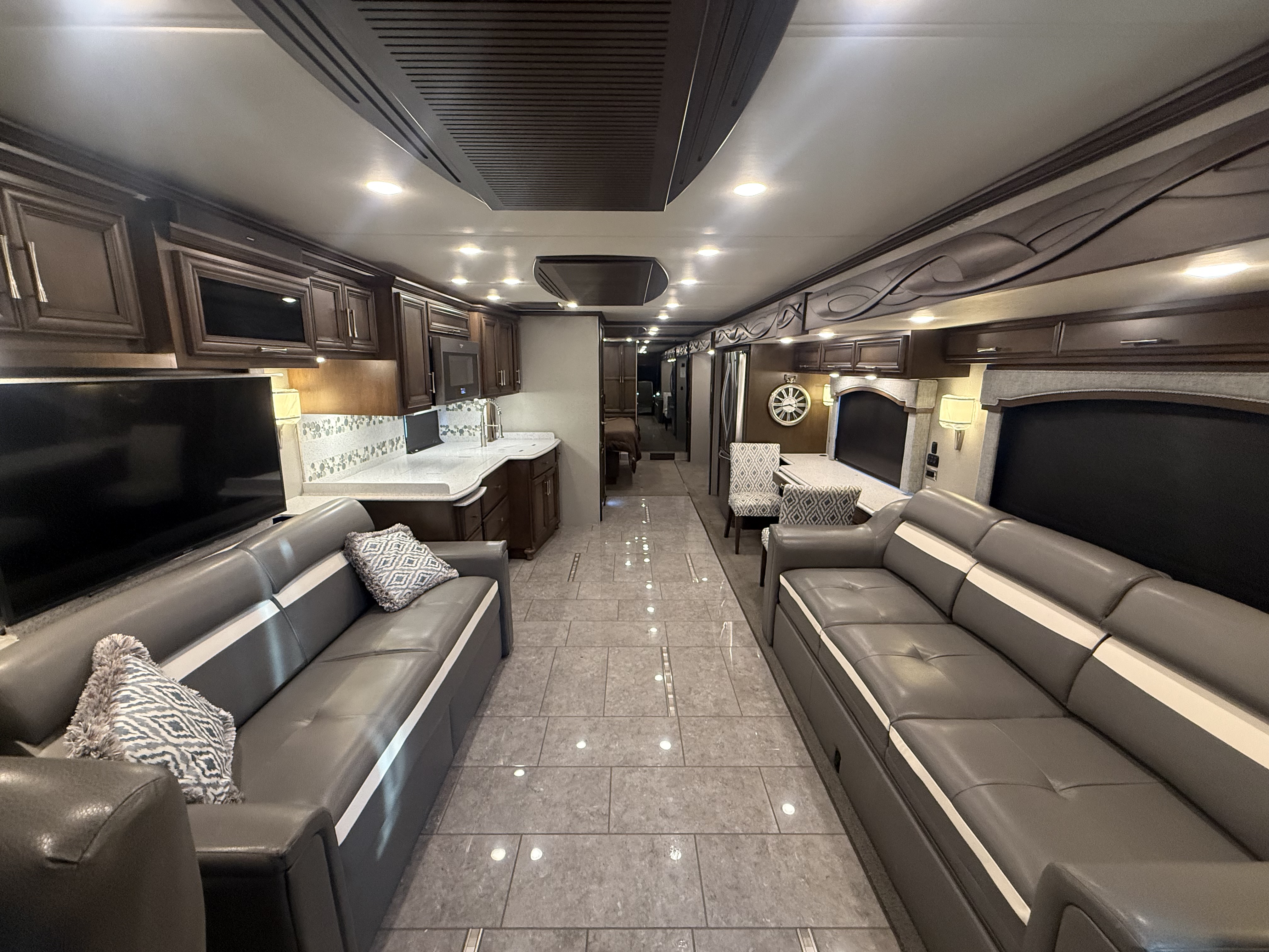The 2019 Newmar Ventana 4369 is one of those coaches that just gets everything right, which is why it’s so hard to find them on the used market. The biggest selling point here is the Comfort Drive steering; if you’ve ever been exhausted after wrestling a big RV down the highway in the wind, this system changes everything—you can practically drive it with one finger. Inside, it feels like a high-end condo with the bath-and-a-half layout (a marriage saver!) and the heated tile floors that make chilly mornings much more pleasant.