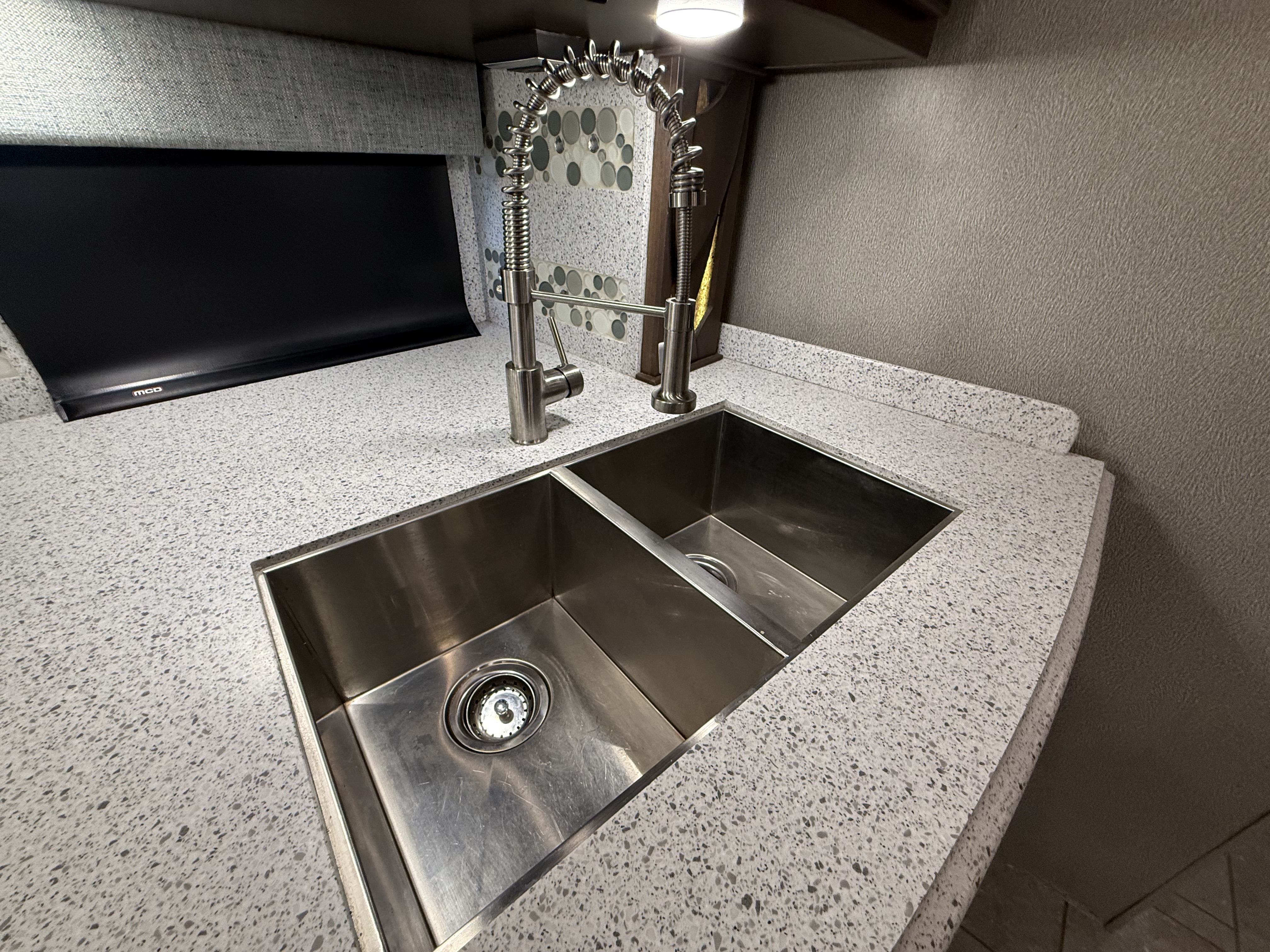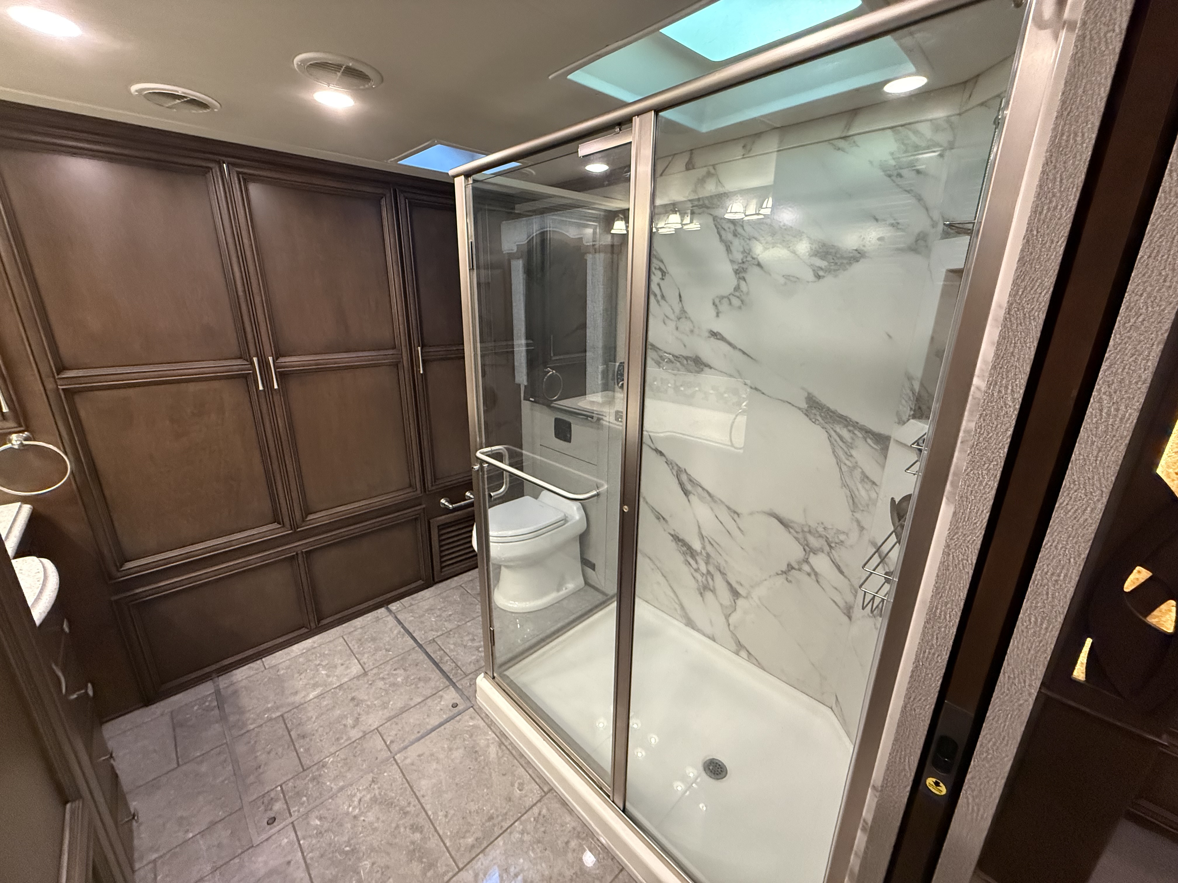 This is a coach you can live in comfortably for months at a time. It offers that heavy, secure diesel pusher ride without the price tag of the million-dollar buses.