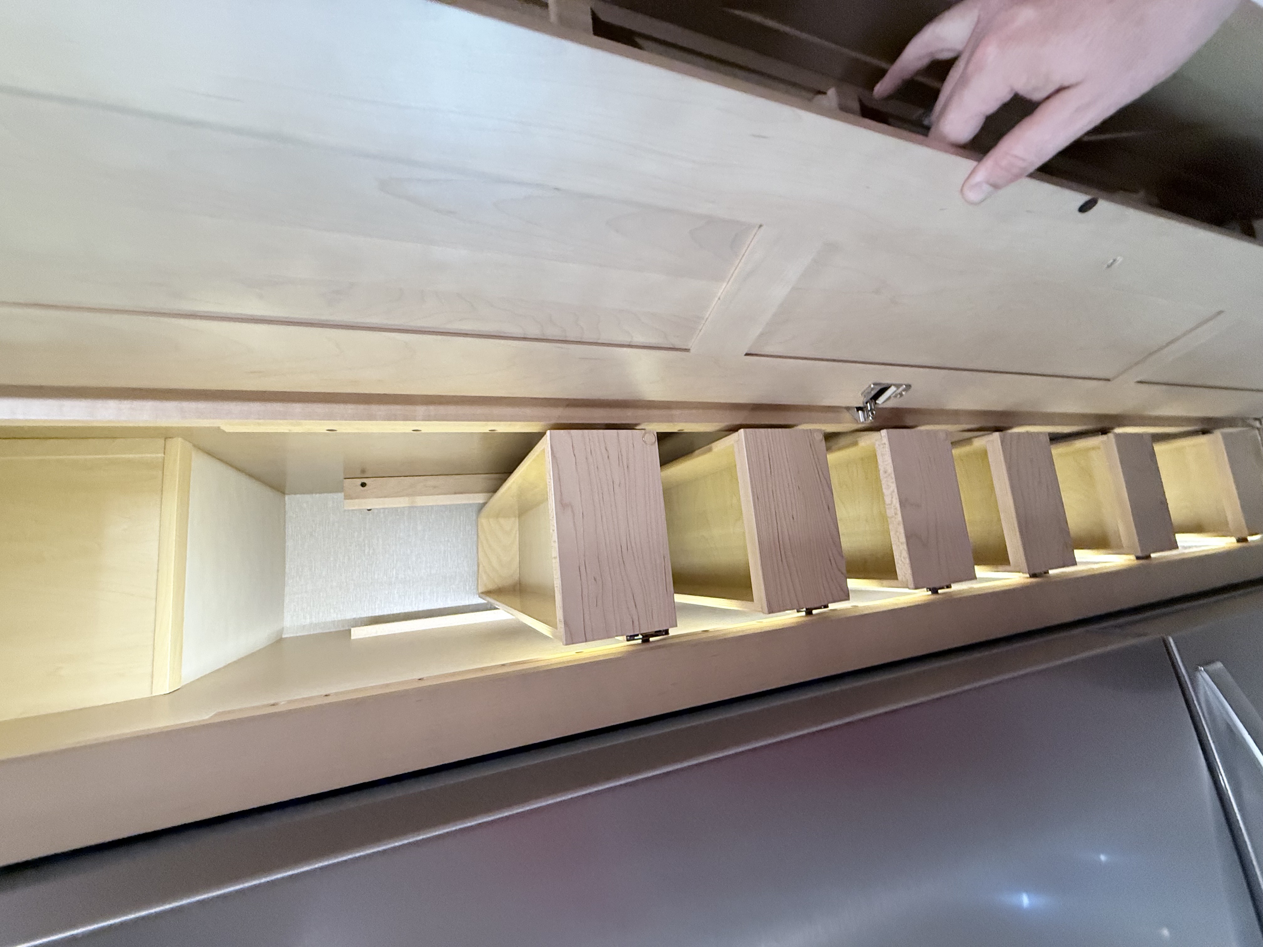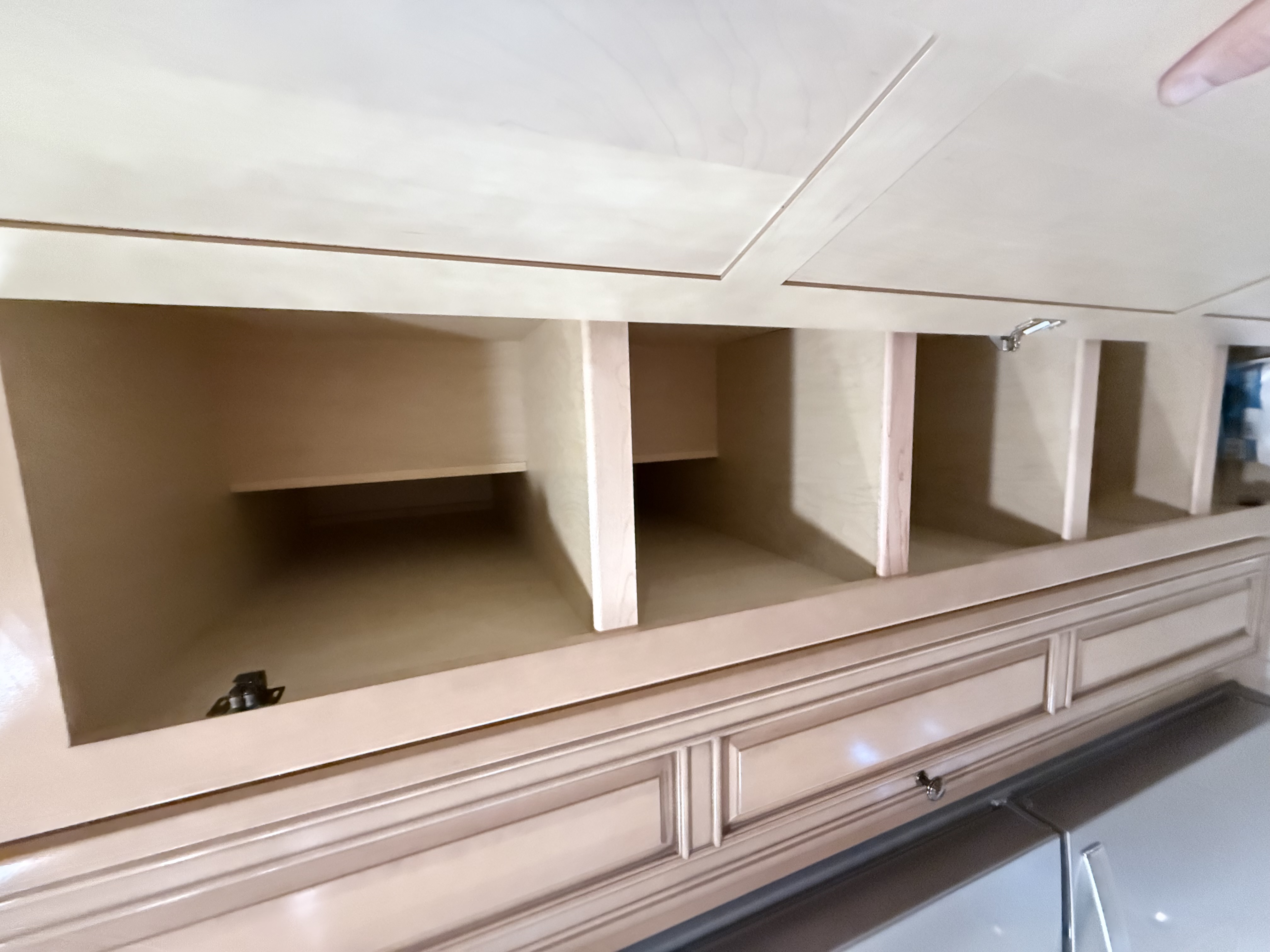 - Pullout Pantry Shelves with Travel Latch on Pantry Doors