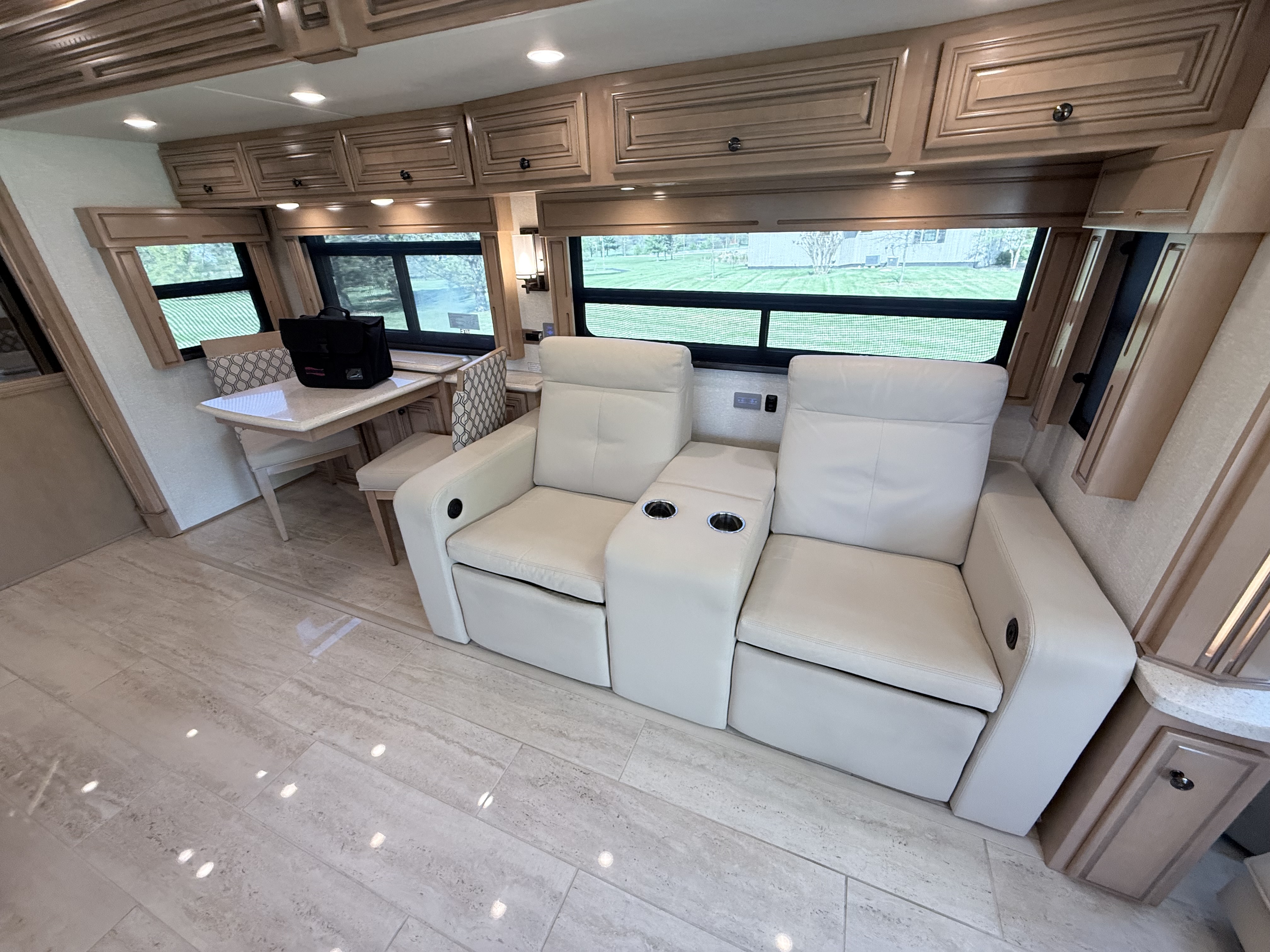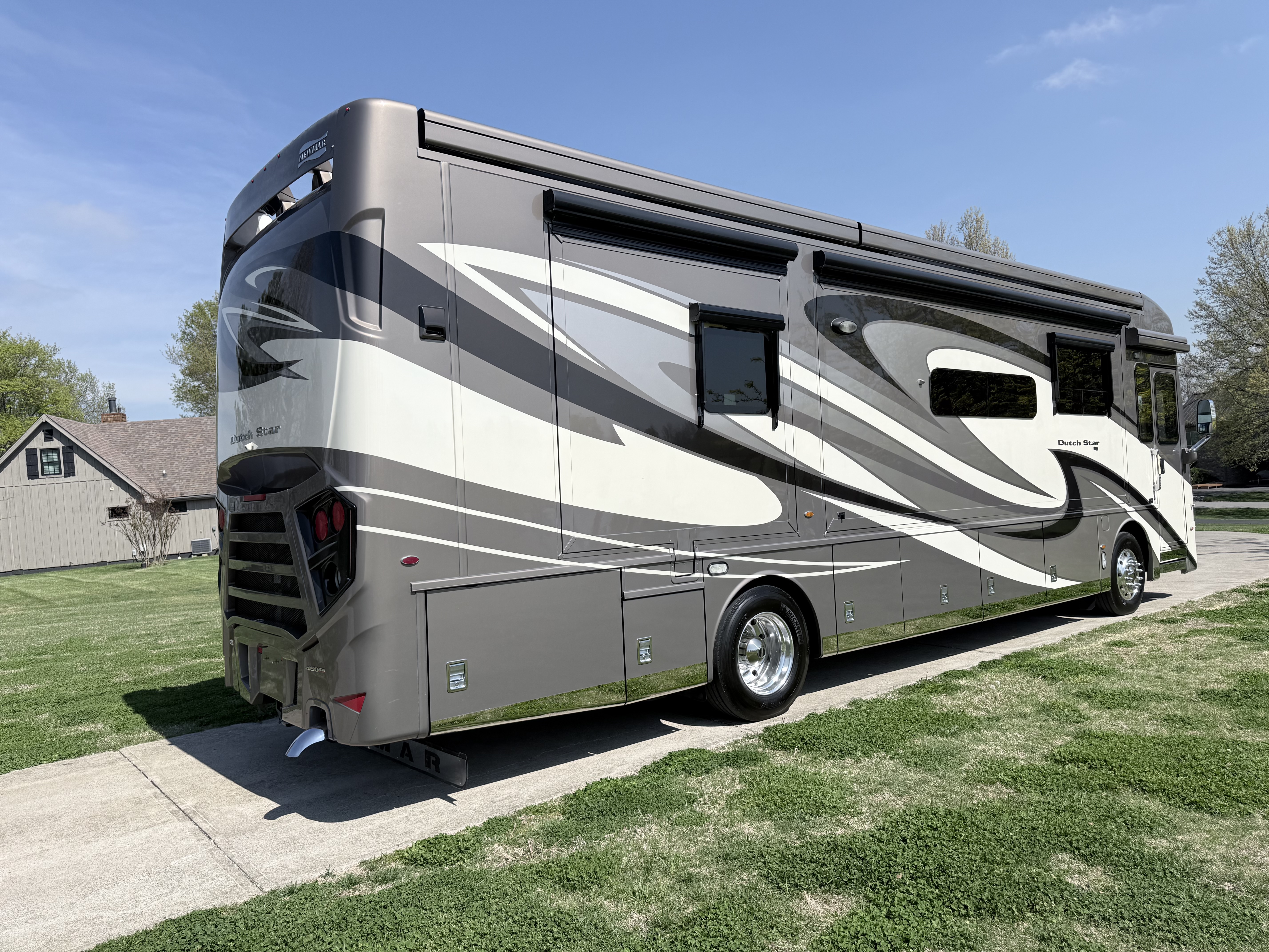 The 2020 Dutch Star offers all the luxurious appointments you expect from a coach in its class—plus some that may surprise you. Relax beneath the power side awning, and select the optional outdoor entertainment center as the perfect backdrop for tailgates or movie nights. A keyless entry system with a touchpad provides peace of mind, while a Cummins® Onan generator comes standard for reliable power.