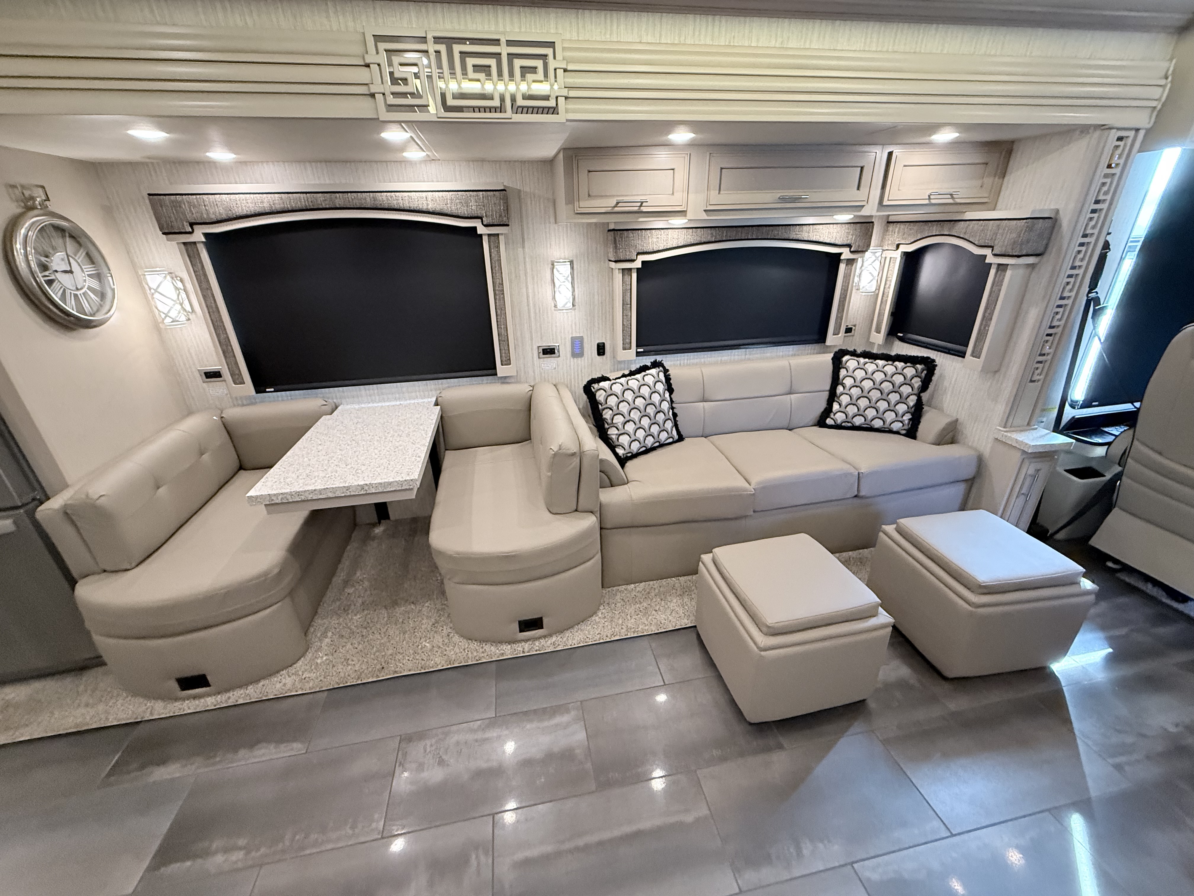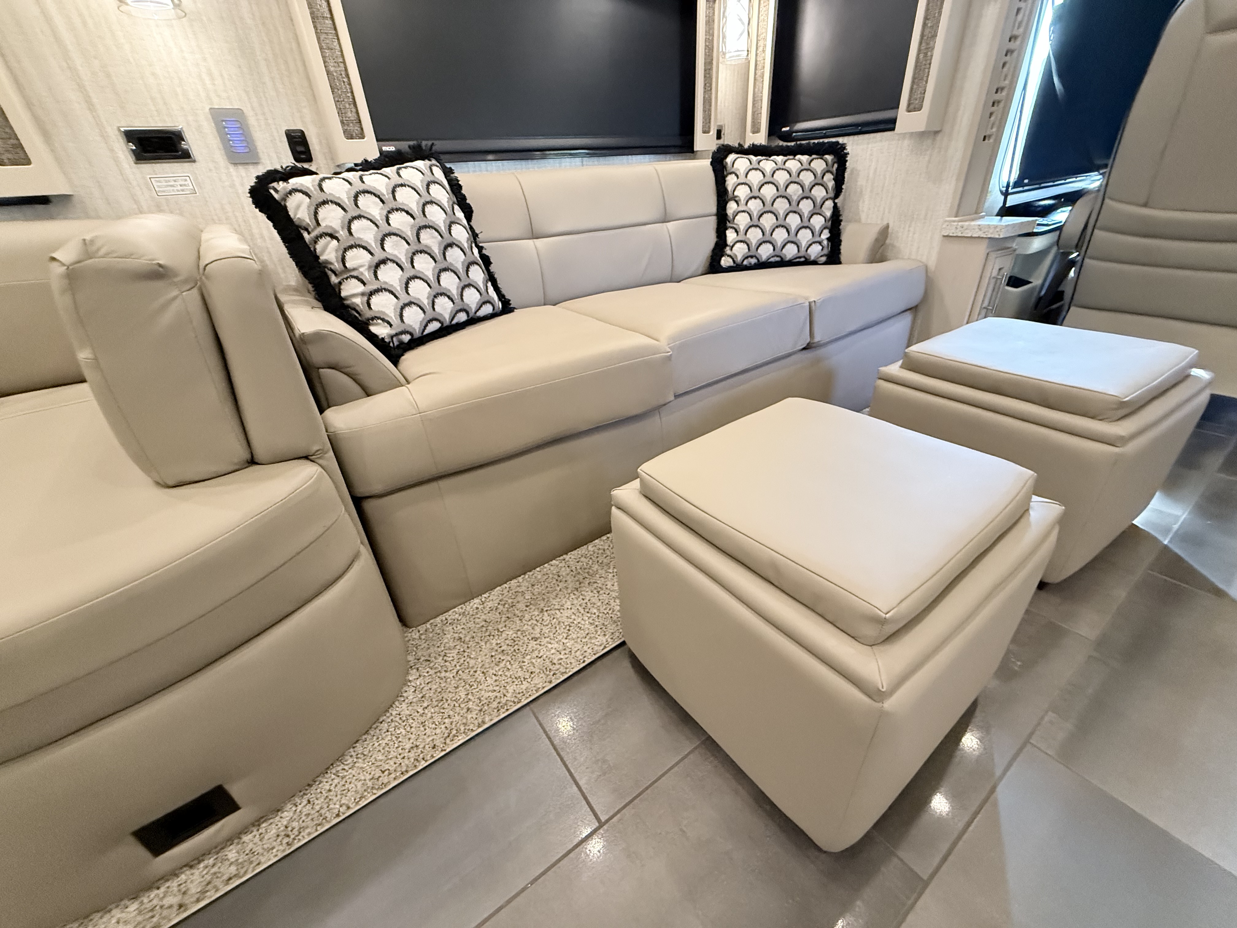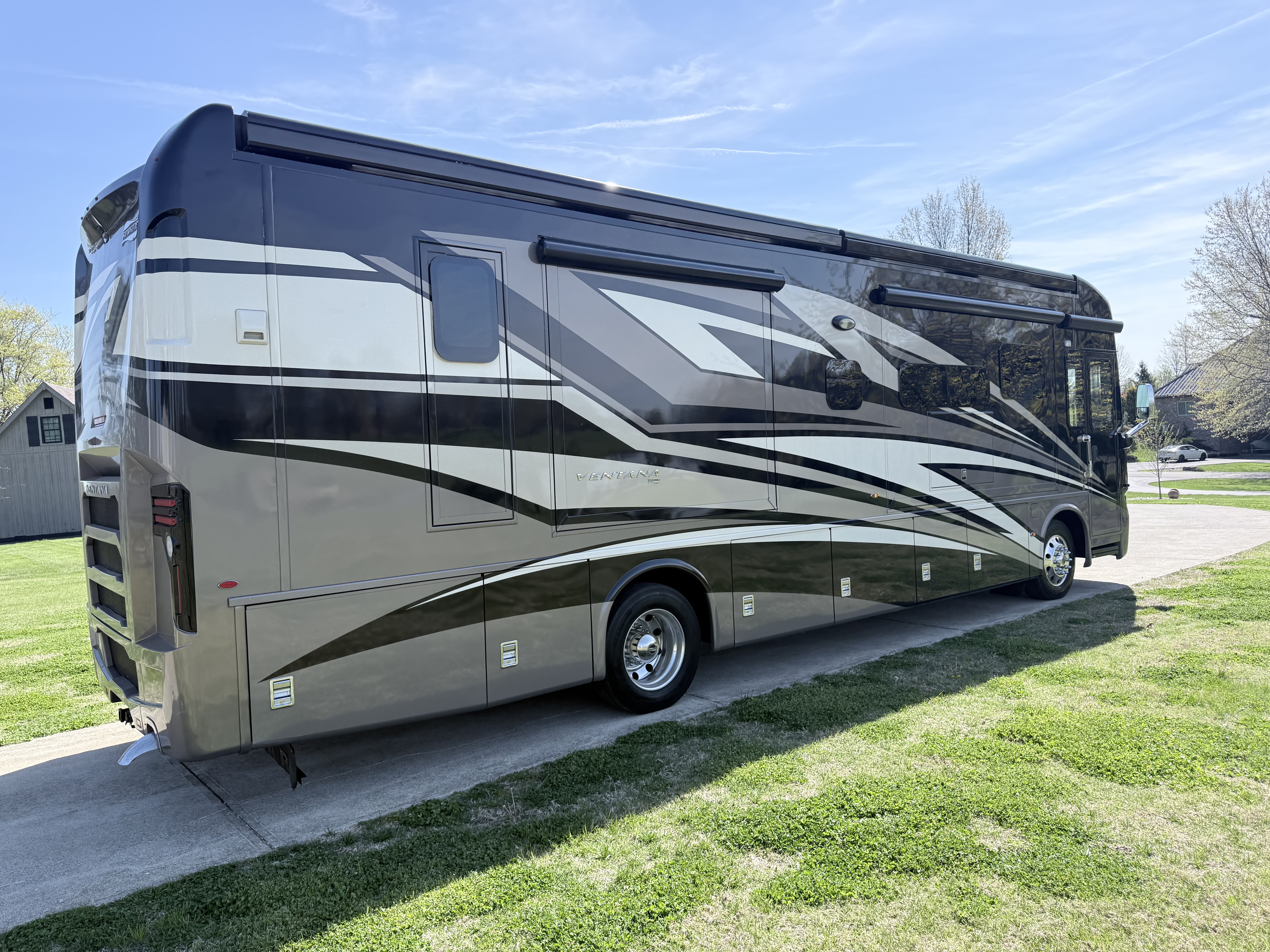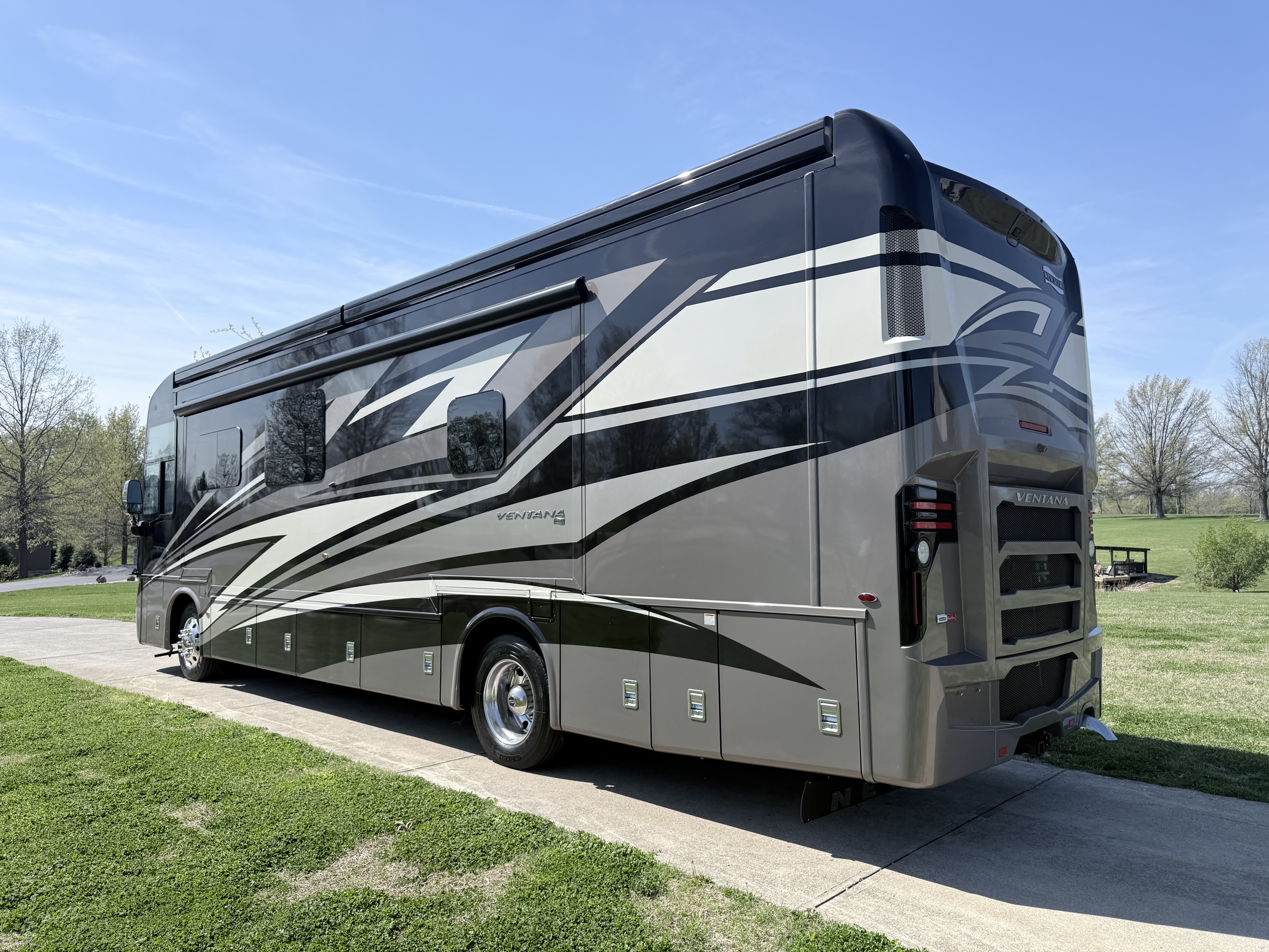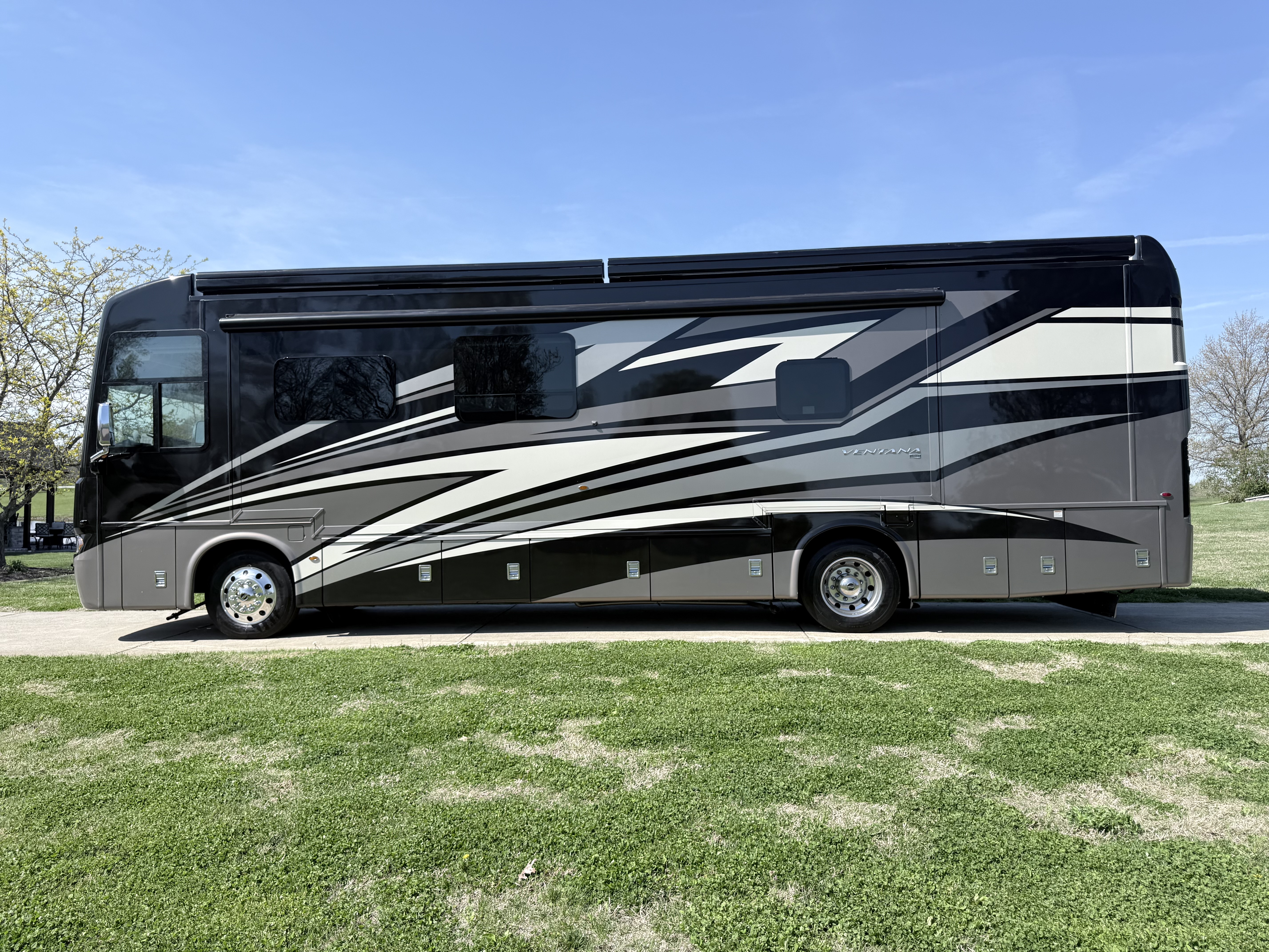 For 2020, Ventana is the subject of an extensive redesign that makes it more stunning than ever before. The integrated awnings and newly styled front and rear caps lend a new look and profile to the exterior. Relax outdoors with the standard Girard® power side and entrance door awnings, or upgrade to one of several additional awning packages. Power baggage door locks and a keyless entry door come standard, as does an 8.0-kW Cummins Onan® diesel generator.