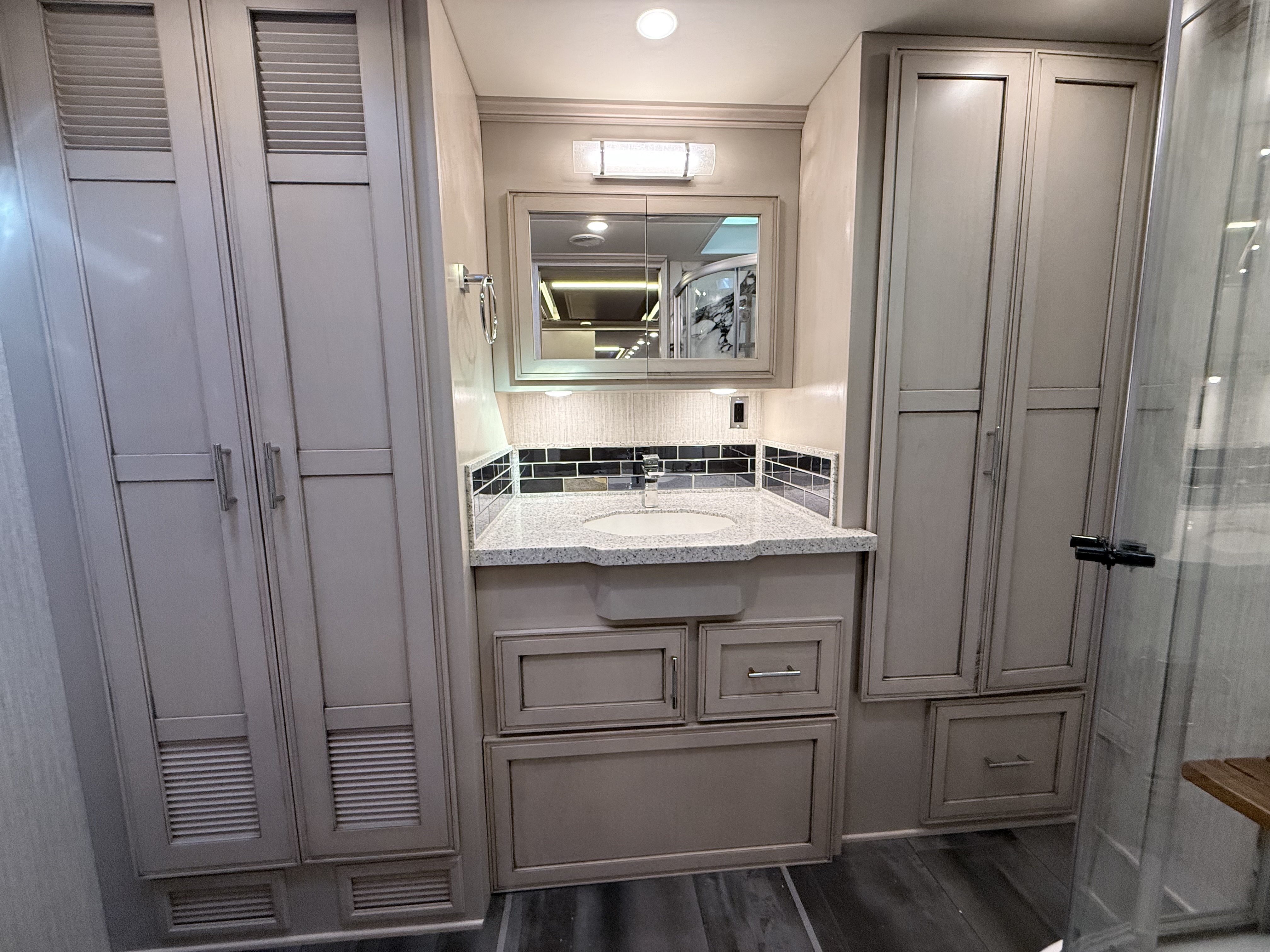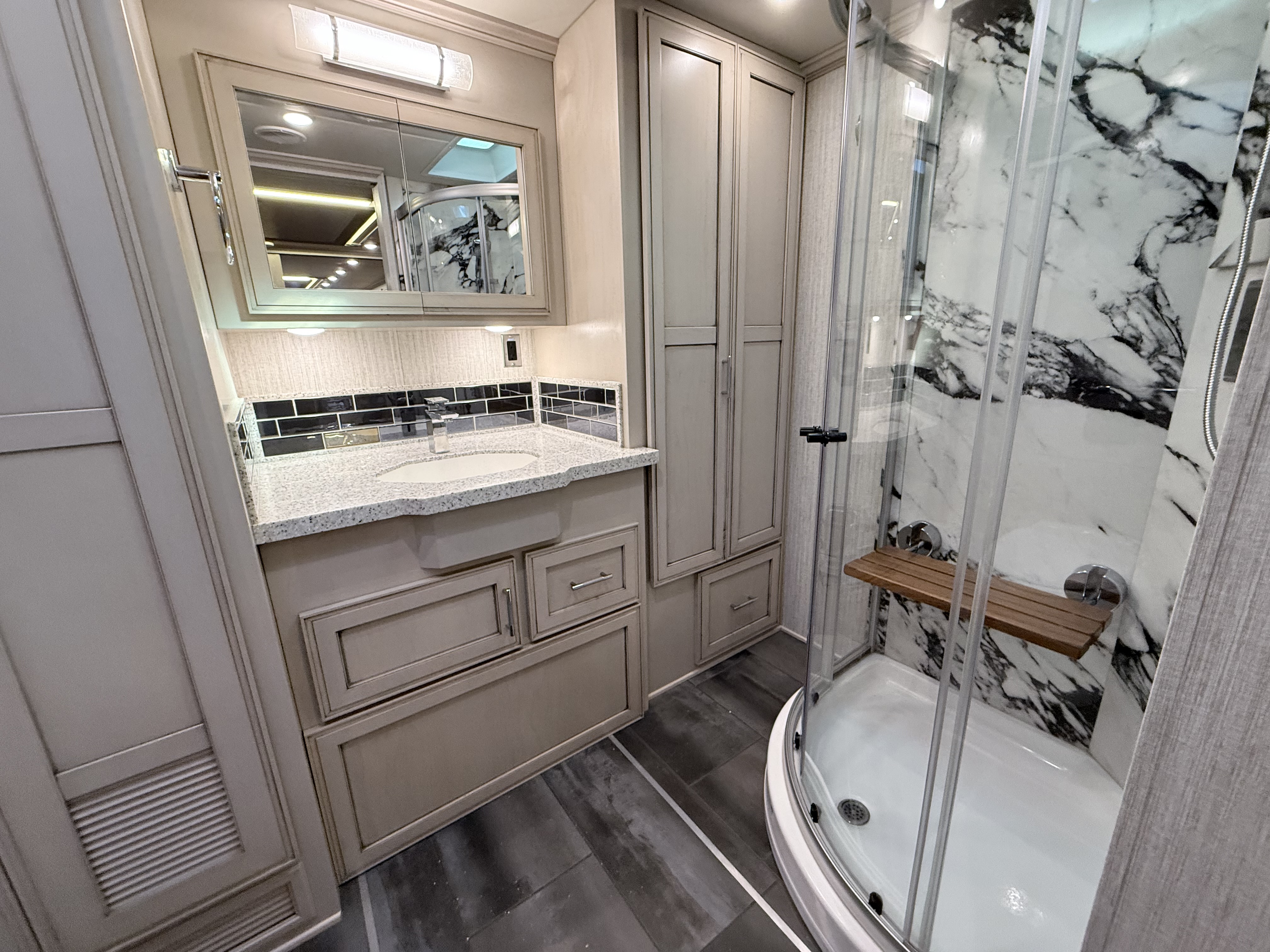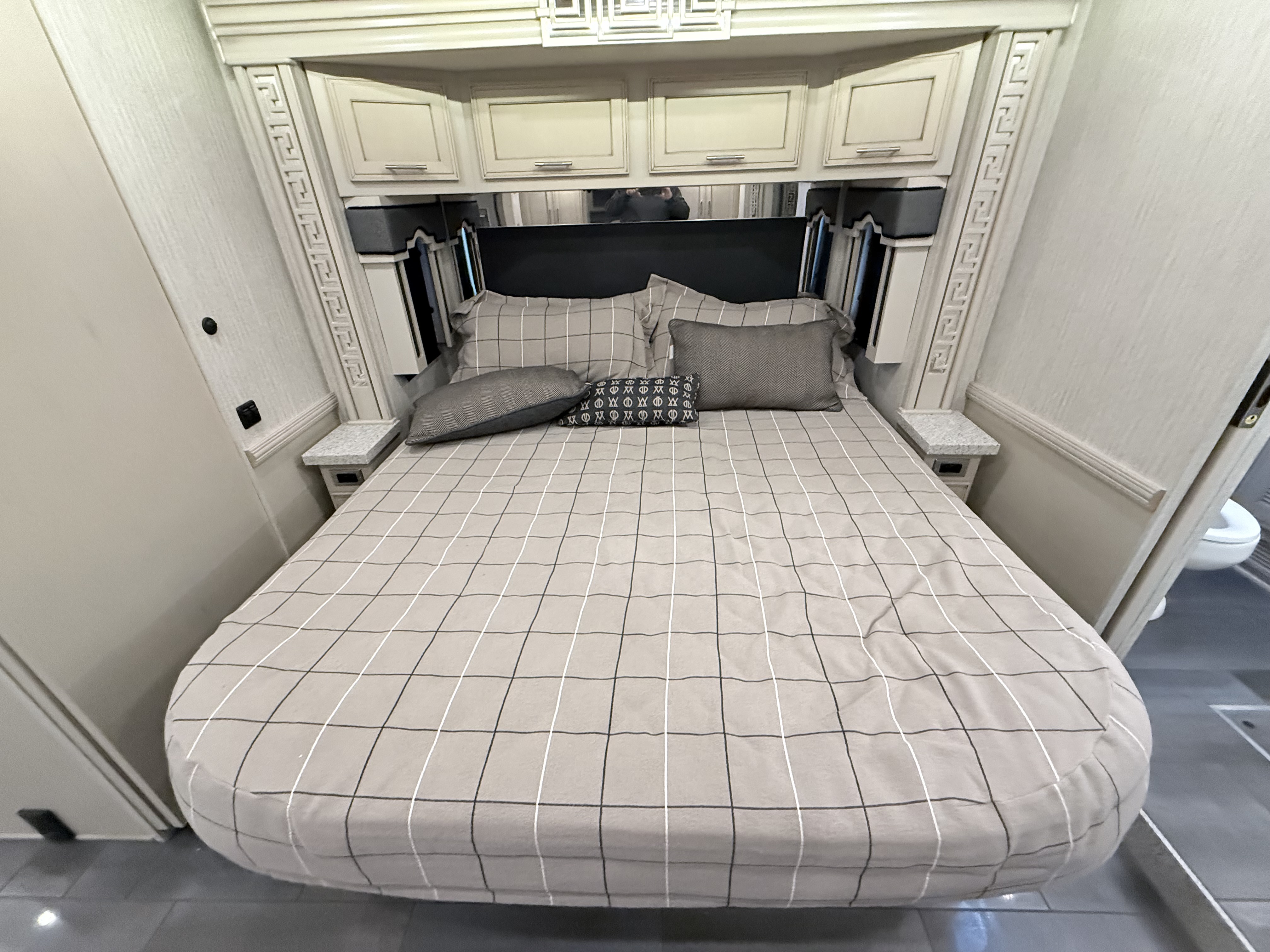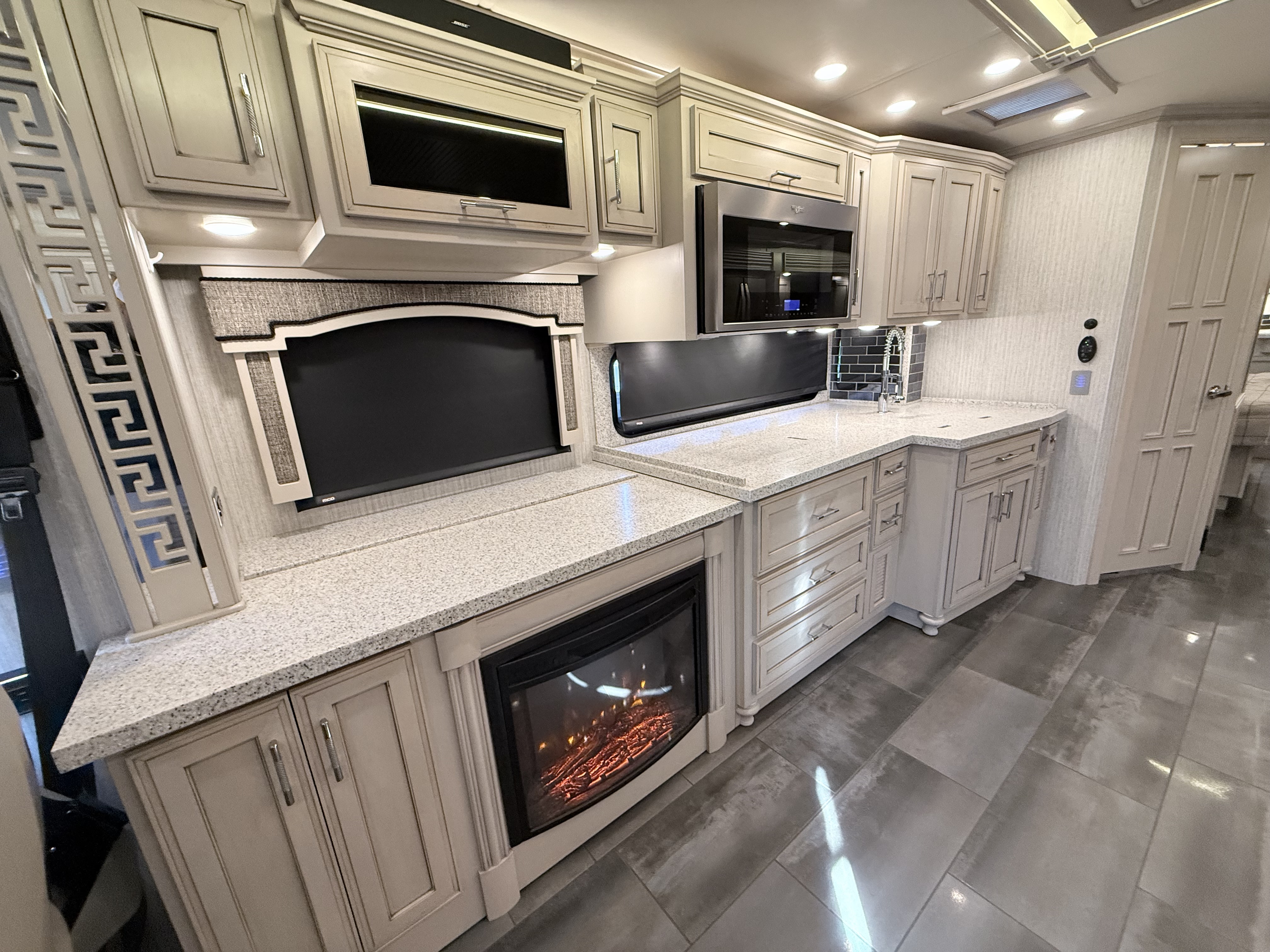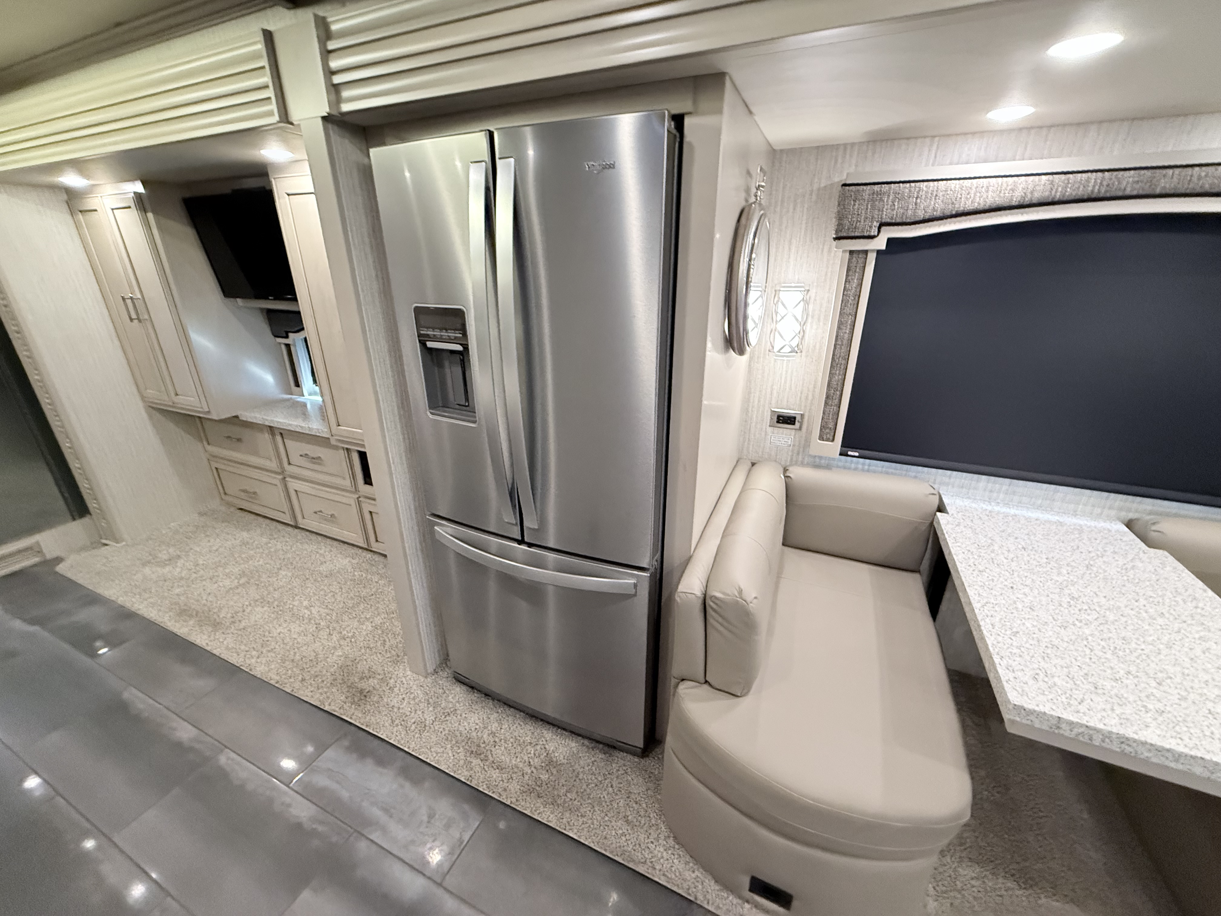 For 2020, Ventana is the subject of an extensive redesign that makes it more stunning than ever before. The integrated awnings and newly styled front and rear caps lend a new look and profile to the exterior. Relax outdoors with the standard Girard® power side and entrance door awnings, or upgrade to one of several additional awning packages. Power baggage door locks and a keyless entry door come standard, as does an 8.0-kW Cummins Onan® diesel generator.