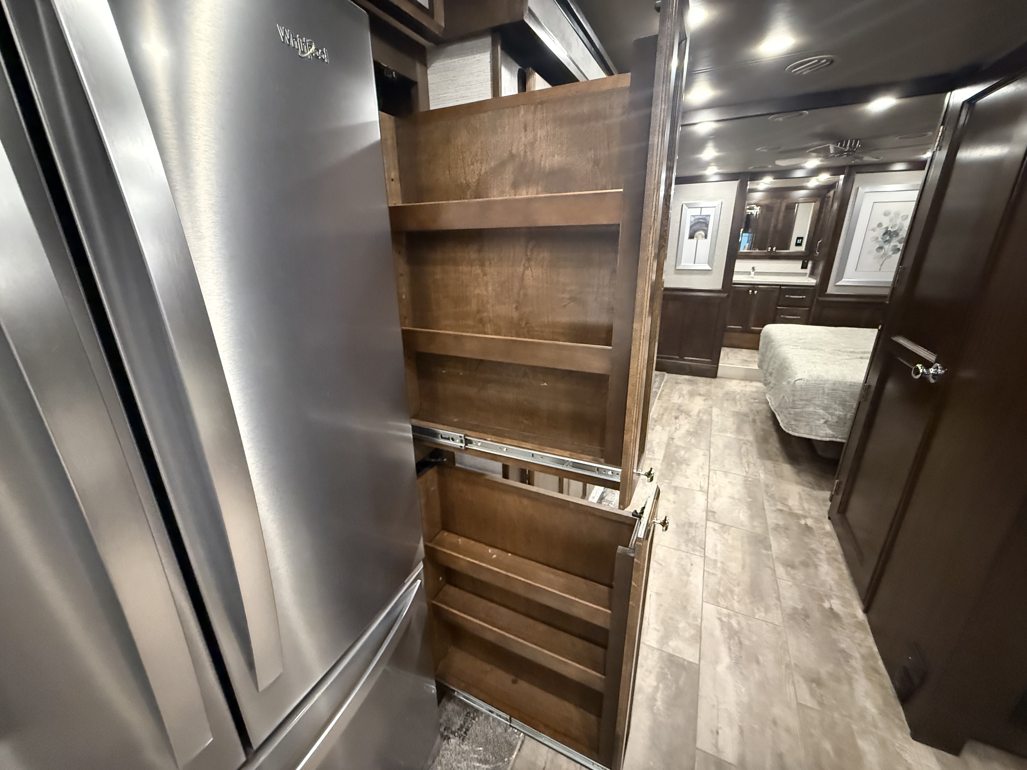 - From ingenious storage solutions to top-rated name brand appliances, the Allegro RED kitchen makes meal prep easy. A recessed cooktop, a convection microwave, a residential refrigerator option, and plentiful storage, including a pull-out pantry aids in the cooking process. A stunning panoramic galley window adds an elegant touch.