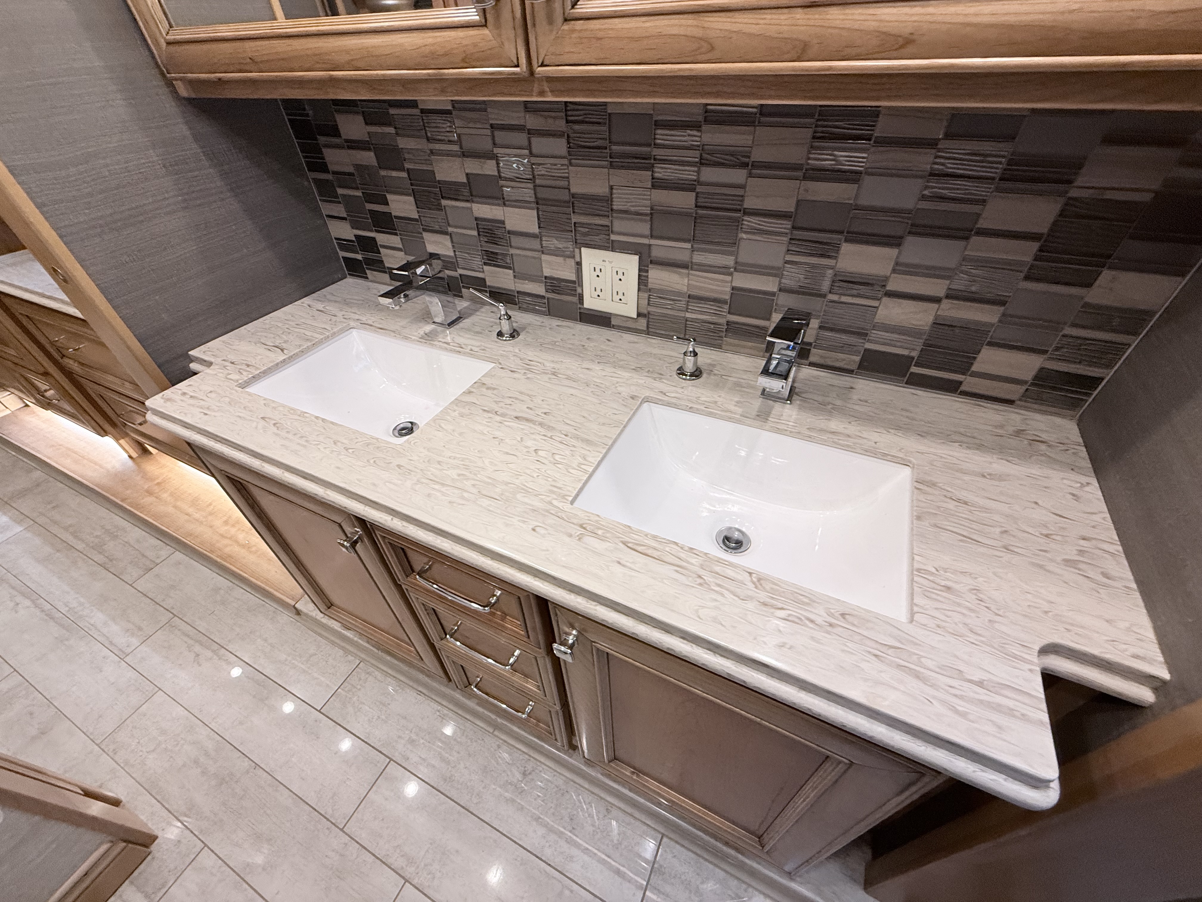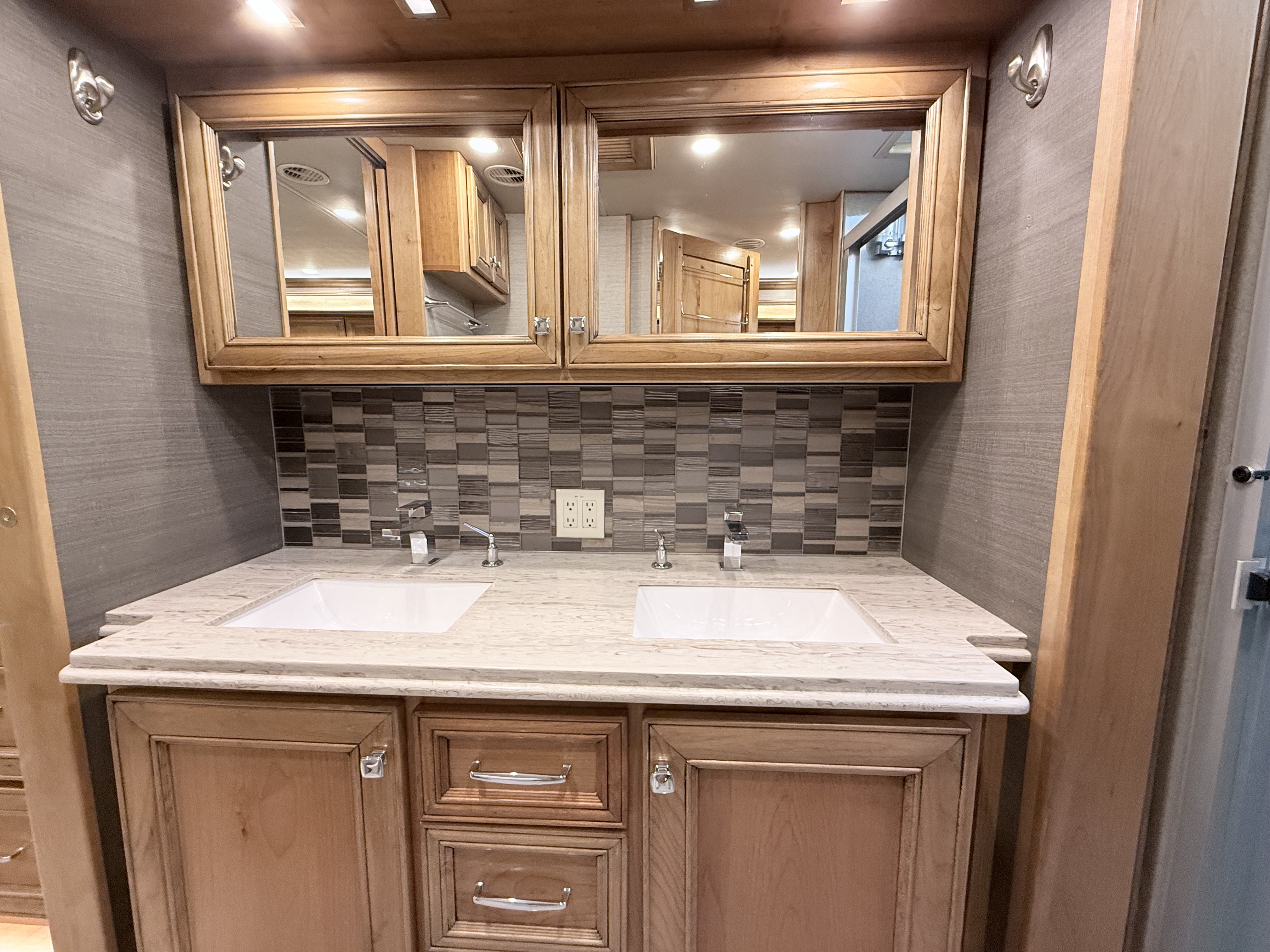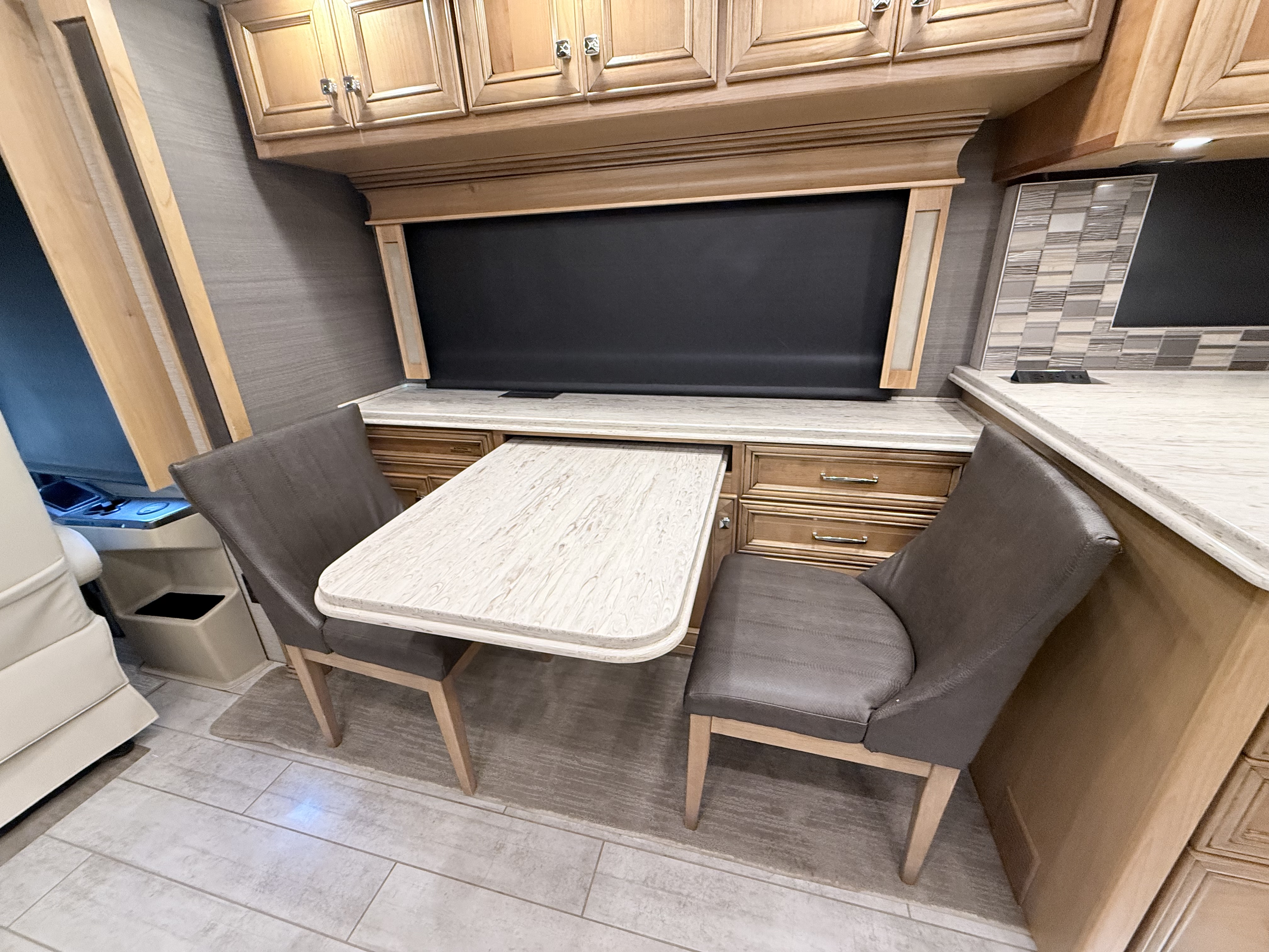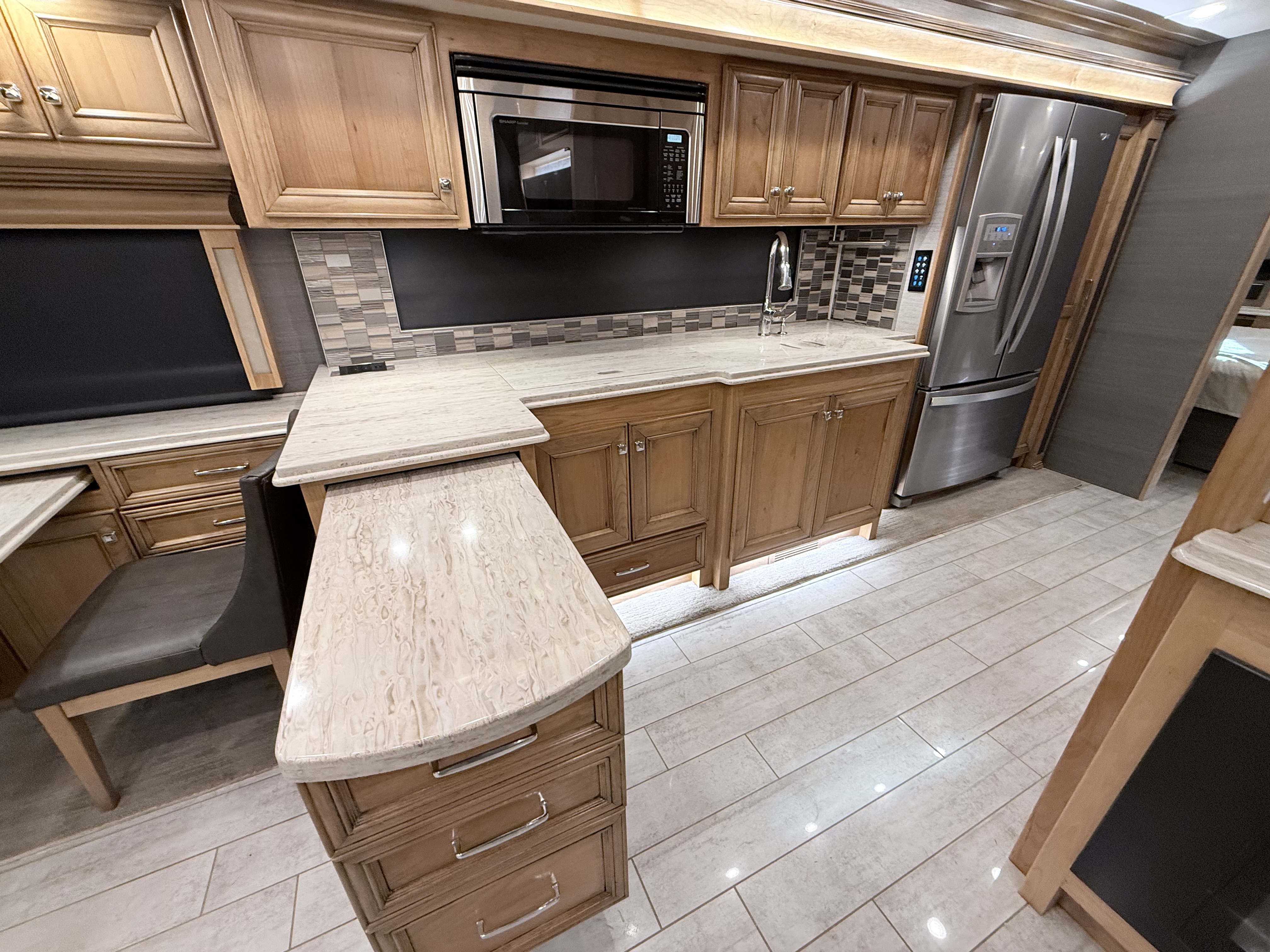 The 2020 Phaeton 40 AH is a masterpiece of diesel engineering, riding on Tiffin’s proprietary PowerGlide chassis with Independent Front Suspension to deliver a driving experience that is incredibly precise and whisper-quiet. We recommend this specific floor plan because it utilizes a smart bath-and-a-half layout, giving you a private master sanctuary in the rear while offering superior convenience for your guests in the main salon. The interior feels like a luxury estate, paved with heated porcelain tile floors and surrounded by handcrafted solid wood cabinetry, all kept perfectly comfortable by the Aqua-Hot hydronic heating system that provides unlimited hot water and silent warmth.
