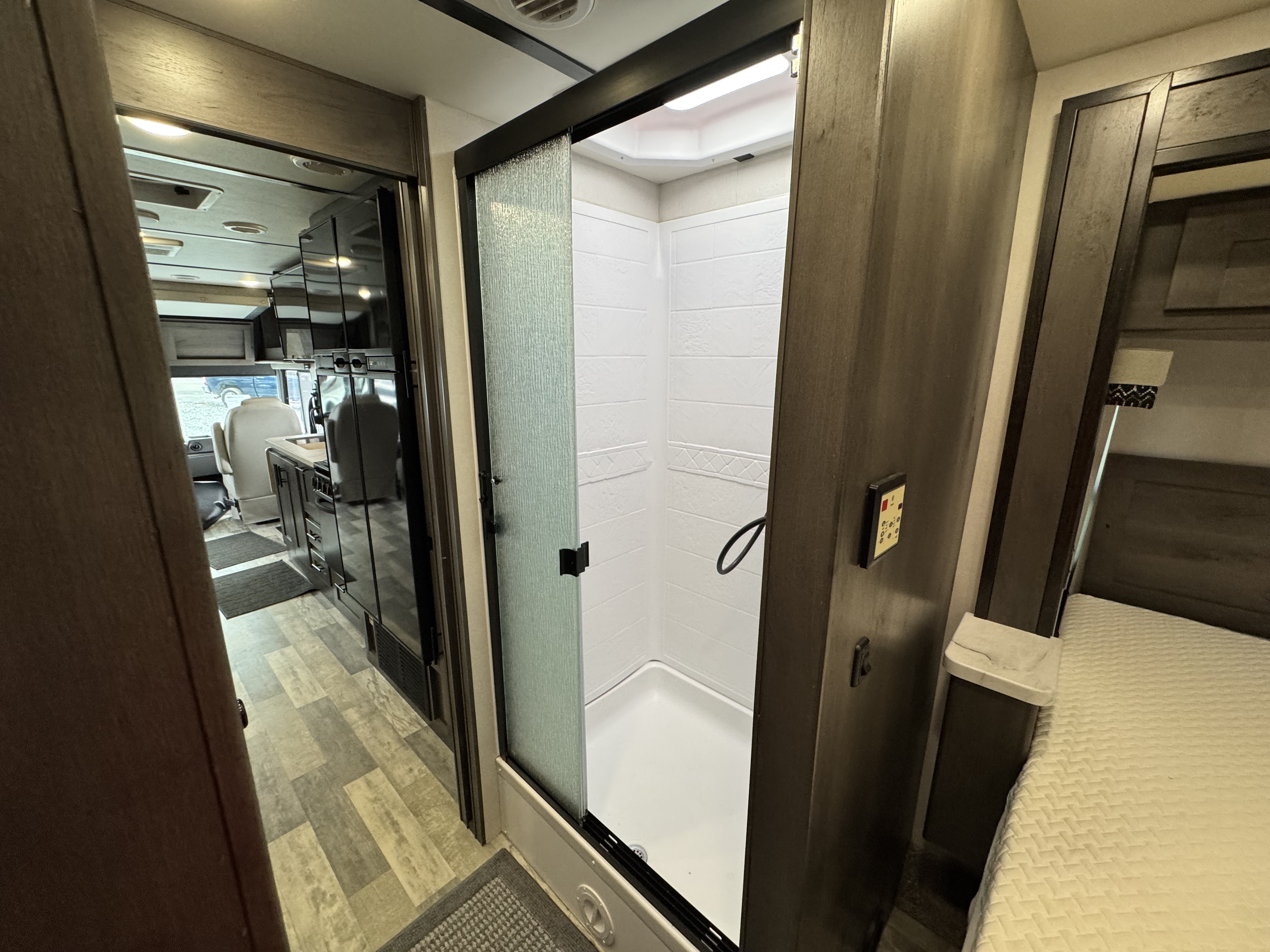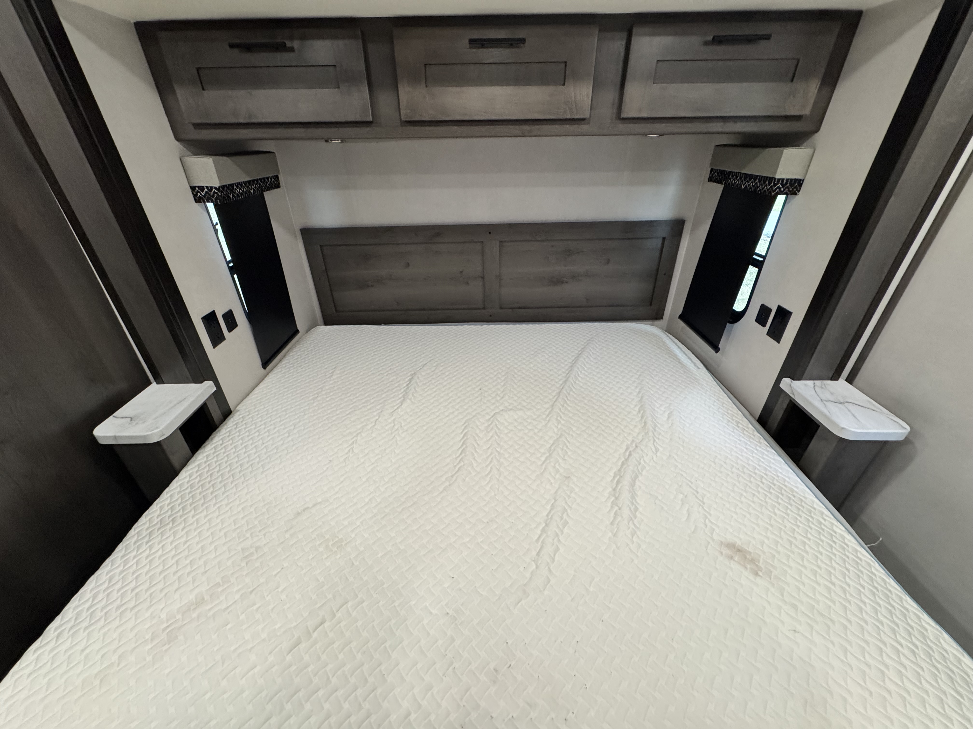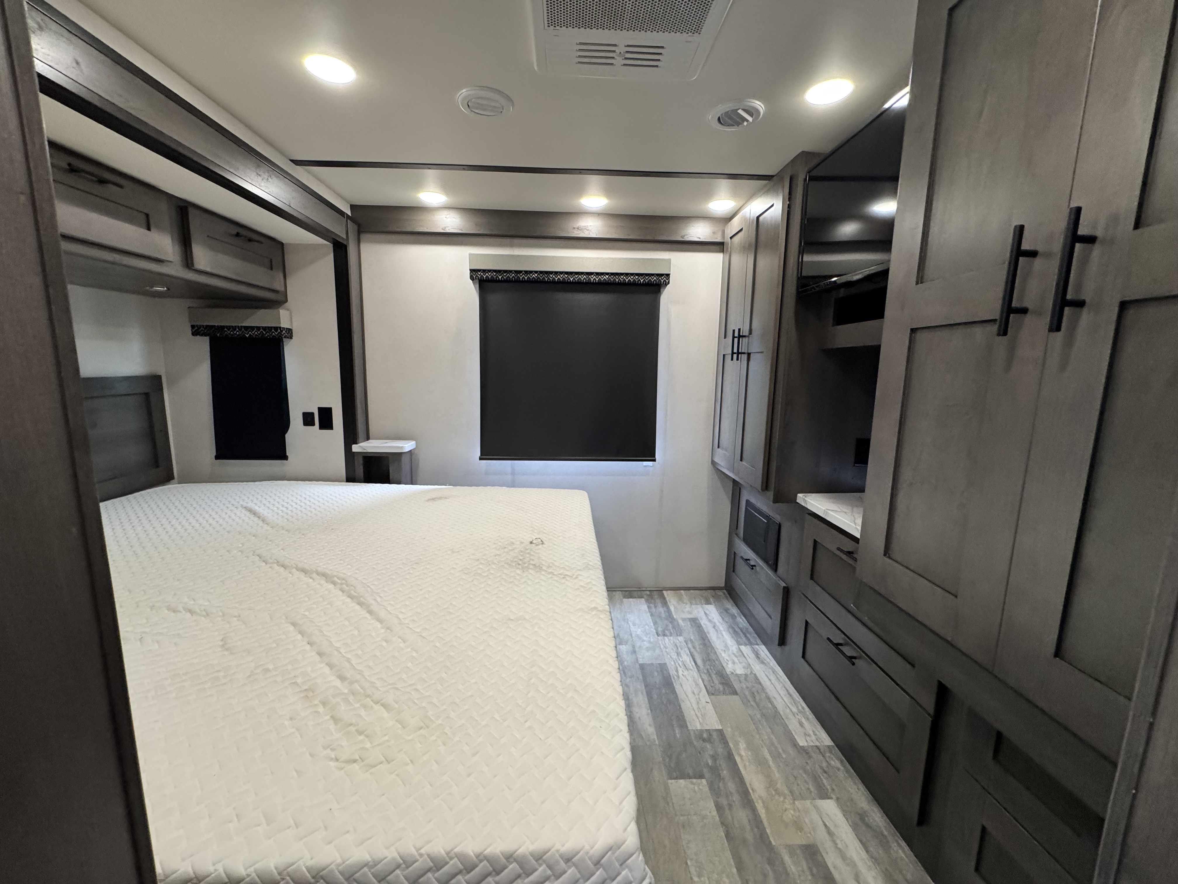 The 2021 Forest River FR3 30DS is a standout "Crossover" Class A, blending the spacious interior of a bus with the family-friendly drivability of a Class C. Riding on the robust Ford F-53 chassis with the powerful 7.3L V8 engine, this coach delivers confident highway performance, while the Super C-style front grill allows for better airflow and easier engine access. Inside, the design prioritizes livability with a power overhead bunk that creates instant sleeping space and a King Bed in the master suite, all surrounded by flush-floor slide-outs that make the cabin feel wide and residential.
