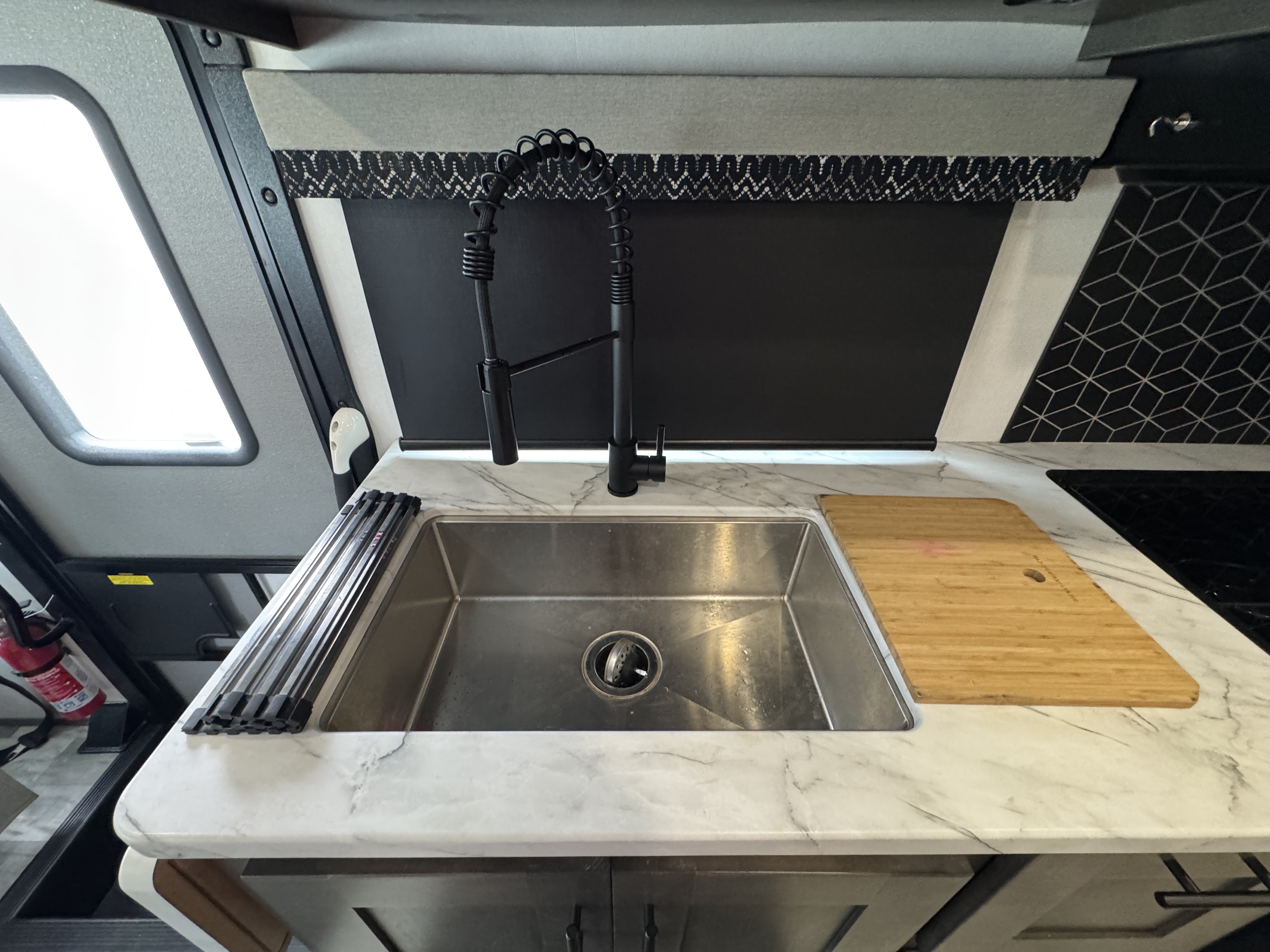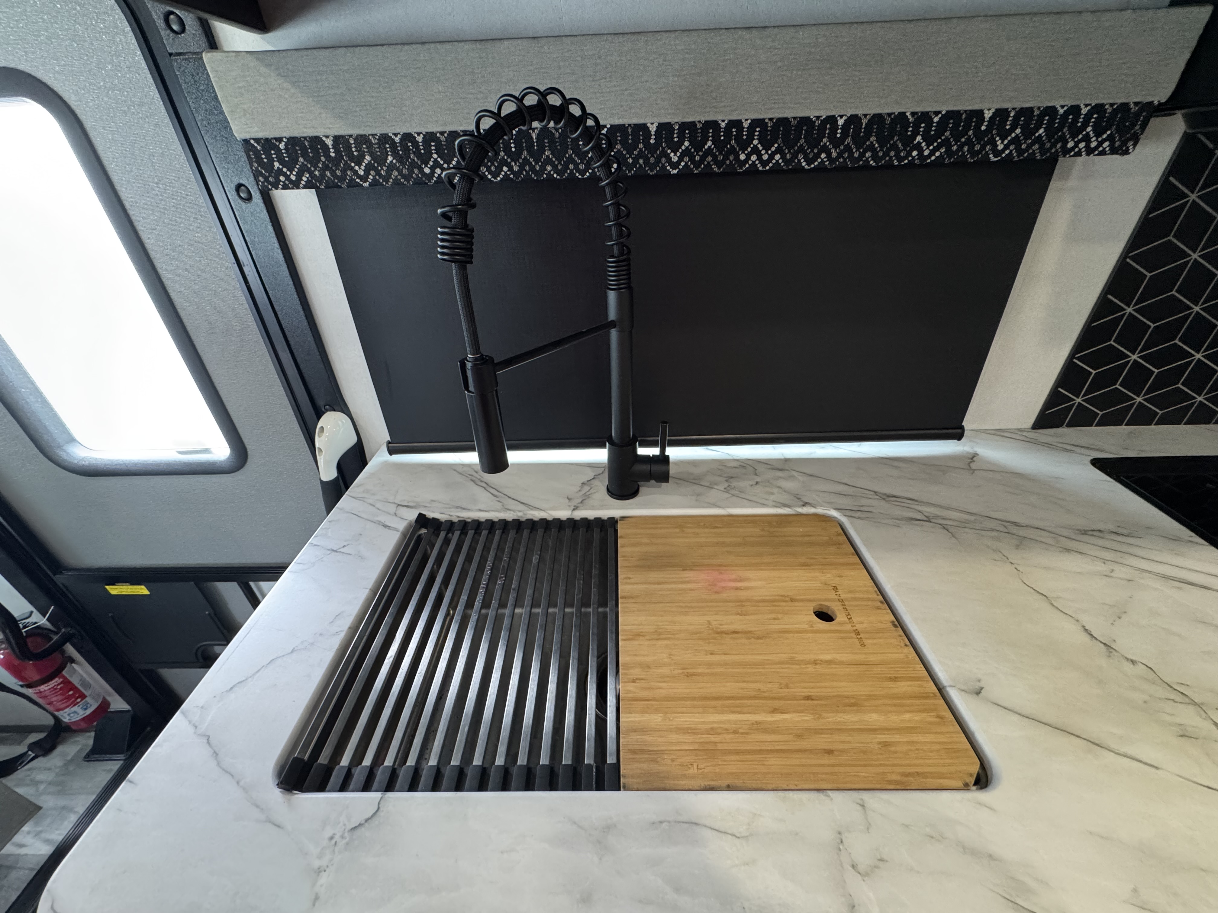 - Stainless Steel Kitchen Sink w/Bamboo Cutting Board & Roll Up Dryer