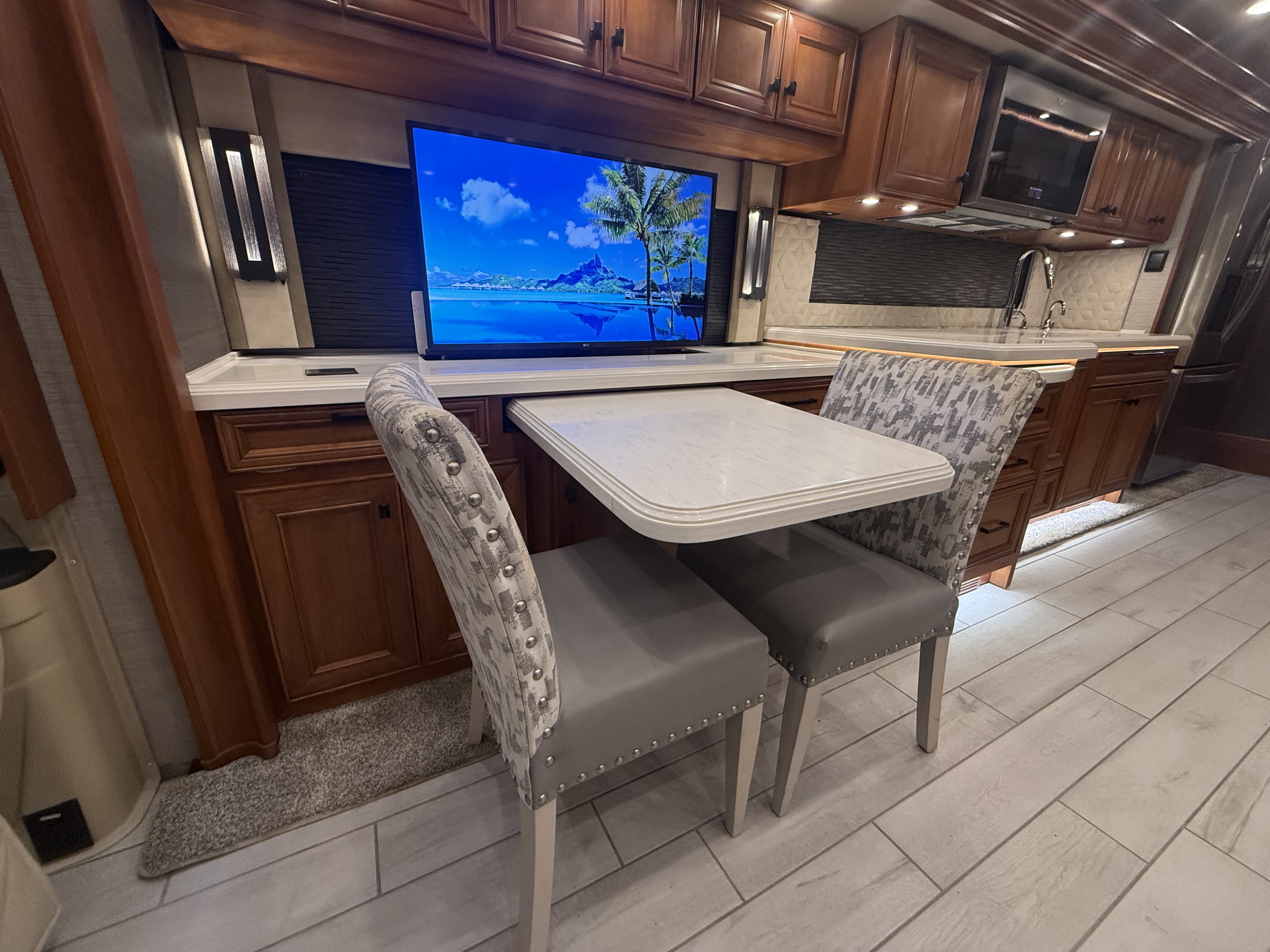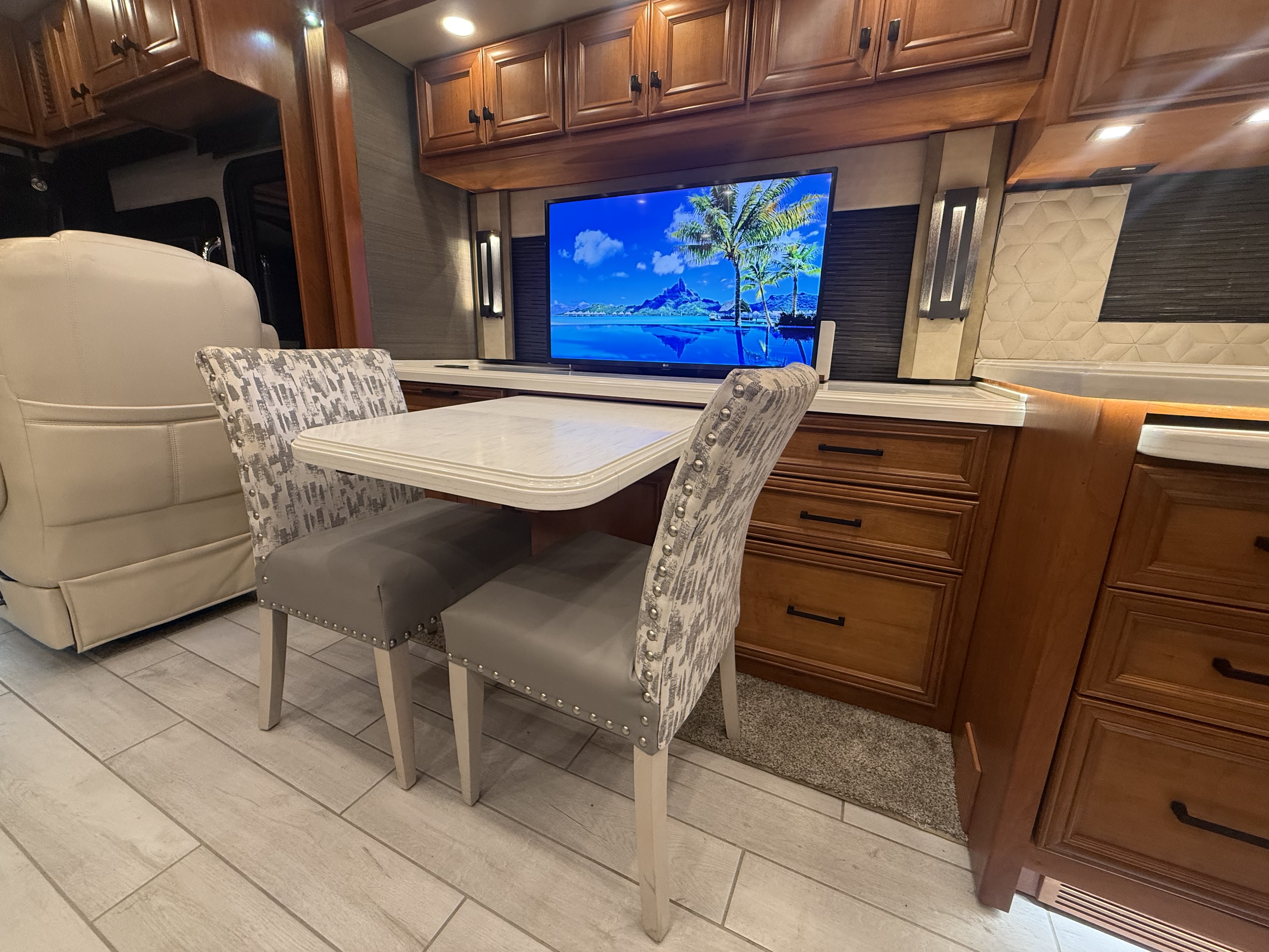 The 2022 Allegro Bus 37 AP is a rare engineering marvel, delivering the exhilarating performance of a massive 450 HP Cummins engine in a surprisingly agile 39-foot footprint. This "sports car" of the diesel pusher world rides on Tiffin’s exclusive PowerGlide chassis with Independent Front Suspension, giving you a turning radius and handling precision that makes navigating tight corners or exclusive parks effortless. The interior refuses to compromise on the flagship experience, featuring a completely flat floor paved with heated porcelain tile, a residential refrigerator, and the whisper-quiet warmth of the Aqua-Hot hydronic heating system.