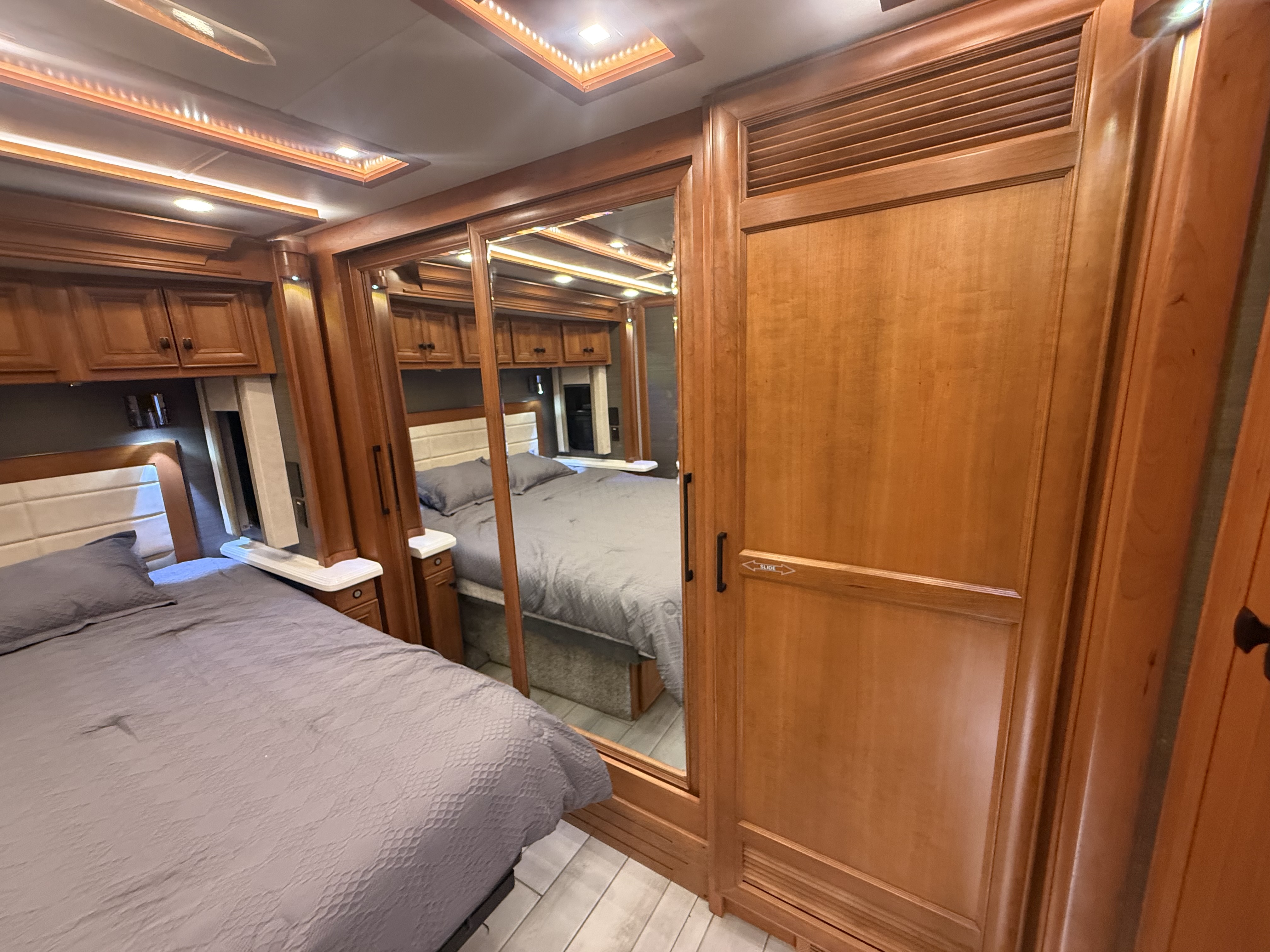 Wherever you’re headed, the Allegro Bus gets you there in luxurious style. With its driver-oriented cockpit, this elegant coach delivers a quiet, controlled ride, and when you arrive the Bus truly shines. Abundant living space is home to four HDTVs, an exceptional sound system, an integrated Spyder Multiplex System, and handcrafted cabinetry throughout. Chefs will relish the kitchen with its expansive counter space and high-end appliances. The coach’s proprietary PowerGlide Chassis increases ample cargo storage space along with offering exceptional towing capacity. So set the GPS to luxury, and let your journey begin.