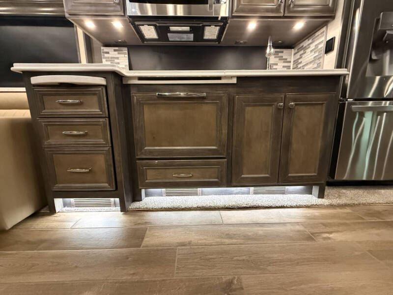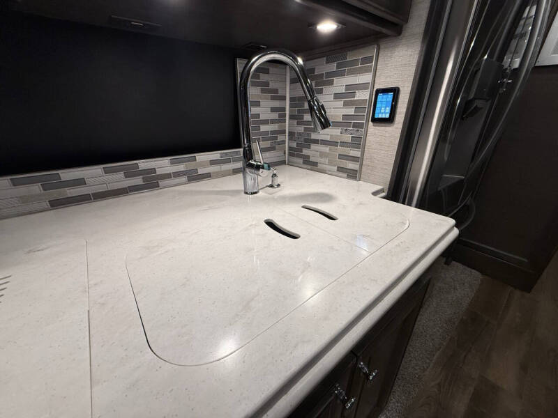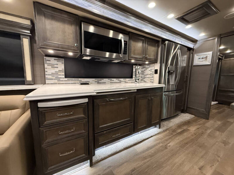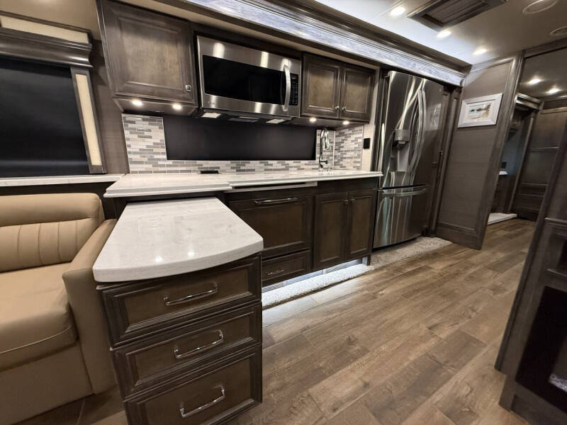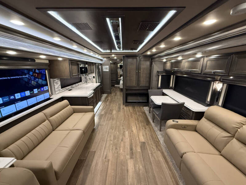 This 2022 Phaeton 36 SH is a rare gem that offers the prestige of Tiffin’s best-selling diesel line in a highly maneuverable 37-foot footprint. It allows you to navigate tighter state parks with ease while still enjoying the 380 HP Cummins engine and the cloud-like comfort of Air Ride suspension. The interior is pure Phaeton luxury, featuring polished porcelain tile floors, a residential refrigerator, and a smart split-bath layout that maximizes space and functionality for couples on the go.