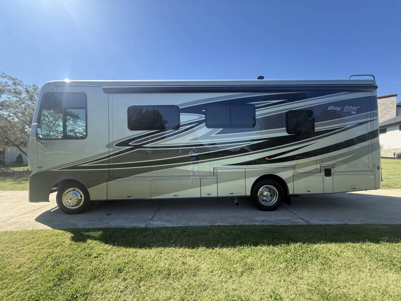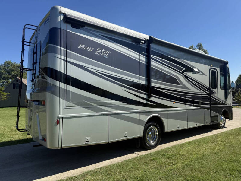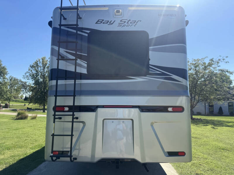 The 2023 Bay Star Sport is available in five floor plans. Three floor plans are new for 2023. Floor plan 2720 and 3225 include a full wall slide and more room in the bedroom. Floor plan 2920 includes a pantry and a larger enclosed bath area and king bed.