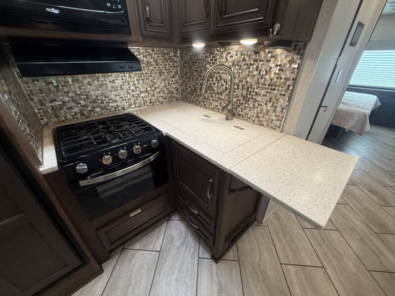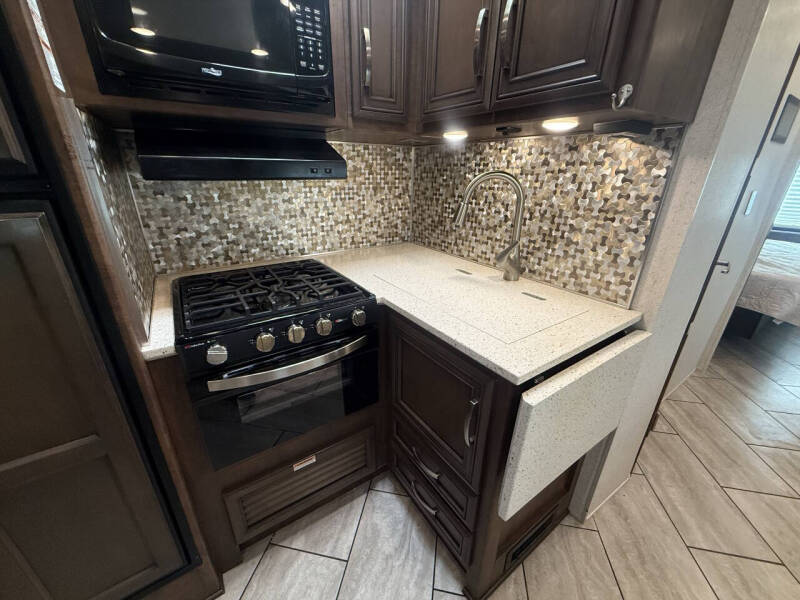 The affordable Bay Star Sport may appear to be an entry-level coach, but it comes with dozens of features and options that make this coach desirable for any adventure. From the Axxera Dash Radio with Apple CarPlay to a drop-down bunk over the cab to glazed maple cabinets in the kitchen, it’s ready whether you’re moving up to your first Class or downsizing.