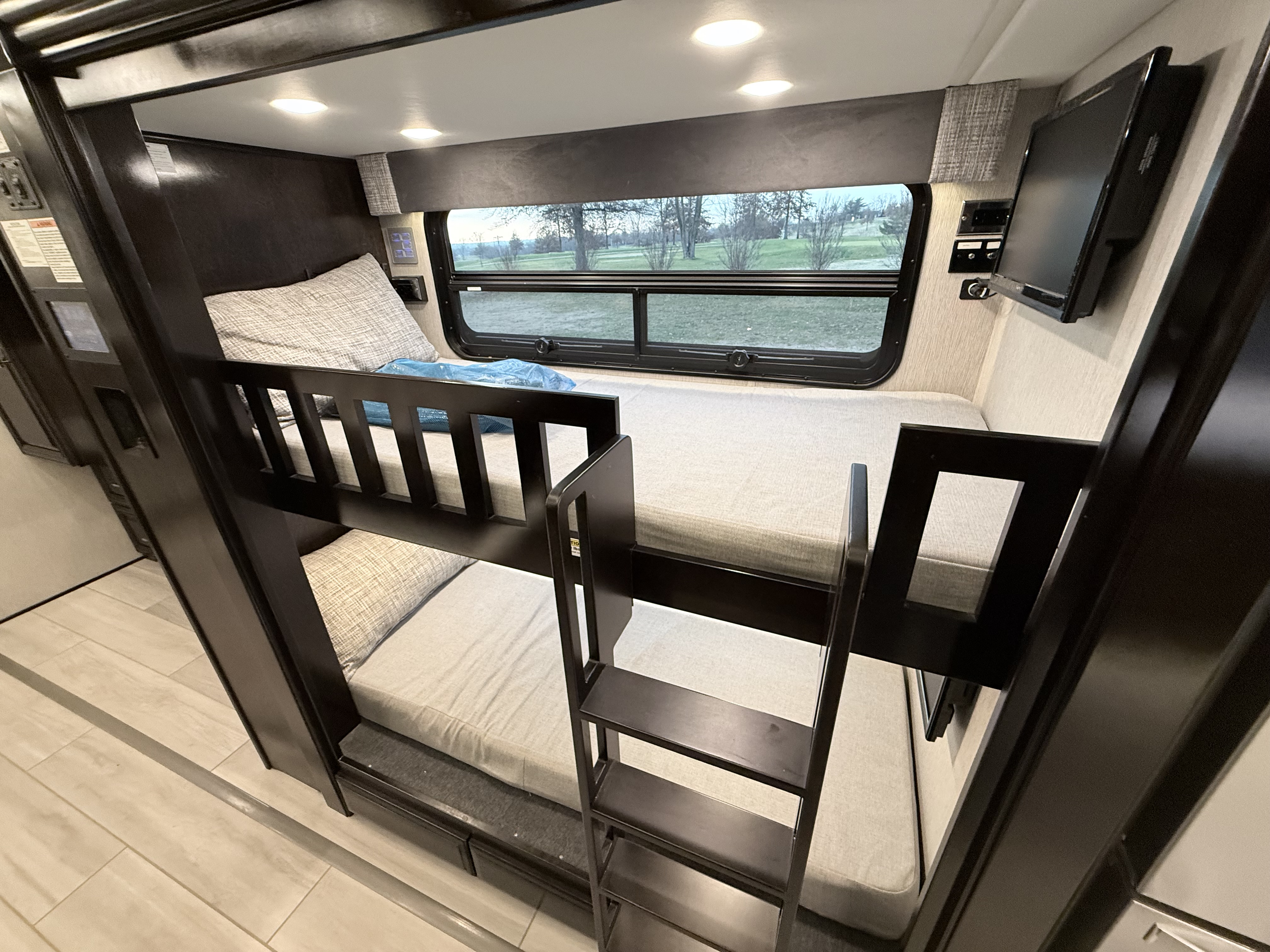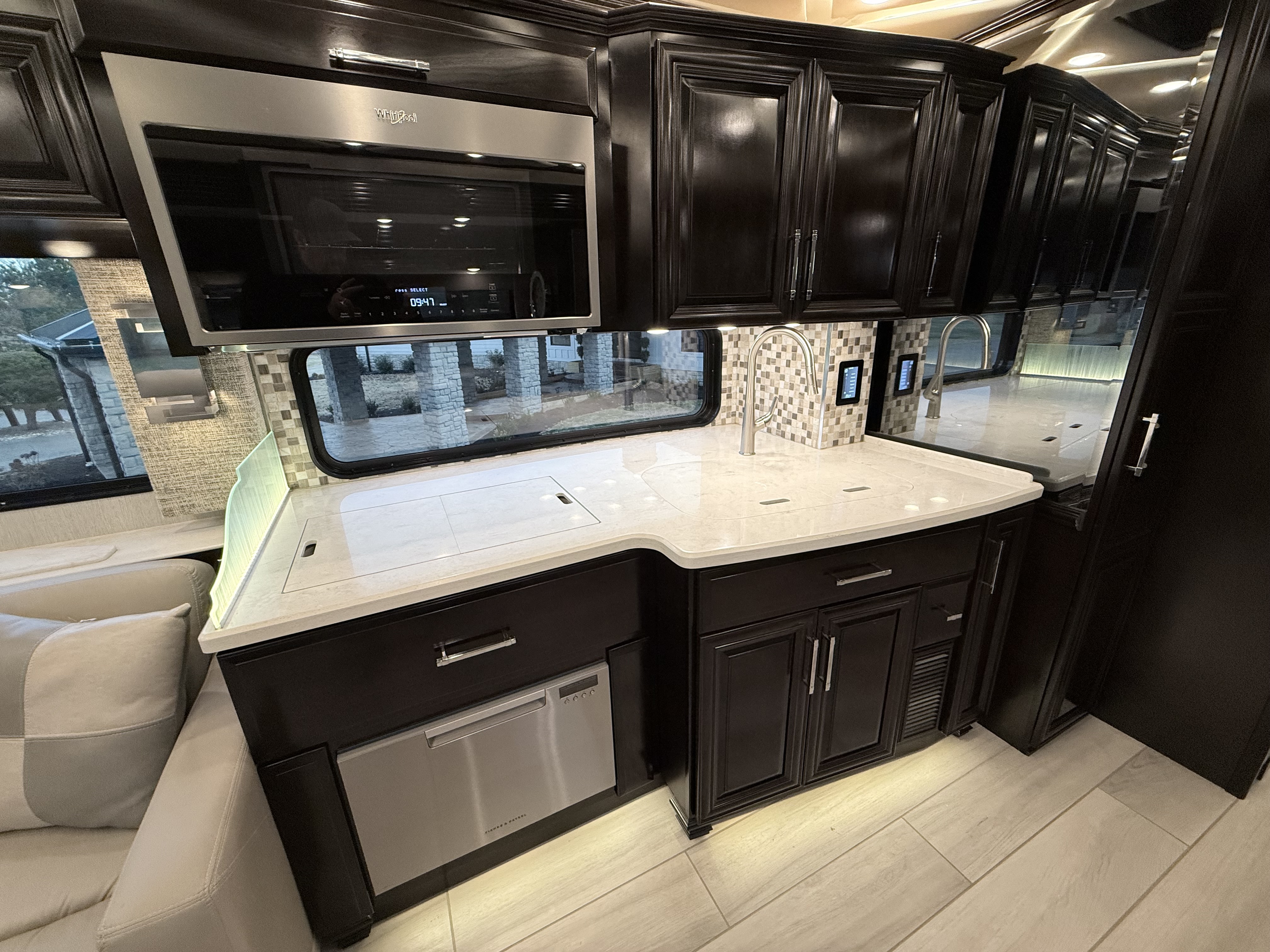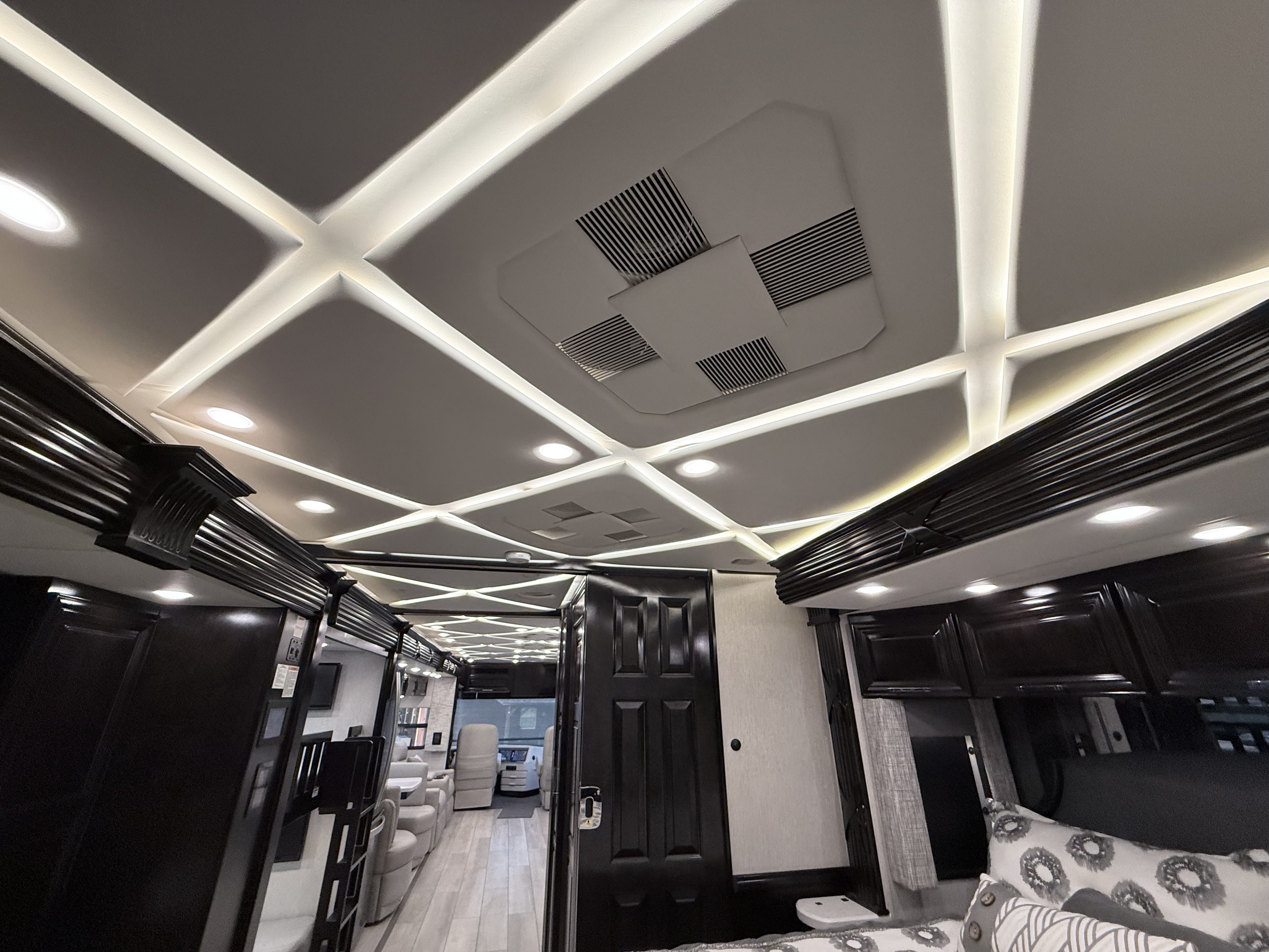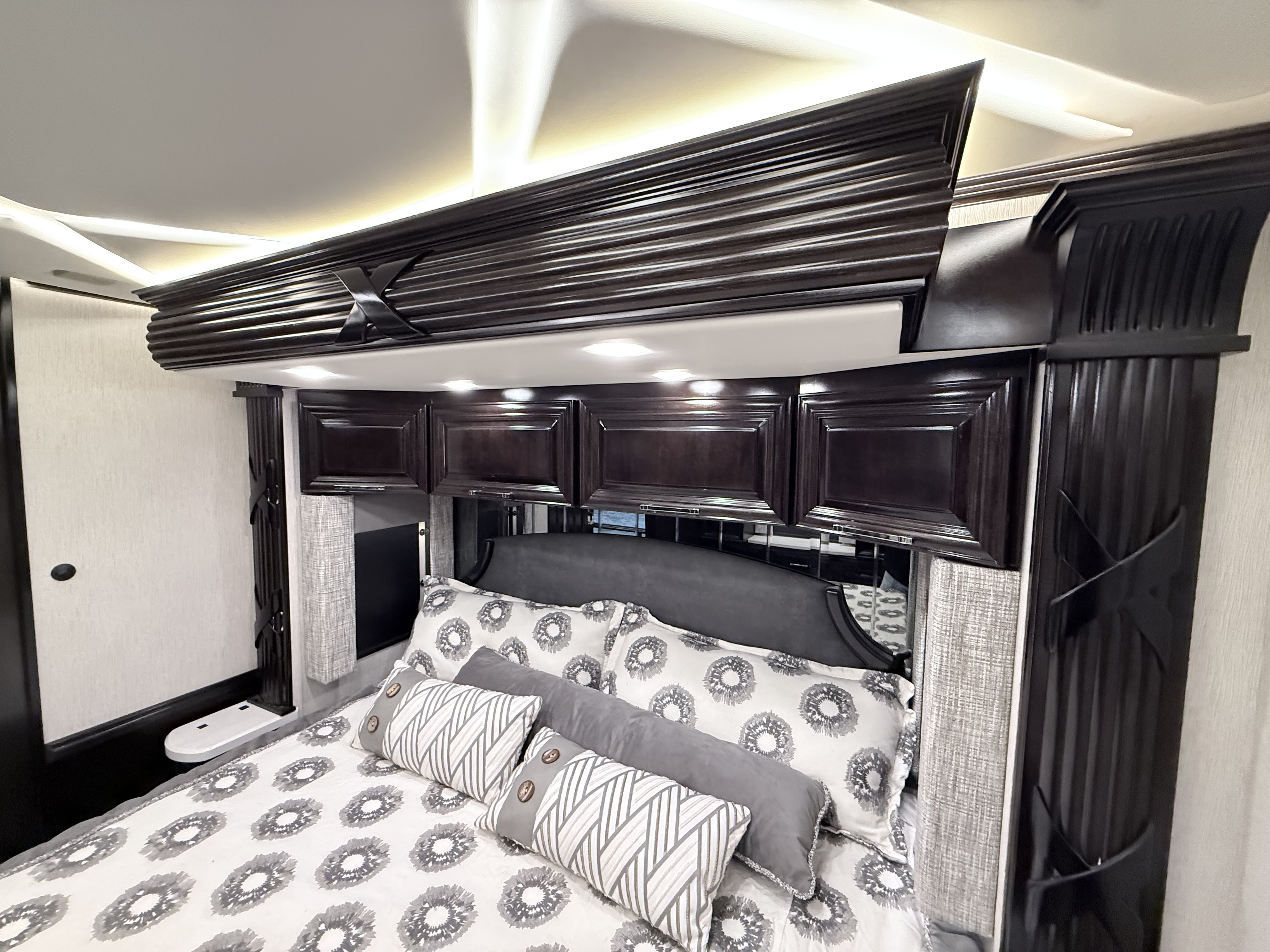 The 2023 Mountain Aire has a collection of new additions and features for exceptional comfort. This year, Apple Car Play comes standard on the 10” dual-monitor Xite Dash radio, allowing you to control certain functions throughout the coach. See the full list of features below.