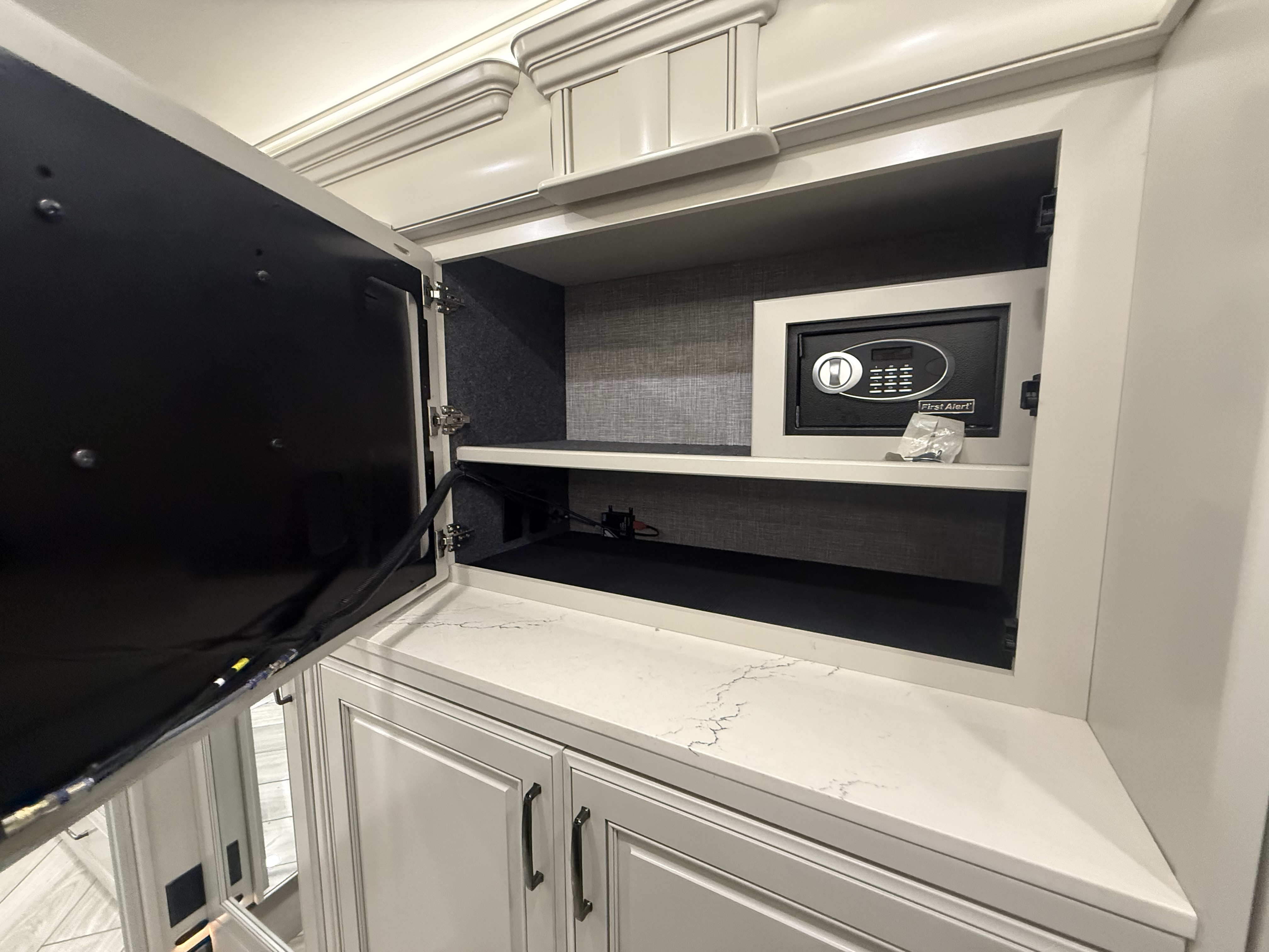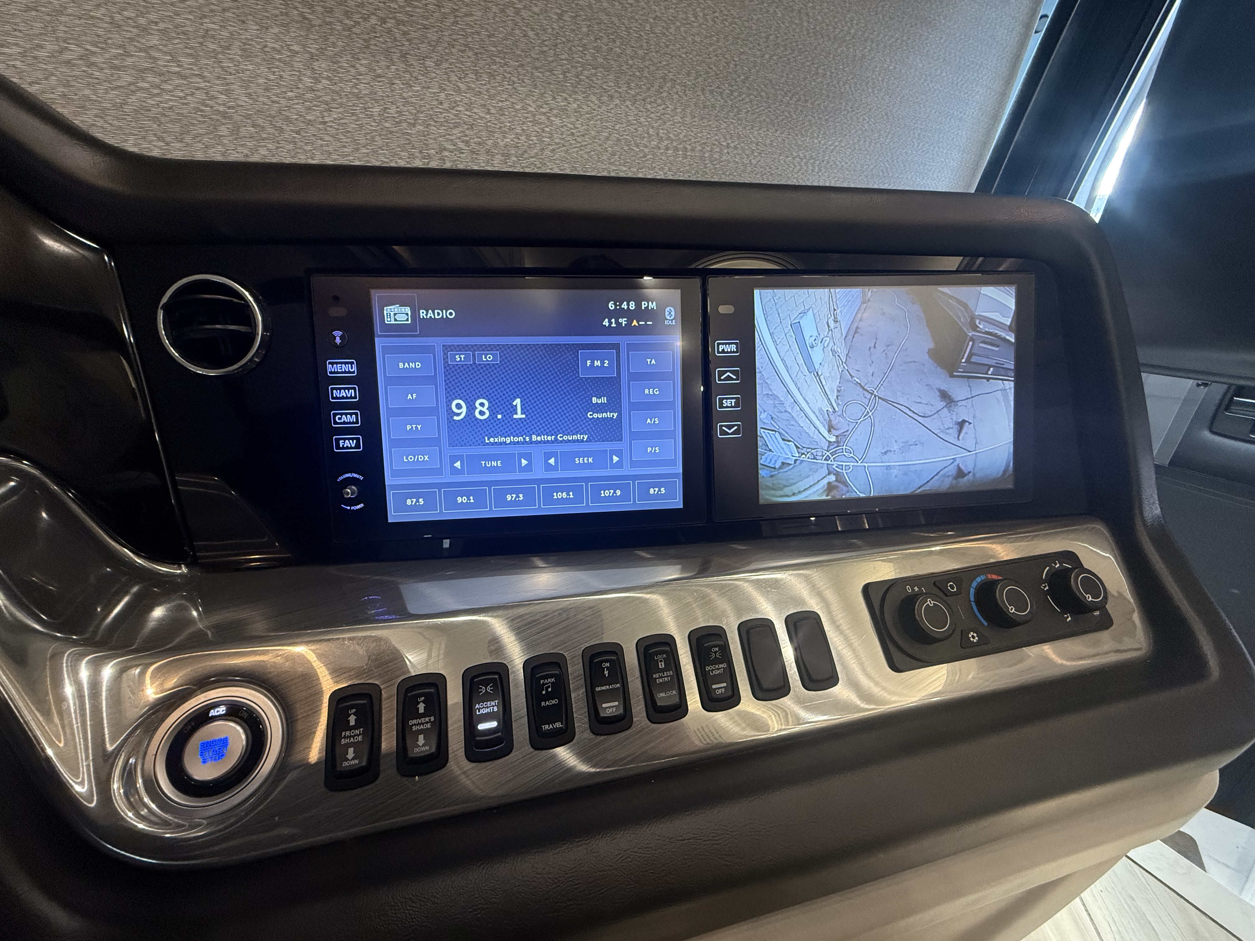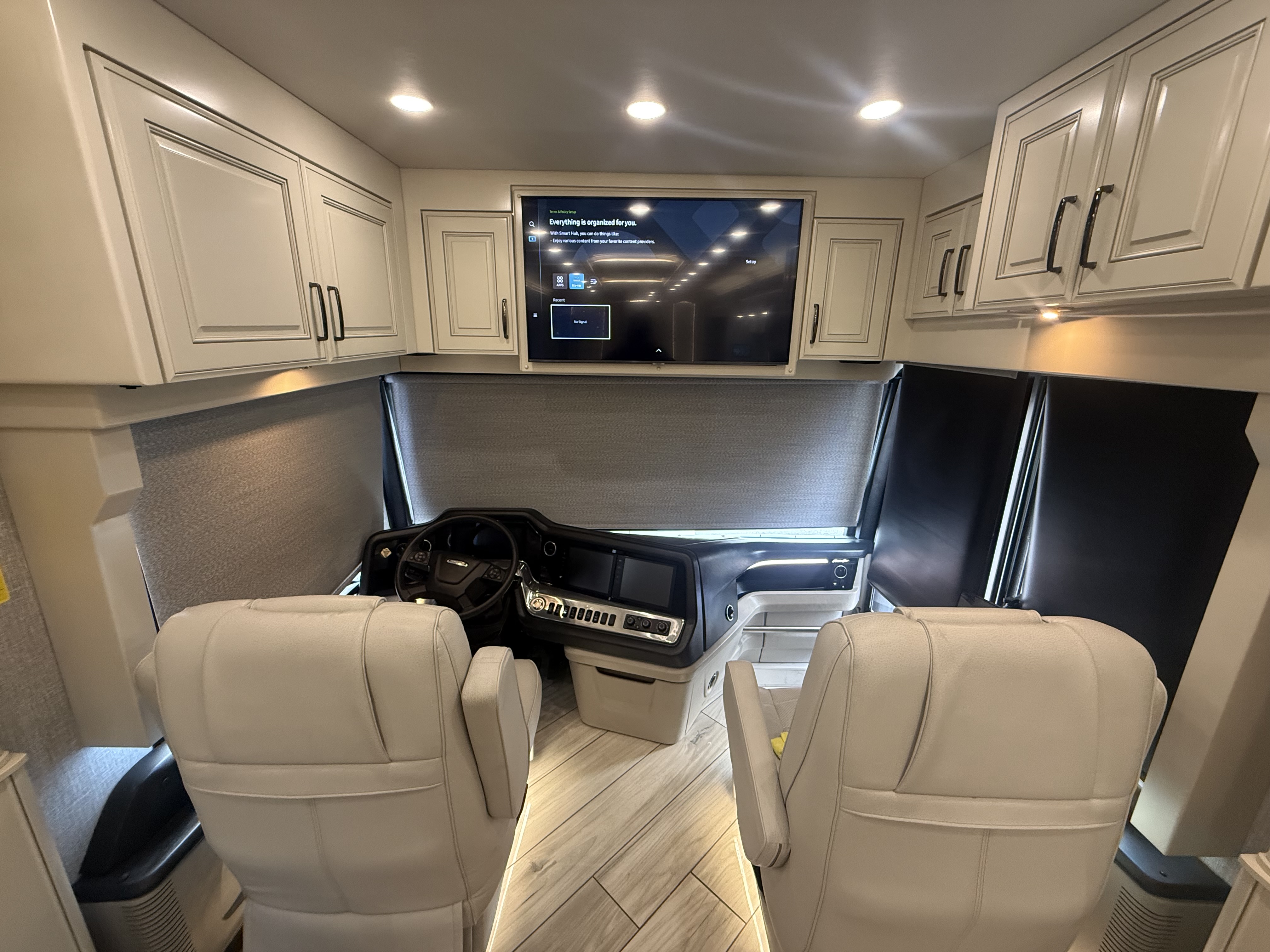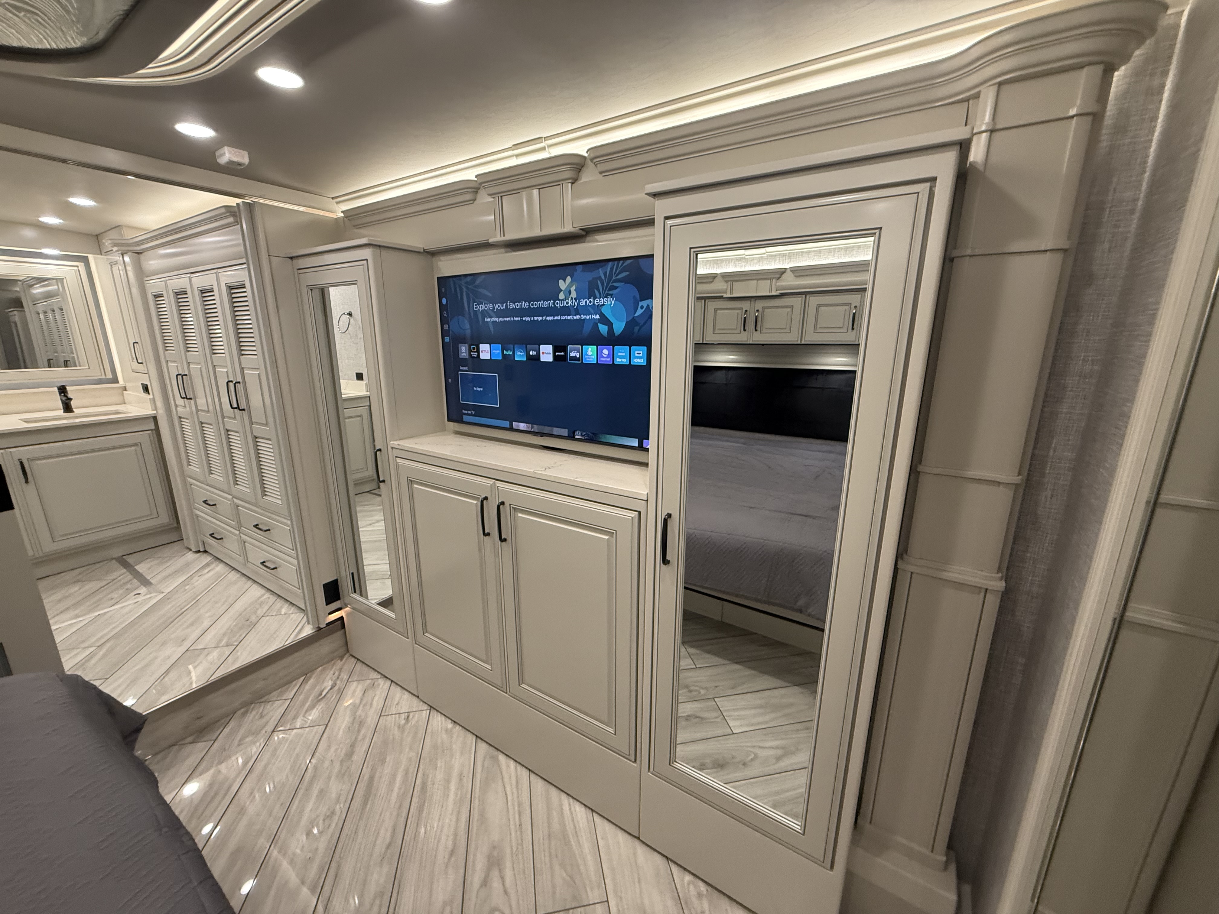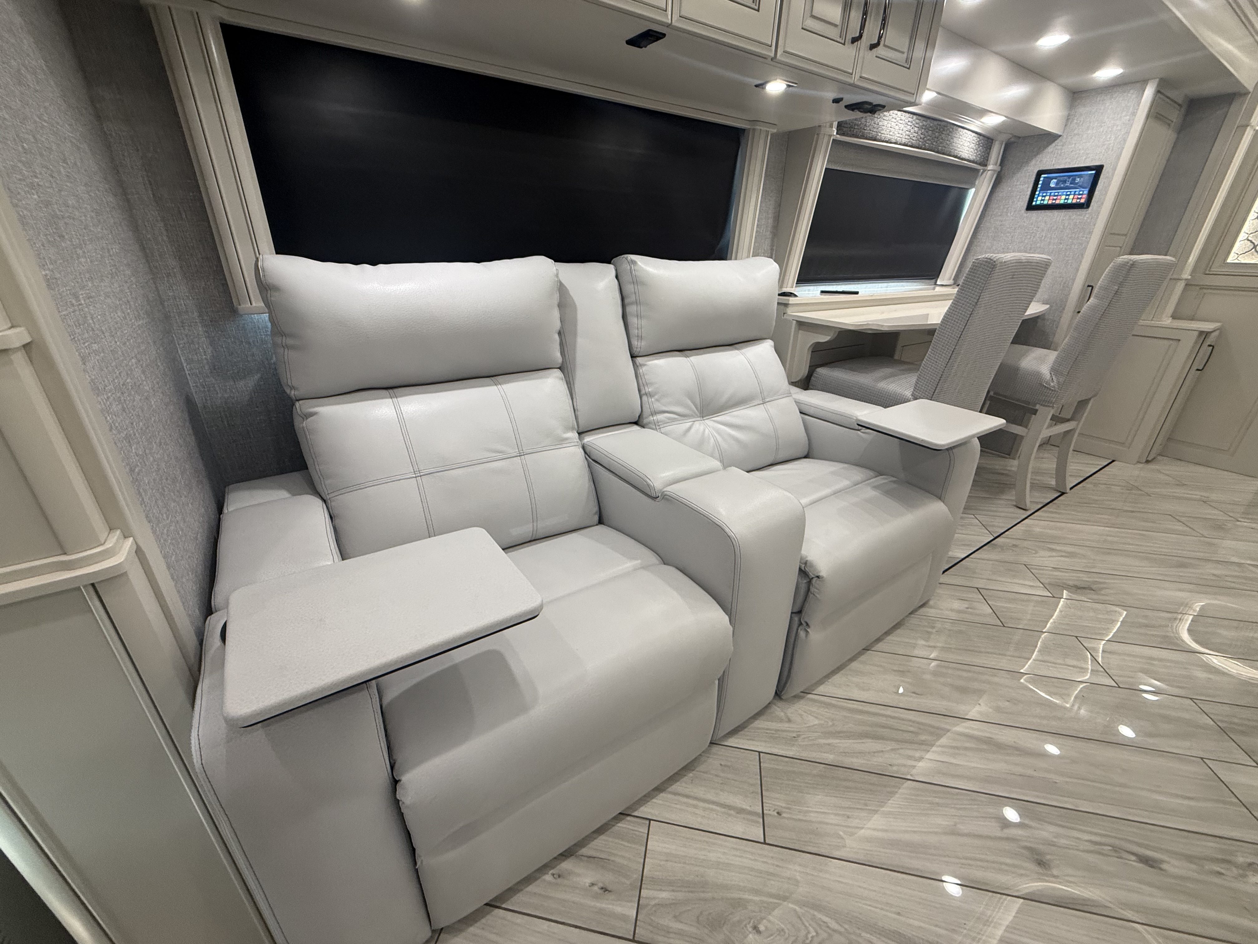 The 2024 American Coach Dream 45P is not just a motorhome; it is a rolling declaration of success, riding on the exclusive Liberty Bridge chassis which provides a foundation of rock-solid stability. This coach is defined by sheer muscle, commanded by the colossal 450HP Cummins L9engine that delivers earth-moving torque, ensuring you can tow a stacker trailer up any grade without hesitation. Inside, the "P" floor plan offers a level of bespoke opulence rarely seen, featuring quartz countertops, heated porcelain tile floors, and Apex custom furniture that rivals the comfort of a private jet. It is a sanctuary of technology and taste, equipped with a digital dash, advanced safety systems, and a master suite that feels like a five-star hotel.