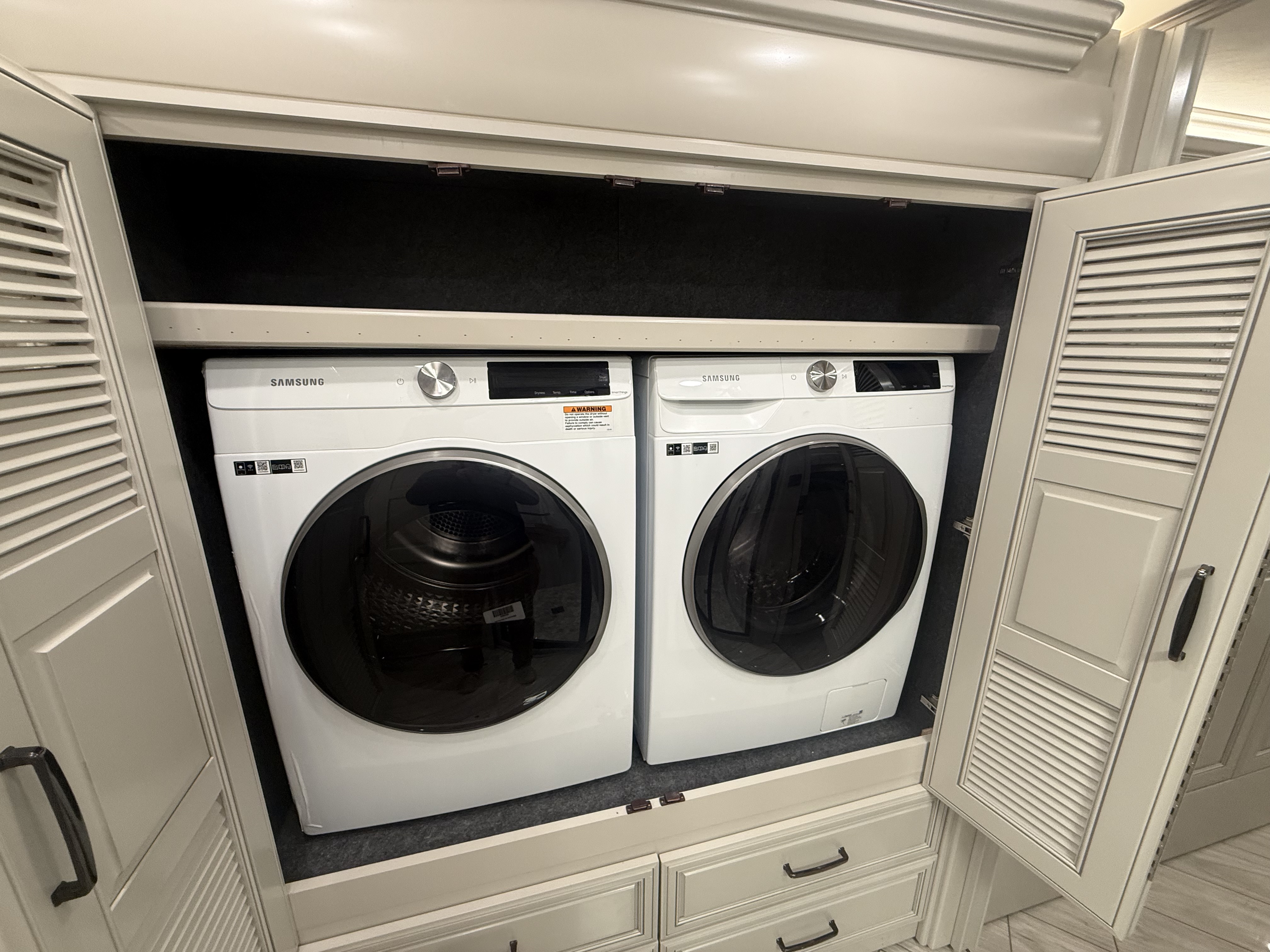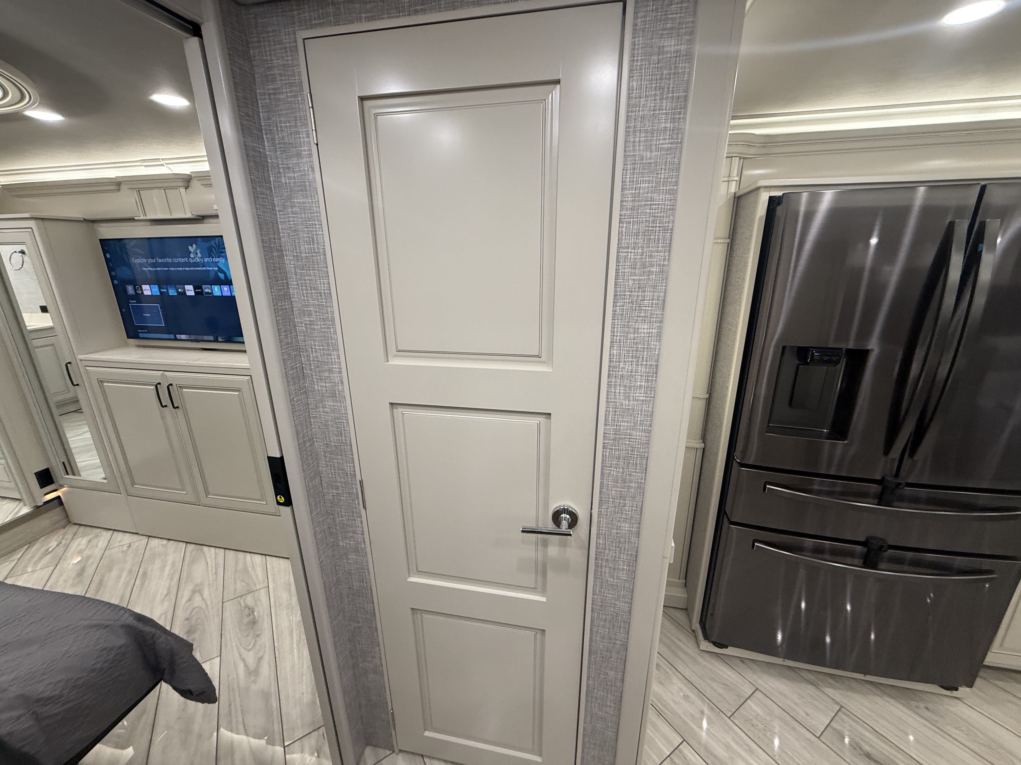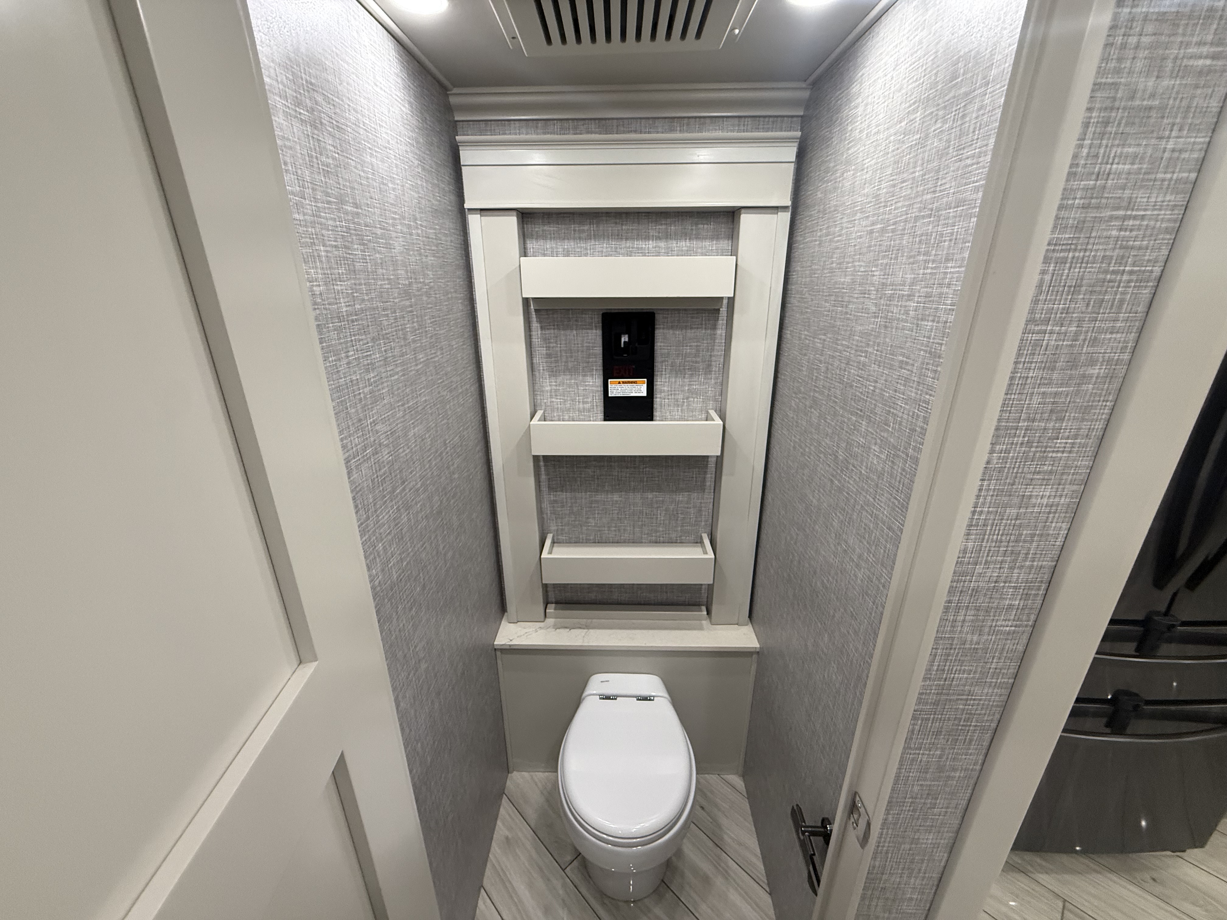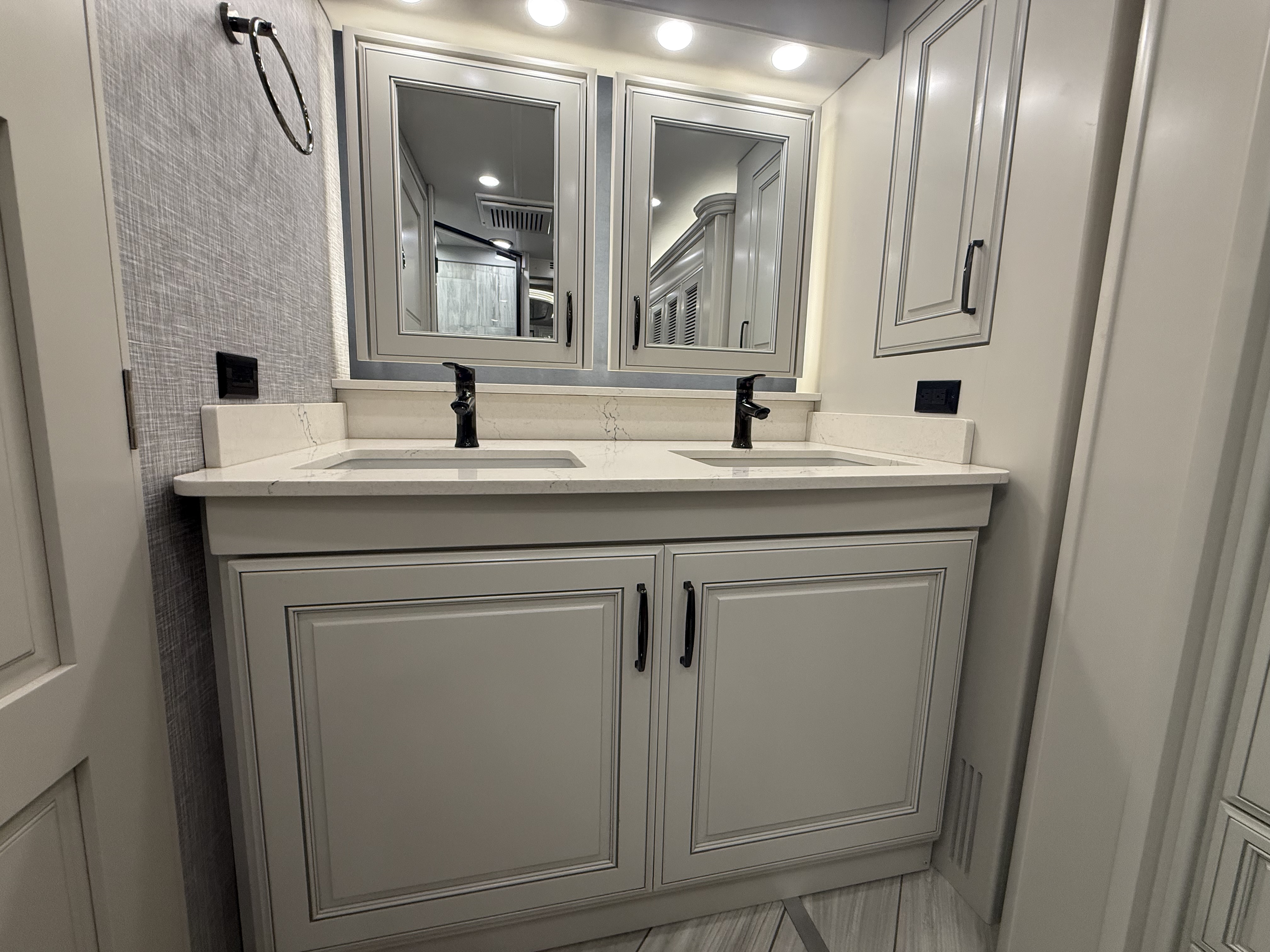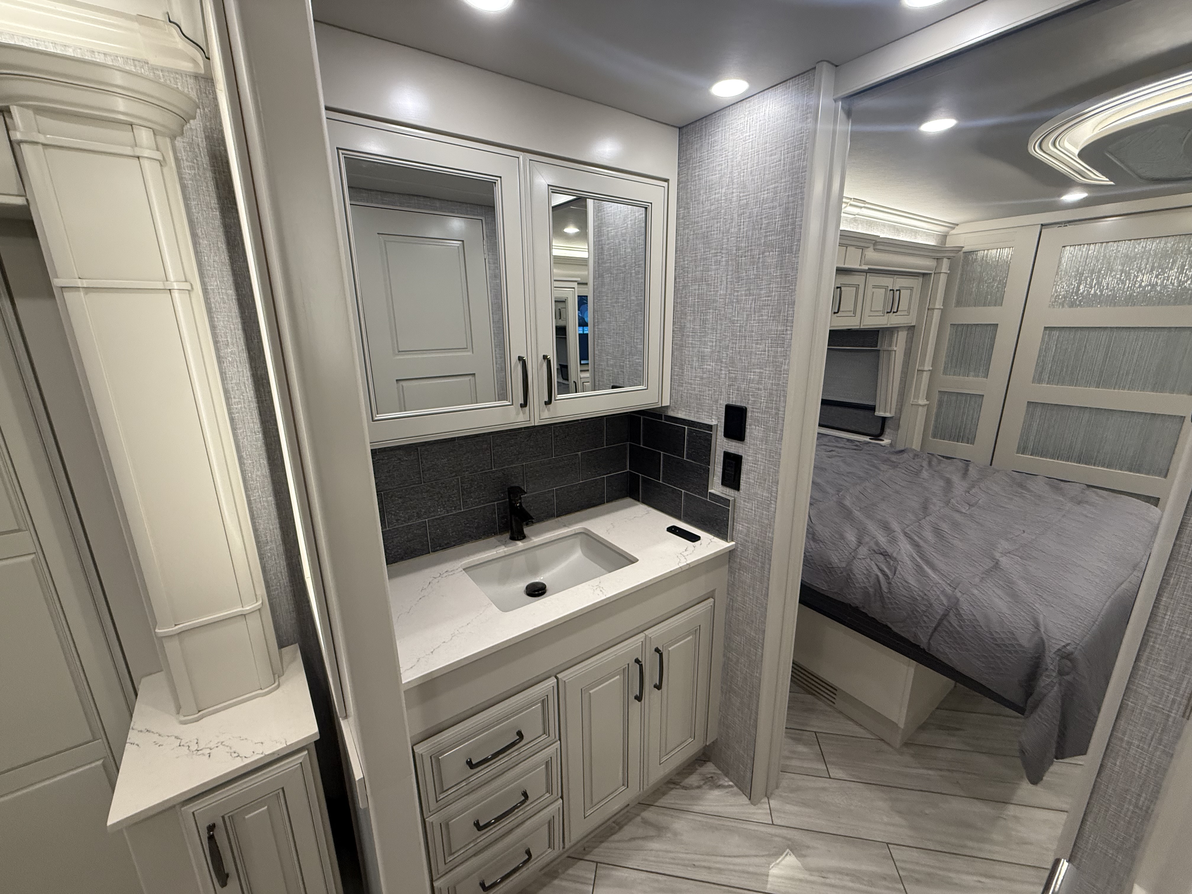 The 2024 American Coach Dream 45P is not just a motorhome; it is a rolling declaration of success, riding on the exclusive Liberty Bridge chassis which provides a foundation of rock-solid stability. This coach is defined by sheer muscle, commanded by the colossal 450HP Cummins L9engine that delivers earth-moving torque, ensuring you can tow a stacker trailer up any grade without hesitation. Inside, the "P" floor plan offers a level of bespoke opulence rarely seen, featuring quartz countertops, heated porcelain tile floors, and Apex custom furniture that rivals the comfort of a private jet. It is a sanctuary of technology and taste, equipped with a digital dash, advanced safety systems, and a master suite that feels like a five-star hotel.