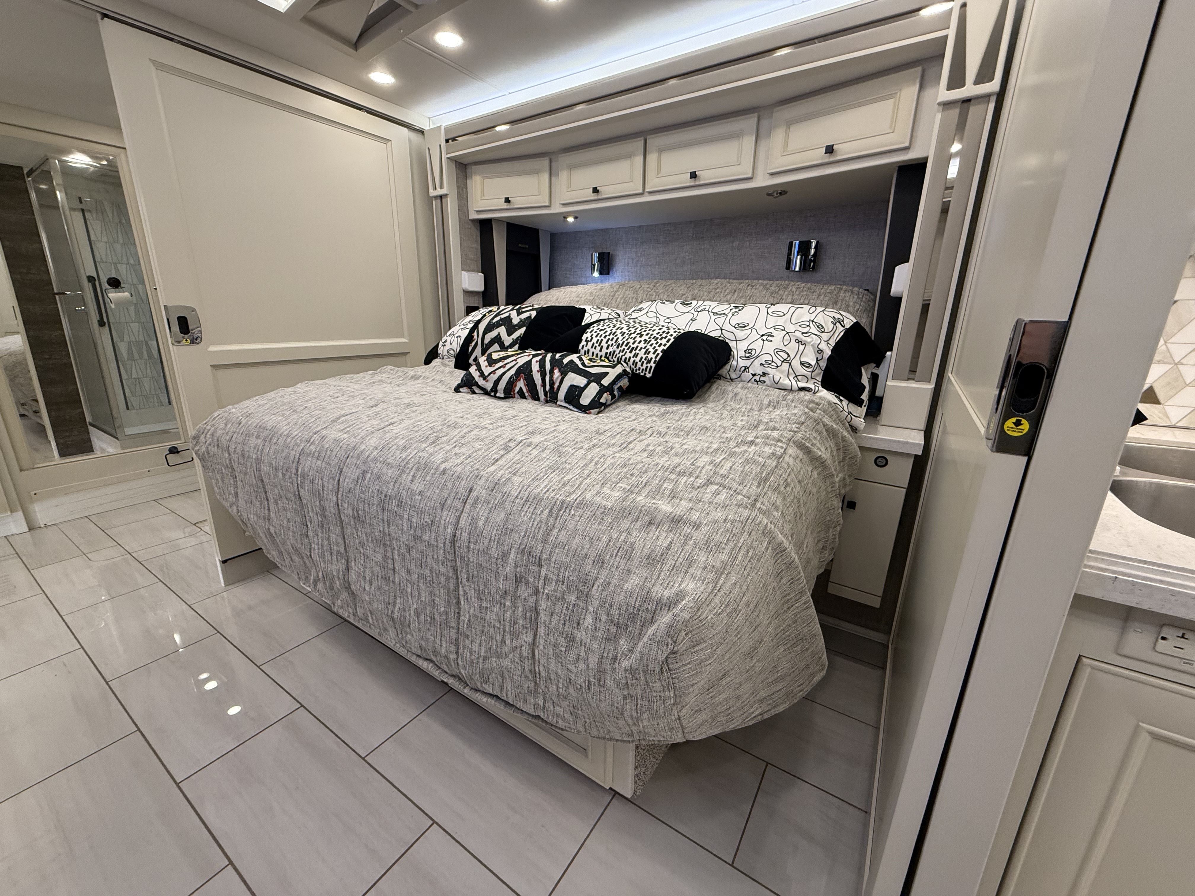 The 2025 Allegro Bus is designed to provide a comfortable and convenient travel experience, all while offering luxury amenities that make every journey unforgettable. The Allegro Bus features four different floor plan options, ranging from 37′ 5″ to 45 feet in length. Choose a floor plan with one bathroom, or go with a bath and a half option. With standard features such as Starlink Pro internet, heated tile floors, a large dishwasher, and washer and dryer in every floor plan, this top-notch coach offers everything you need for a comfortable life on the road.