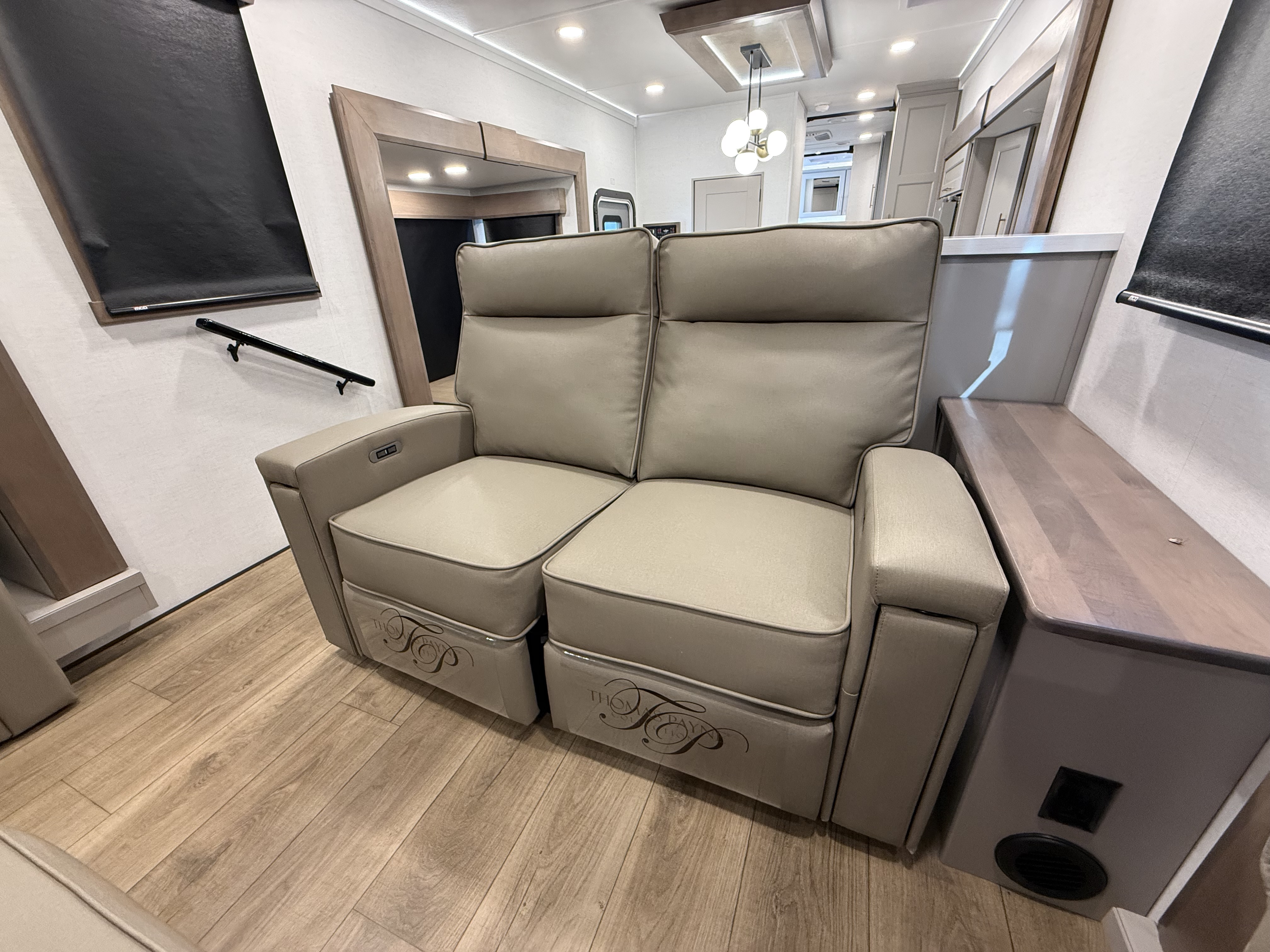 The 2025 Paradigm 385FL is an architectural marvel, utilizing the Front Living layout to create a distinct, elevated entertainment zone that feels completely separate from the rest of the coach. By moving the lounge upstairs, the main level transforms into a massive "culinary center," featuring a residential-sized kitchen with an island and a half-bath for guests, making it perfect for hosting dinner parties. The master suite is located in the secluded rear of the coach, offering a King Bed slide-out and a private en-suite bathroom with a large walk-in shower, ensuring your rest is quiet and undisturbed.