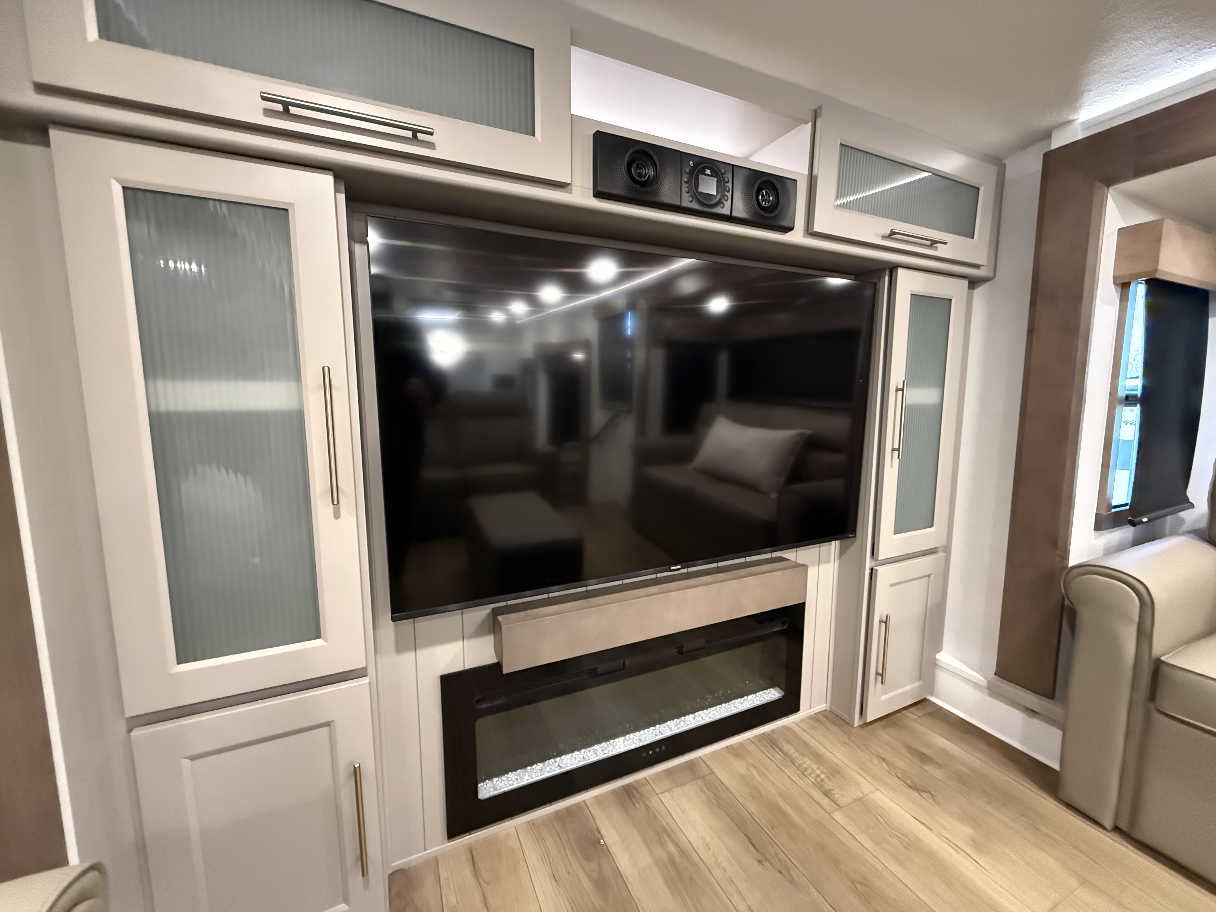 - 55" Smart TV with Pull-Out Fireplace Storage