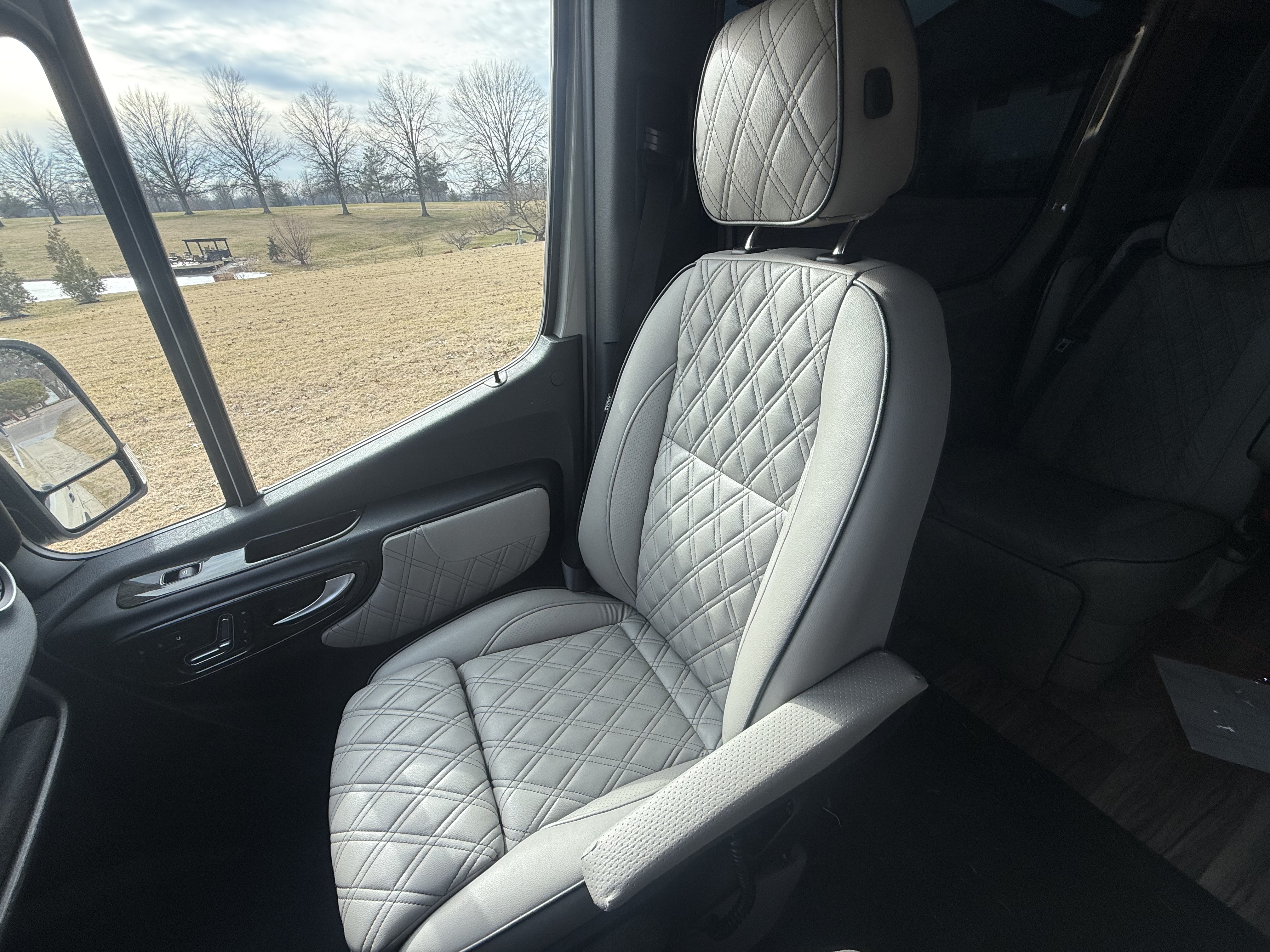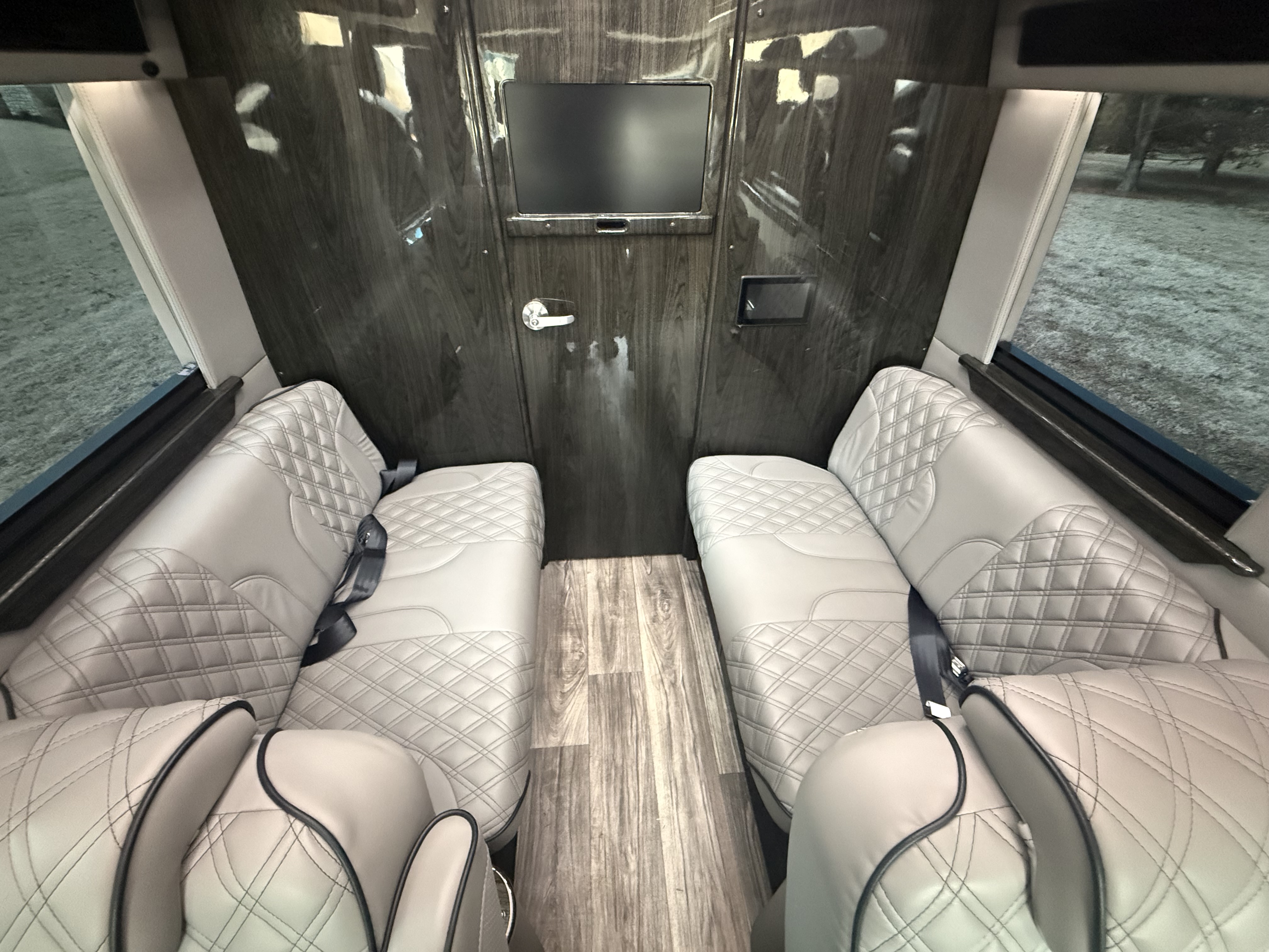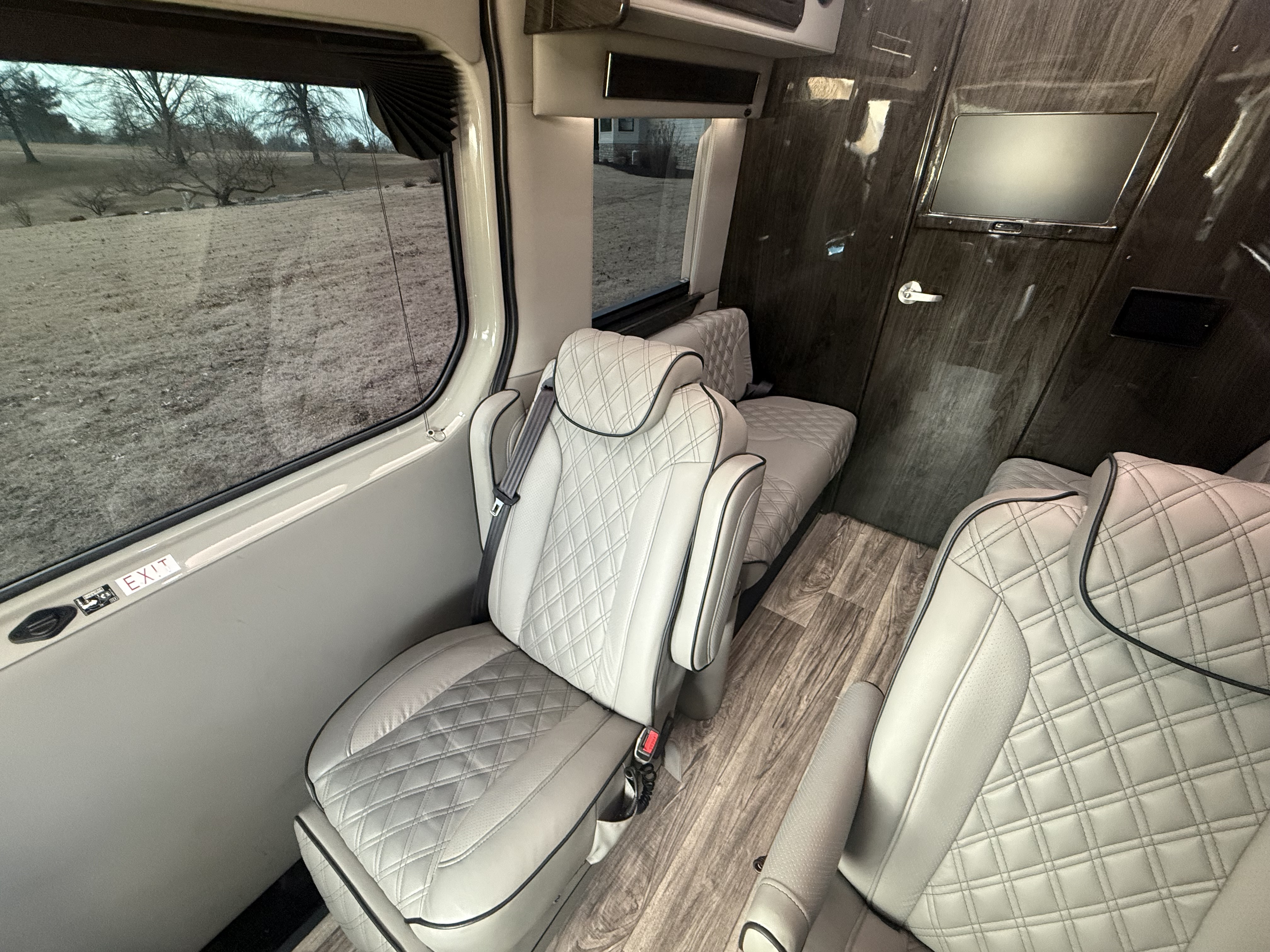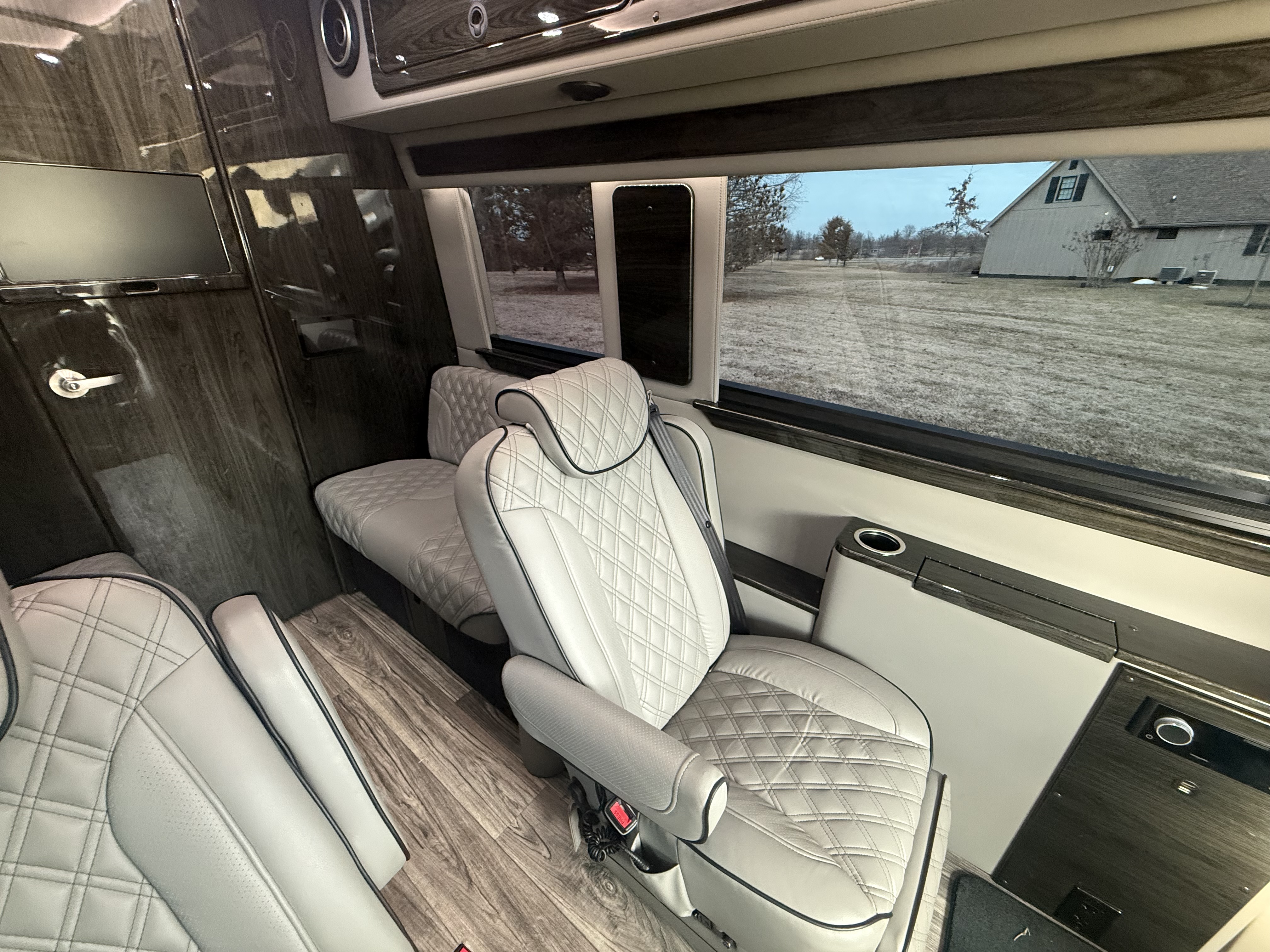 The 2025 Midwest Automotive Designs Luxe Cruiser D4 in Pebble Grey is less about "camping" and more about making the journey itself the best part of the trip. If you hate the hassle of airports but love luxury travel, this Sprinter is the answer; the captain’s chairs are incredibly comfortable for long hauls, and the craftsmanship on the wood and stitching is something you really have to see in person to appreciate. It’s quiet, smooth, and equipped with internet and entertainment tech that makes a six-hour drive feel like a quick hop.