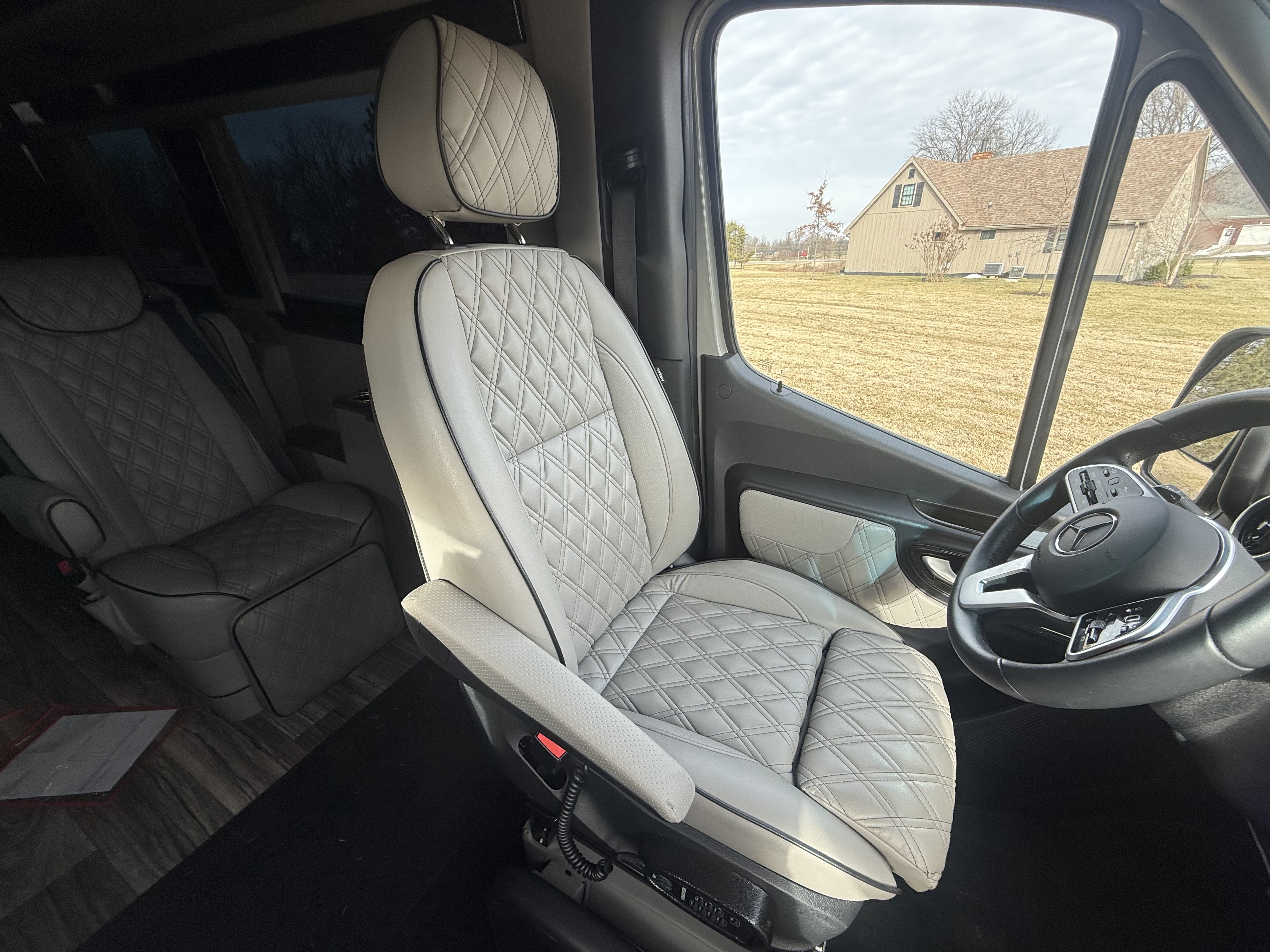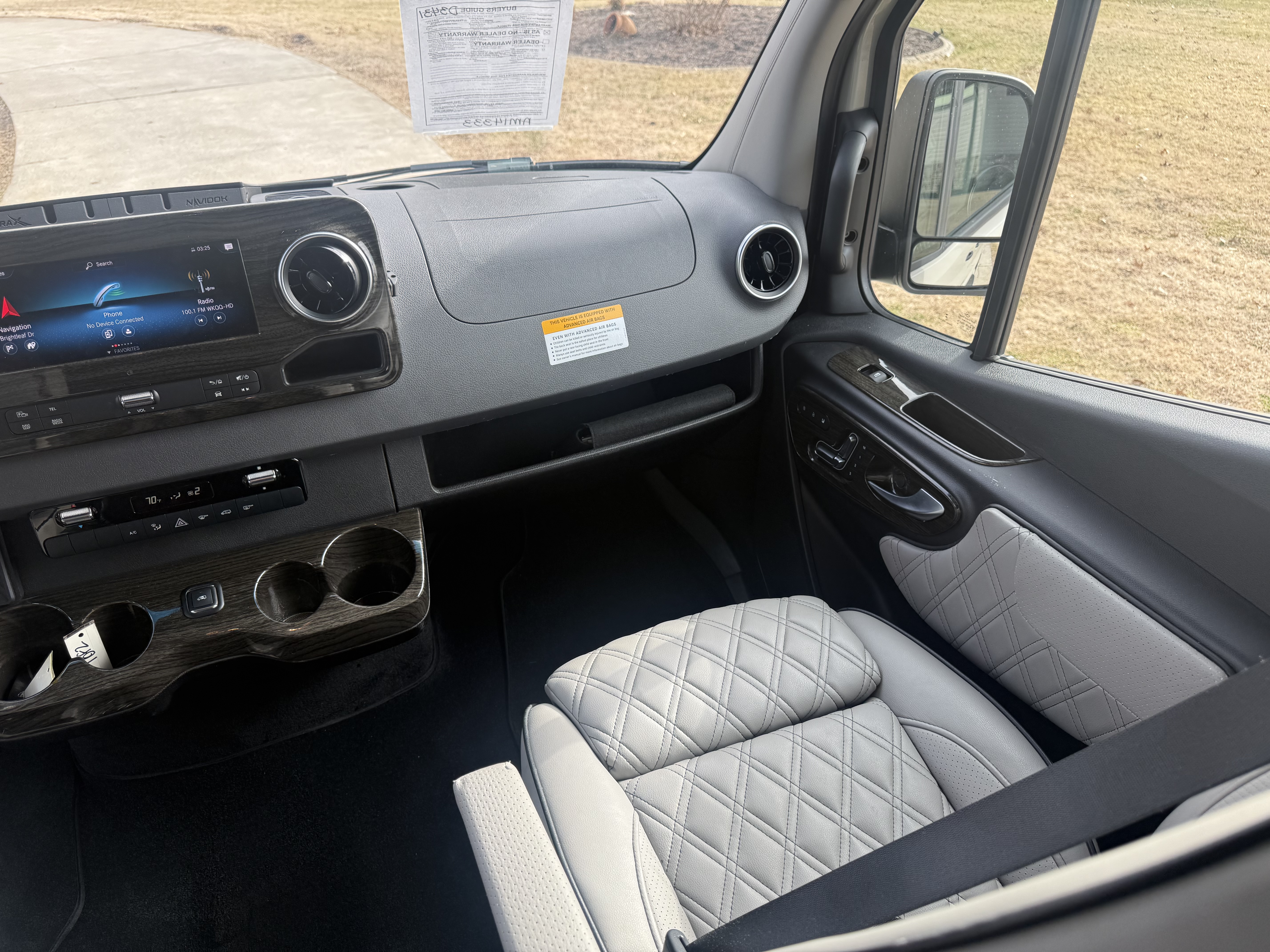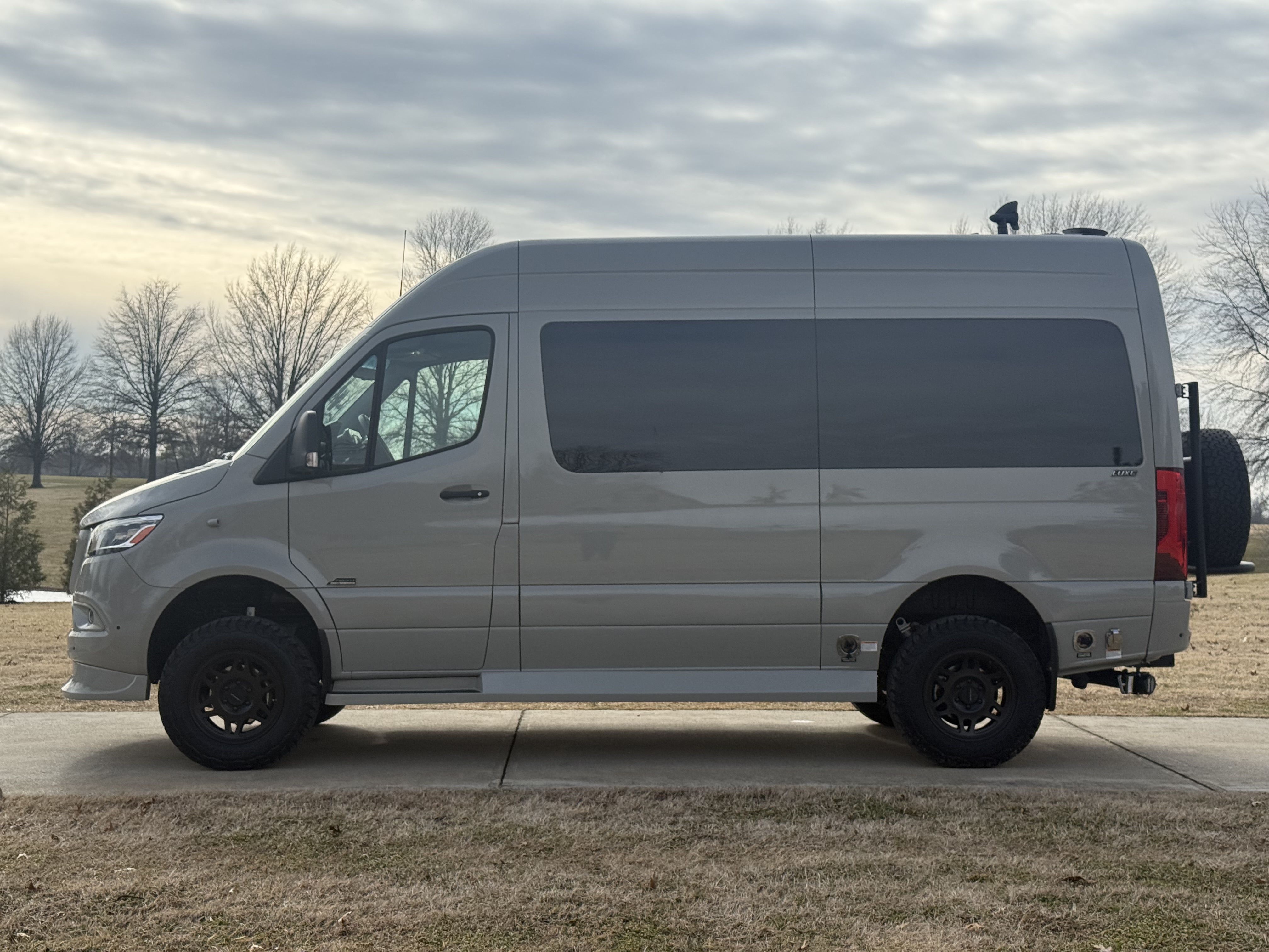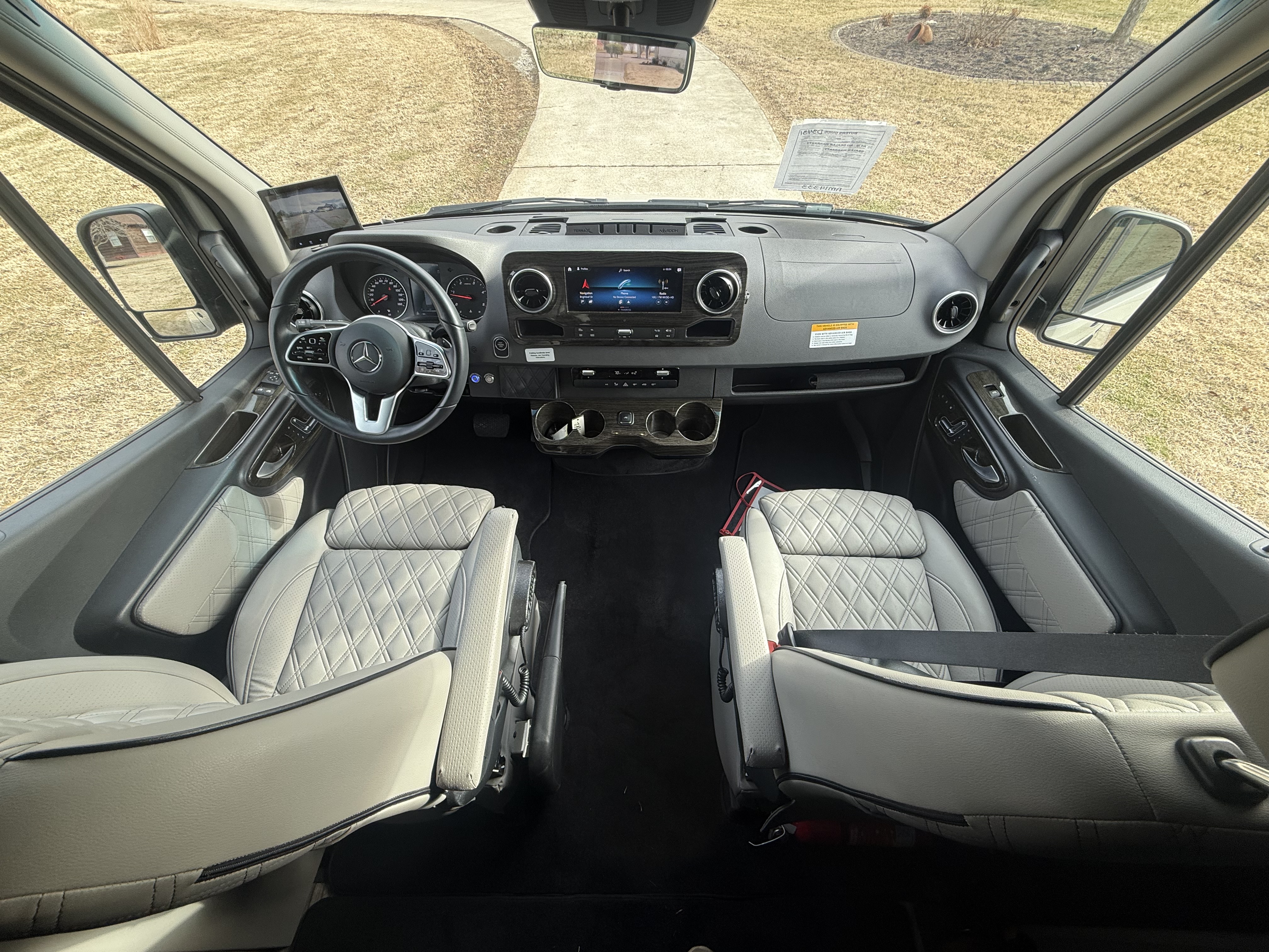 The 2025 Midwest Automotive Designs Luxe Cruiser D4 in Pebble Grey is less about "camping" and more about making the journey itself the best part of the trip. If you hate the hassle of airports but love luxury travel, this Sprinter is the answer; the captain’s chairs are incredibly comfortable for long hauls, and the craftsmanship on the wood and stitching is something you really have to see in person to appreciate. It’s quiet, smooth, and equipped with internet and entertainment tech that makes a six-hour drive feel like a quick hop.