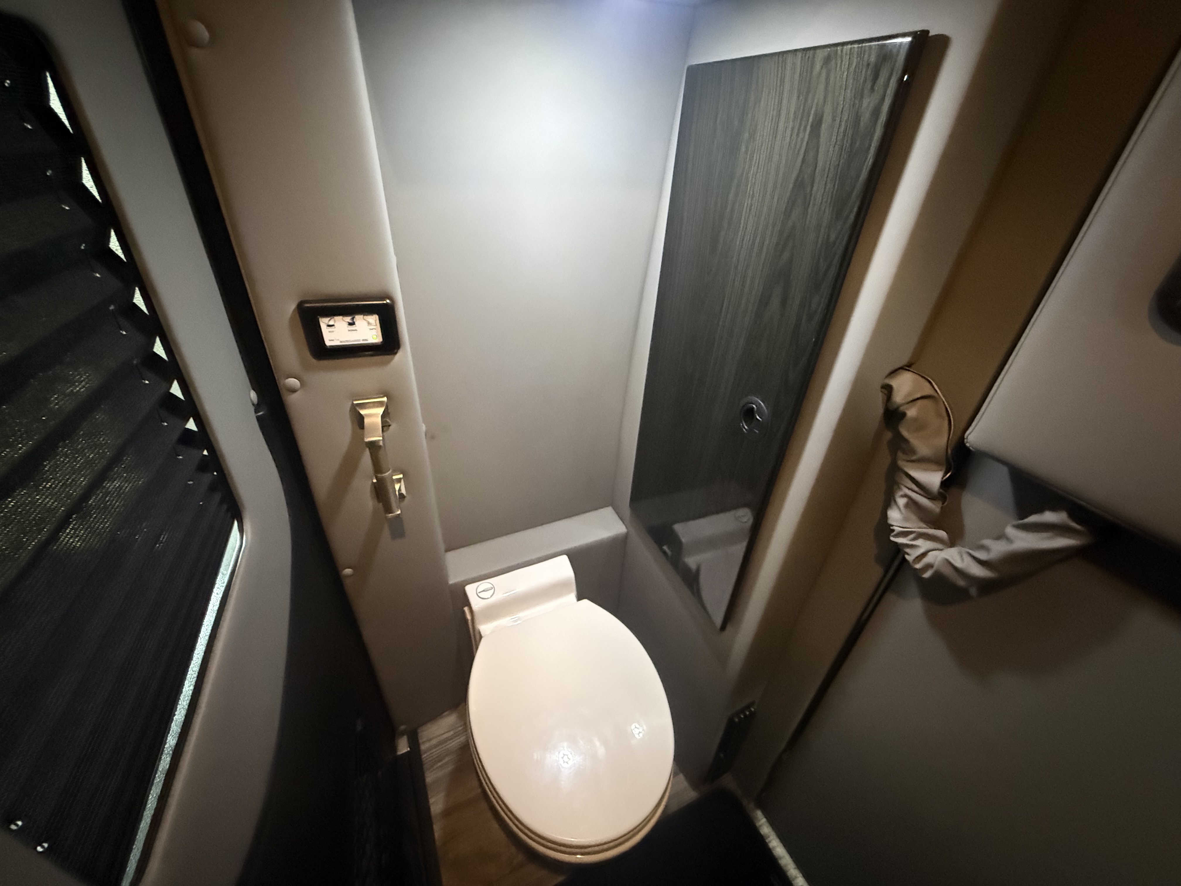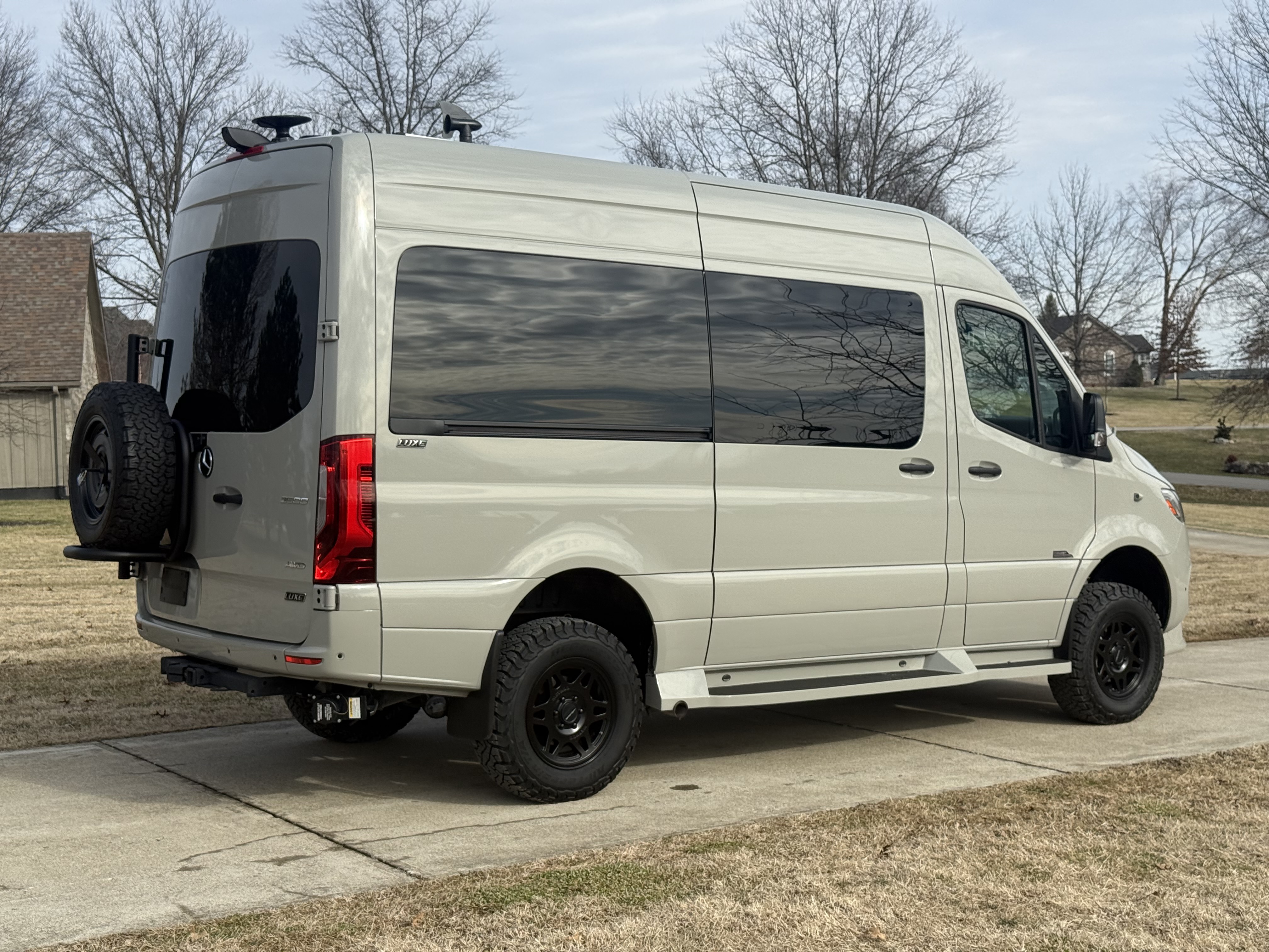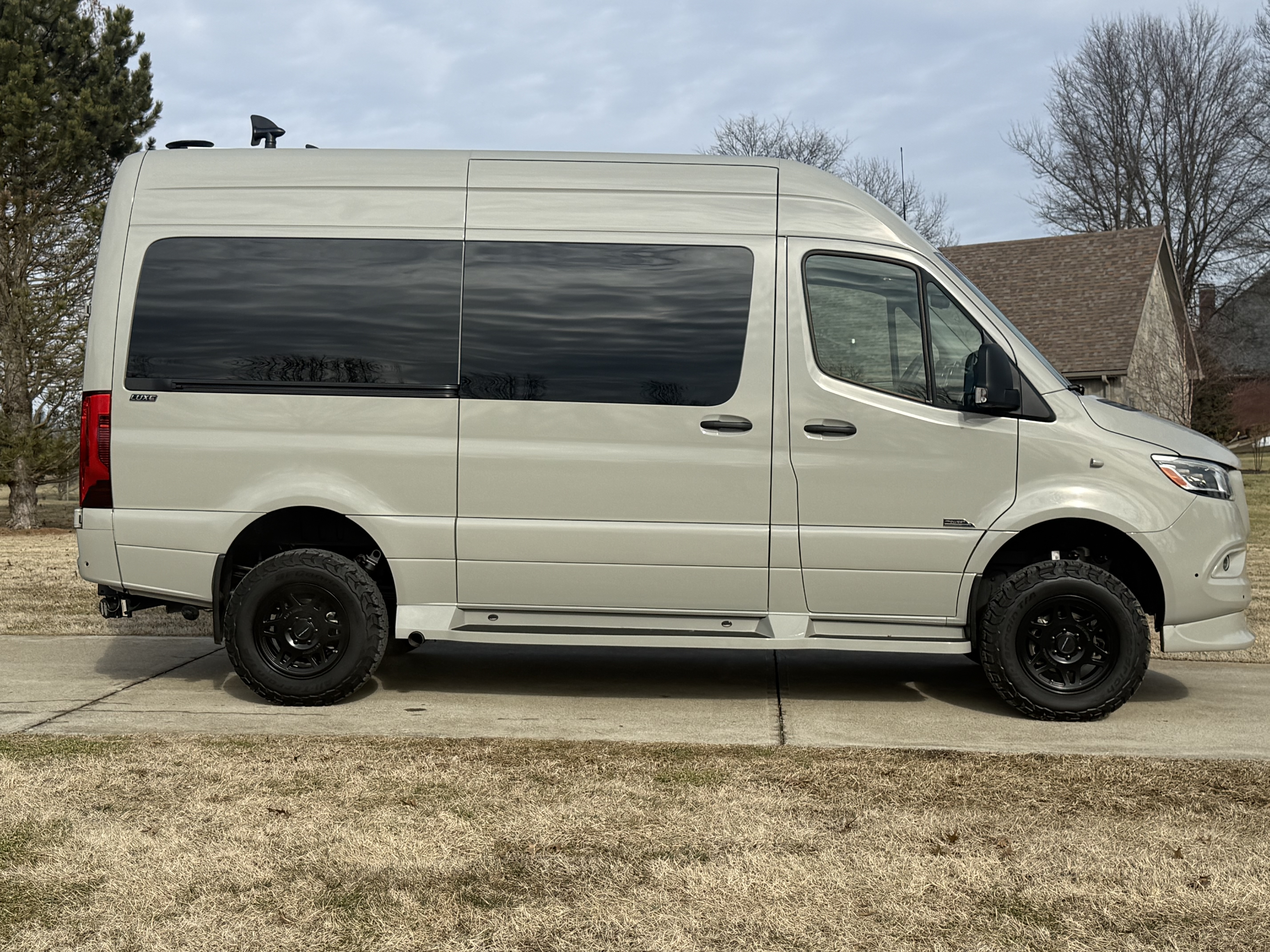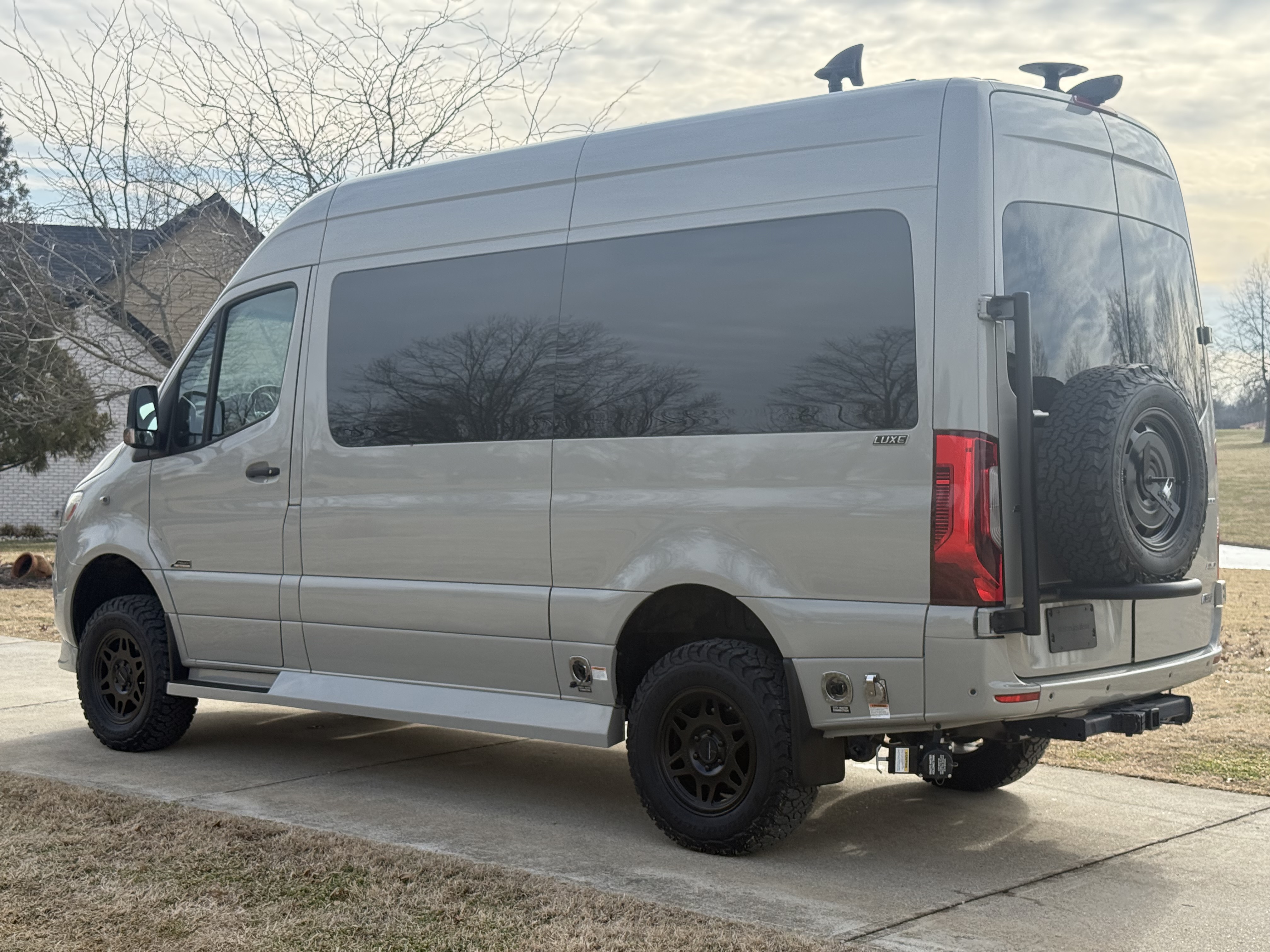 The 2025 Midwest Automotive Designs Luxe Cruiser D4 in Pebble Grey is less about "camping" and more about making the journey itself the best part of the trip. If you hate the hassle of airports but love luxury travel, this Sprinter is the answer; the captain’s chairs are incredibly comfortable for long hauls, and the craftsmanship on the wood and stitching is something you really have to see in person to appreciate. It’s quiet, smooth, and equipped with internet and entertainment tech that makes a six-hour drive feel like a quick hop.