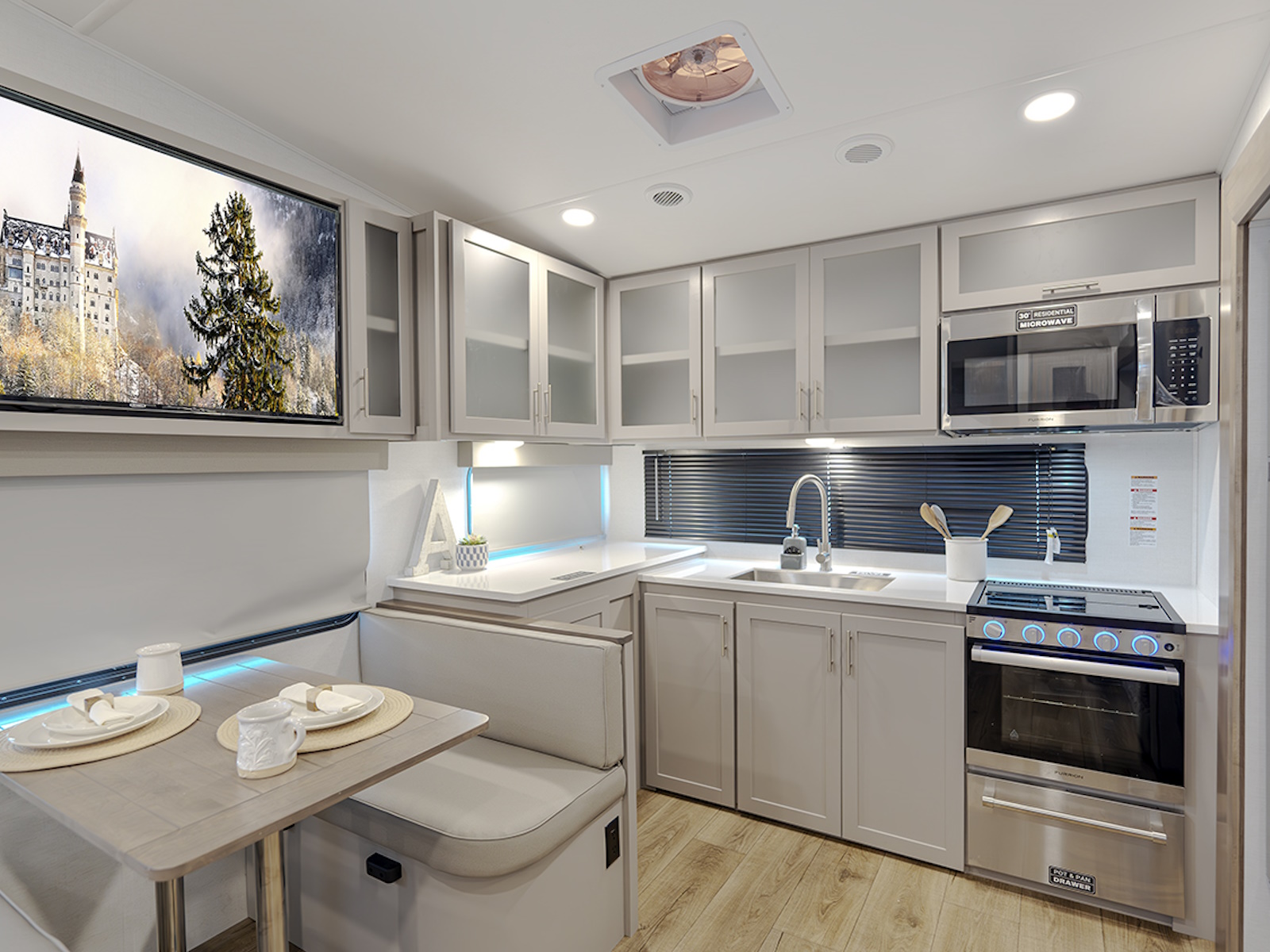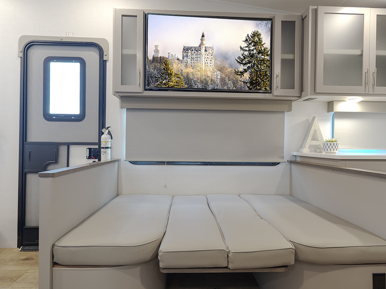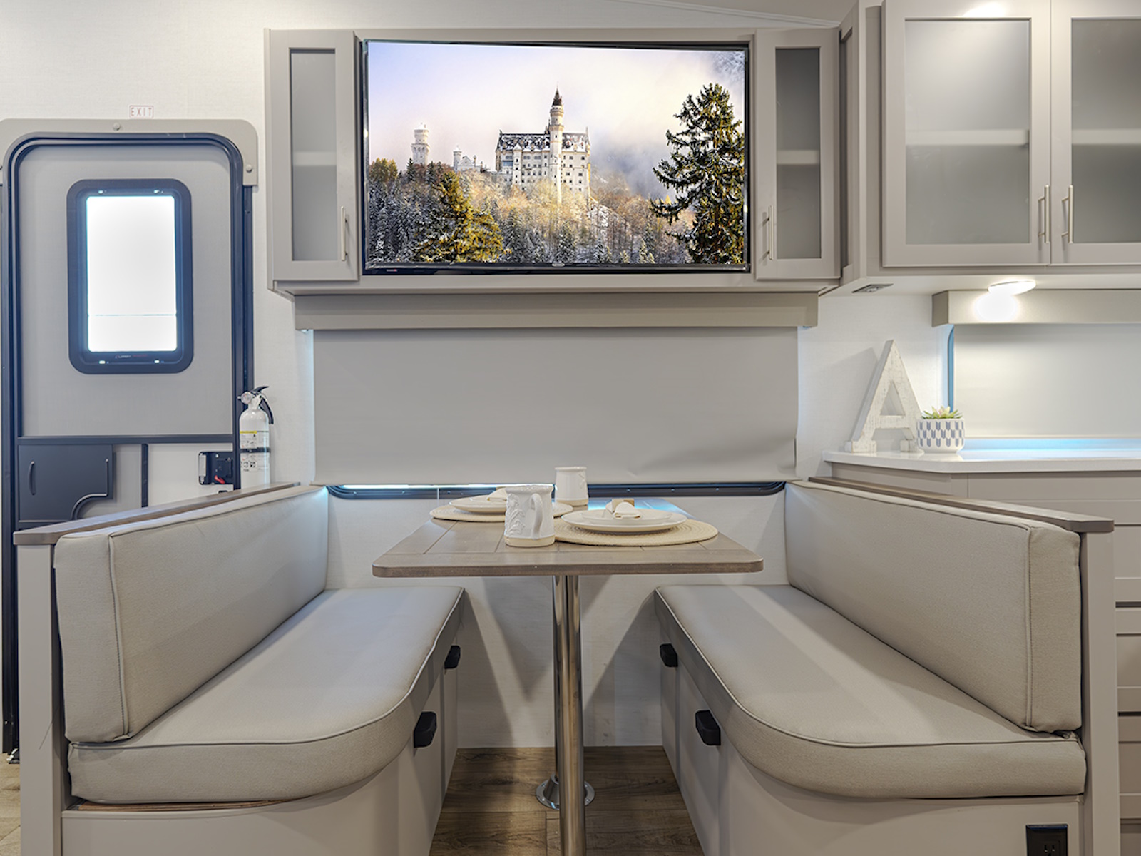 - Dual reclining theater seating and a spacious U-shaped dinette