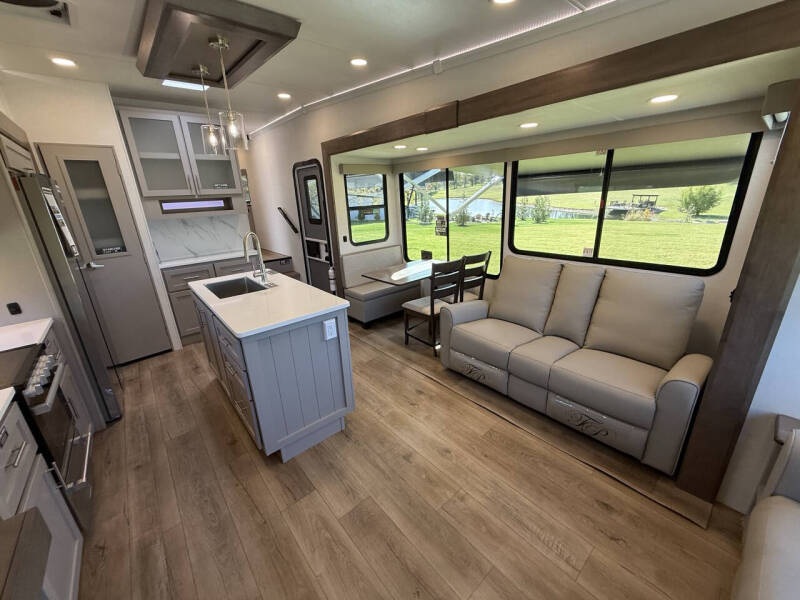 We love the 2026 Avenue 32RLS because it brings the premium "wide-body" experience into a mid-profile fifth wheel that is easier to tow. The Rear Living layout is anchored by massive Atrium windows that flood the room with natural light and offer panoramic views of your destination, creating a serene environment for relaxation. It is fully equipped for modern travel with performance running gear for a smoother tow, no carpet in the living areas for easy cleaning, and a private master suite that offers a peaceful retreat at the end of the day.