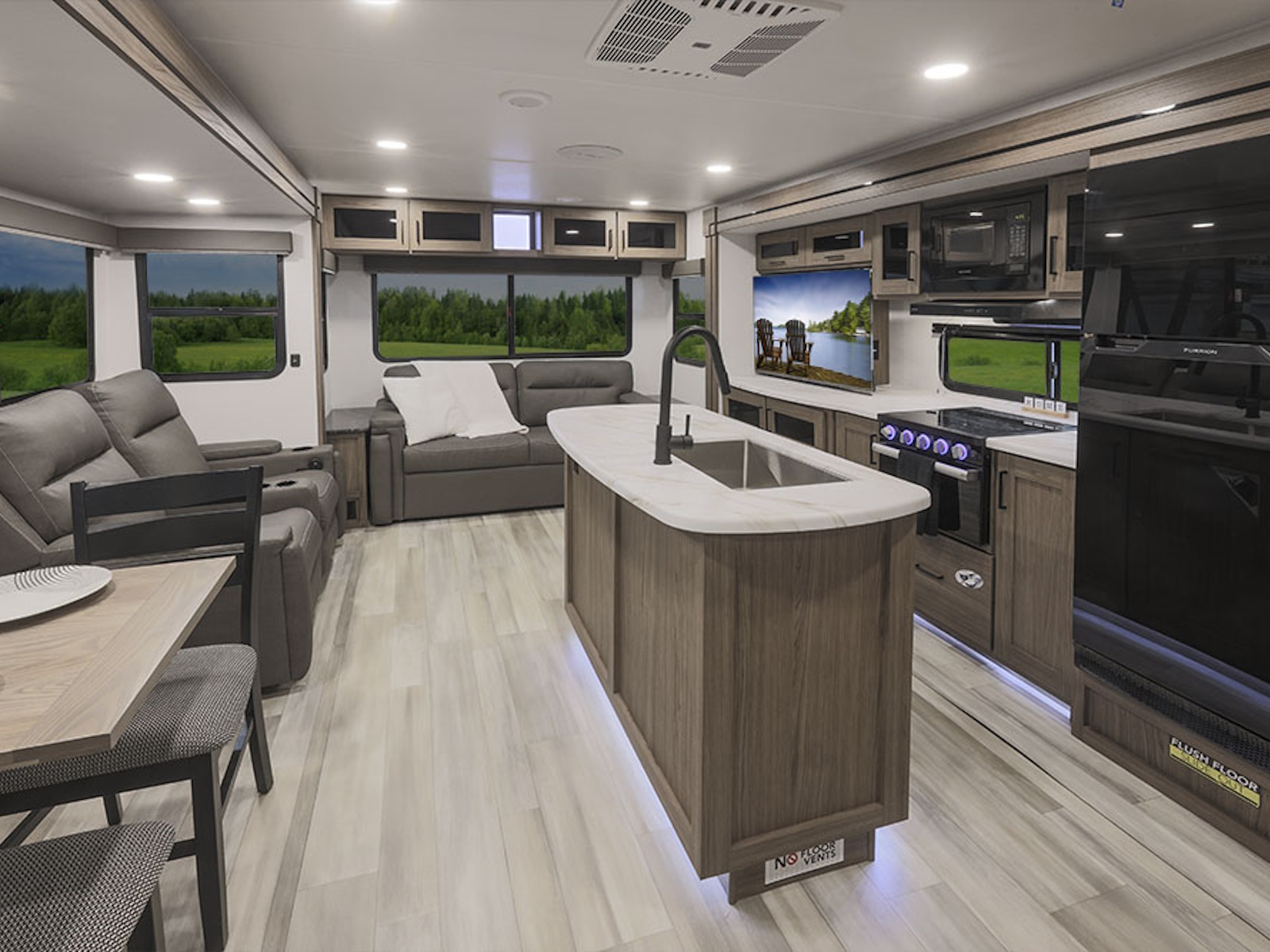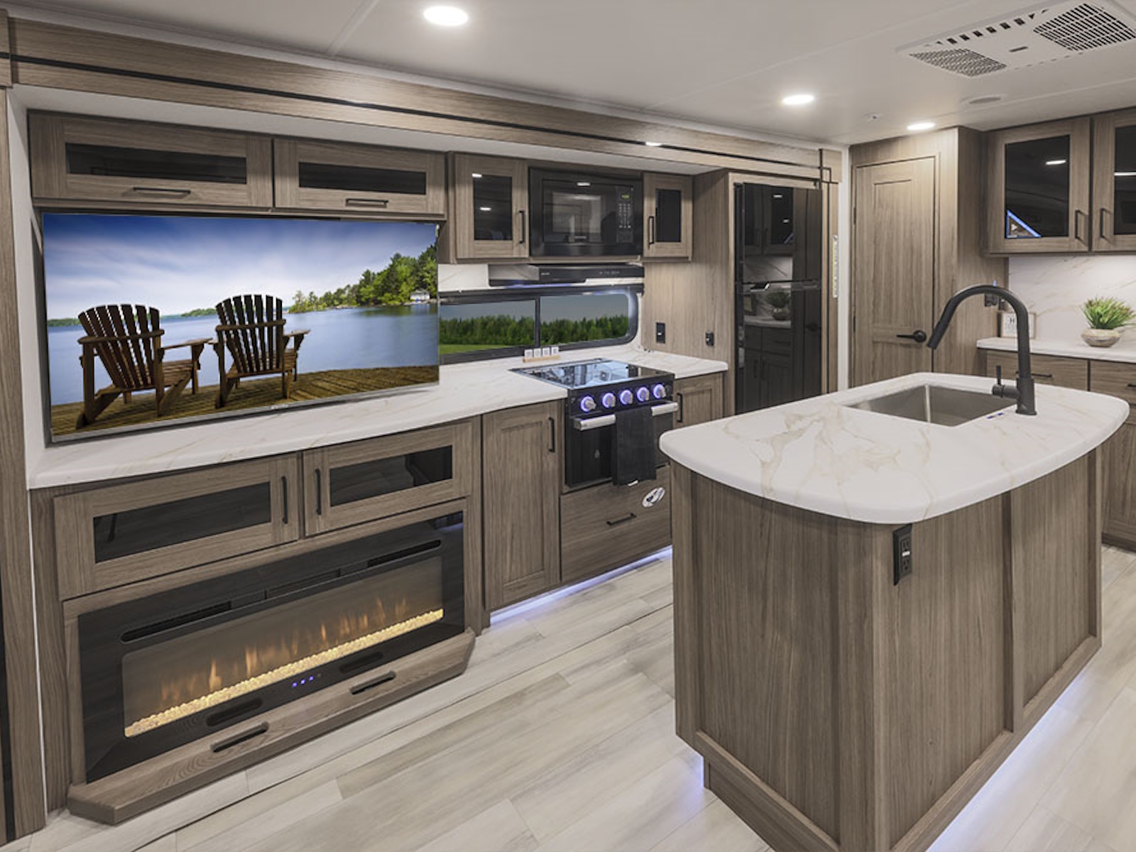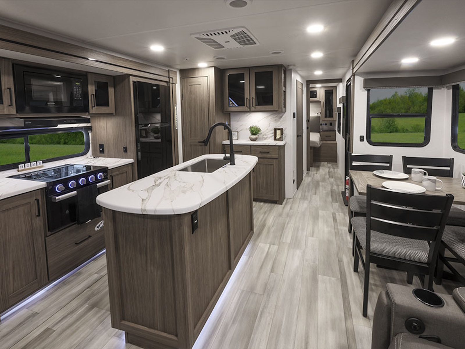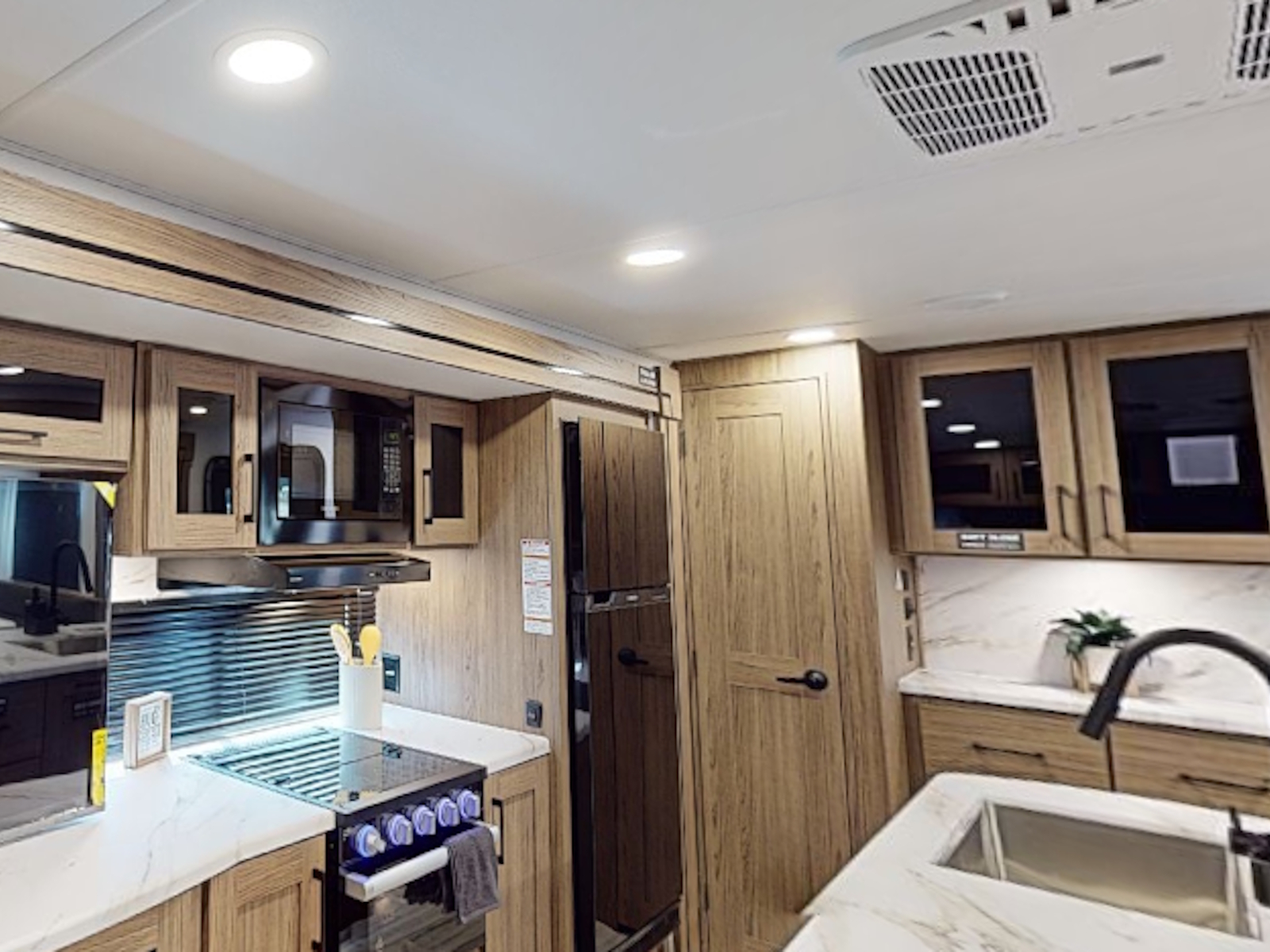 We recommend the 2026 Alliance Delta 292RL because it is engineered to perform in the real world, regardless of the climate. It sets a new standard for the class with dual high-efficiency air conditioners and Azdel composite sidewalls, ensuring superior insulation and temperature control whether you are parked in the desert or the mountains. The kitchen is equally capable, equipped with a large 12-volt refrigerator and distinct epoxy countertops, providing a durable and stylish workspace for meal prep. With Goodyear Endurance tires and heavy-duty running gear, this rig is built to tow smoothly and arrive ready for adventure.