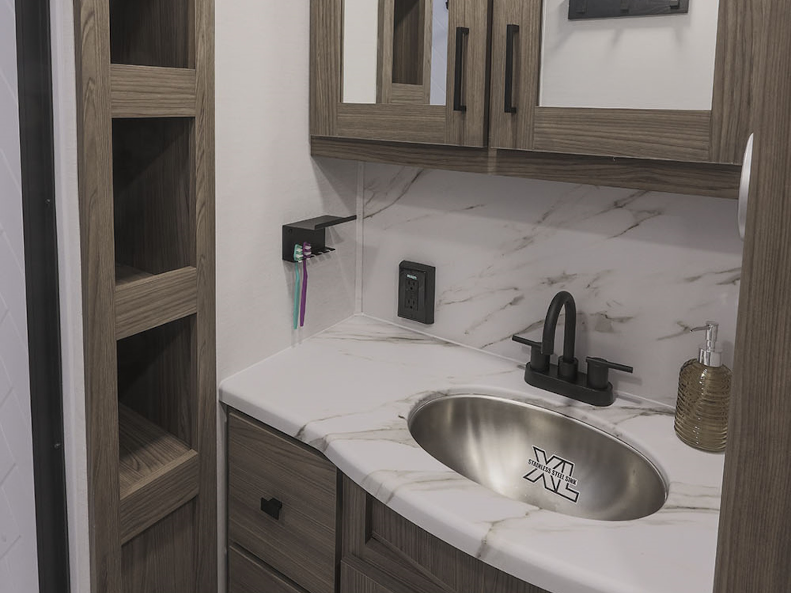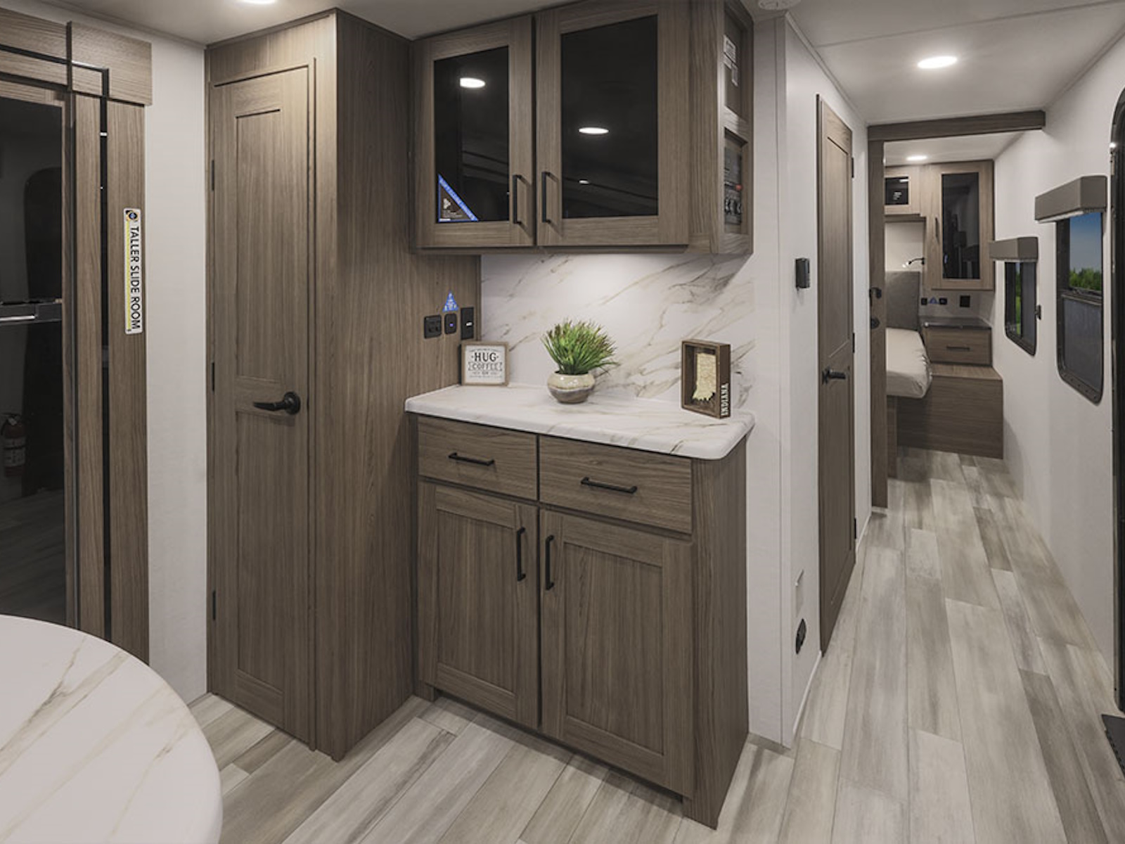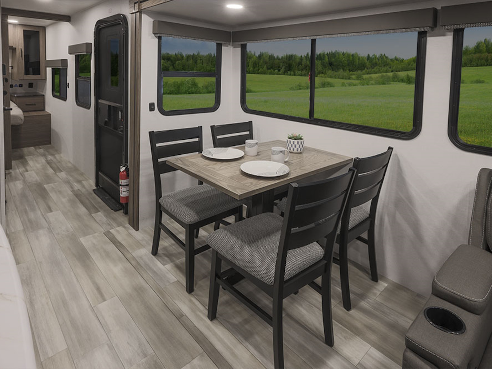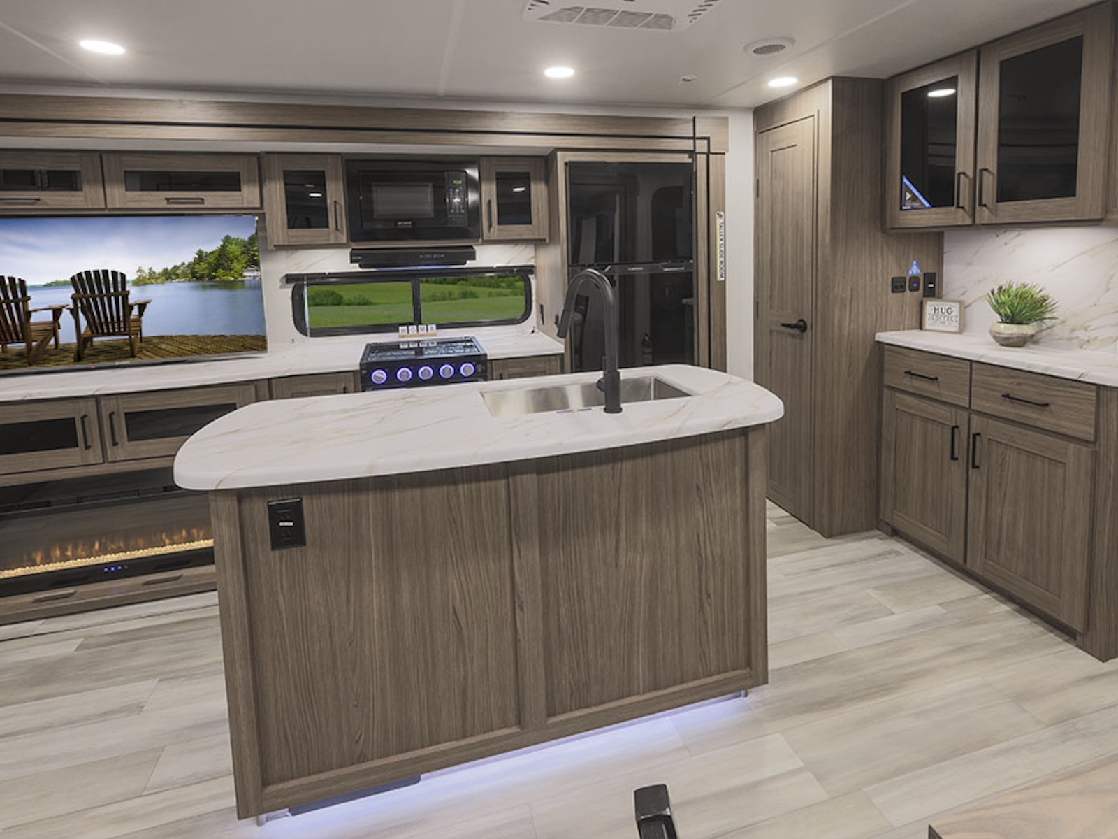 We recommend the 2026 Alliance Delta 292RL because it is engineered to perform in the real world, regardless of the climate. It sets a new standard for the class with dual high-efficiency air conditioners and Azdel composite sidewalls, ensuring superior insulation and temperature control whether you are parked in the desert or the mountains. The kitchen is equally capable, equipped with a large 12-volt refrigerator and distinct epoxy countertops, providing a durable and stylish workspace for meal prep. With Goodyear Endurance tires and heavy-duty running gear, this rig is built to tow smoothly and arrive ready for adventure.
