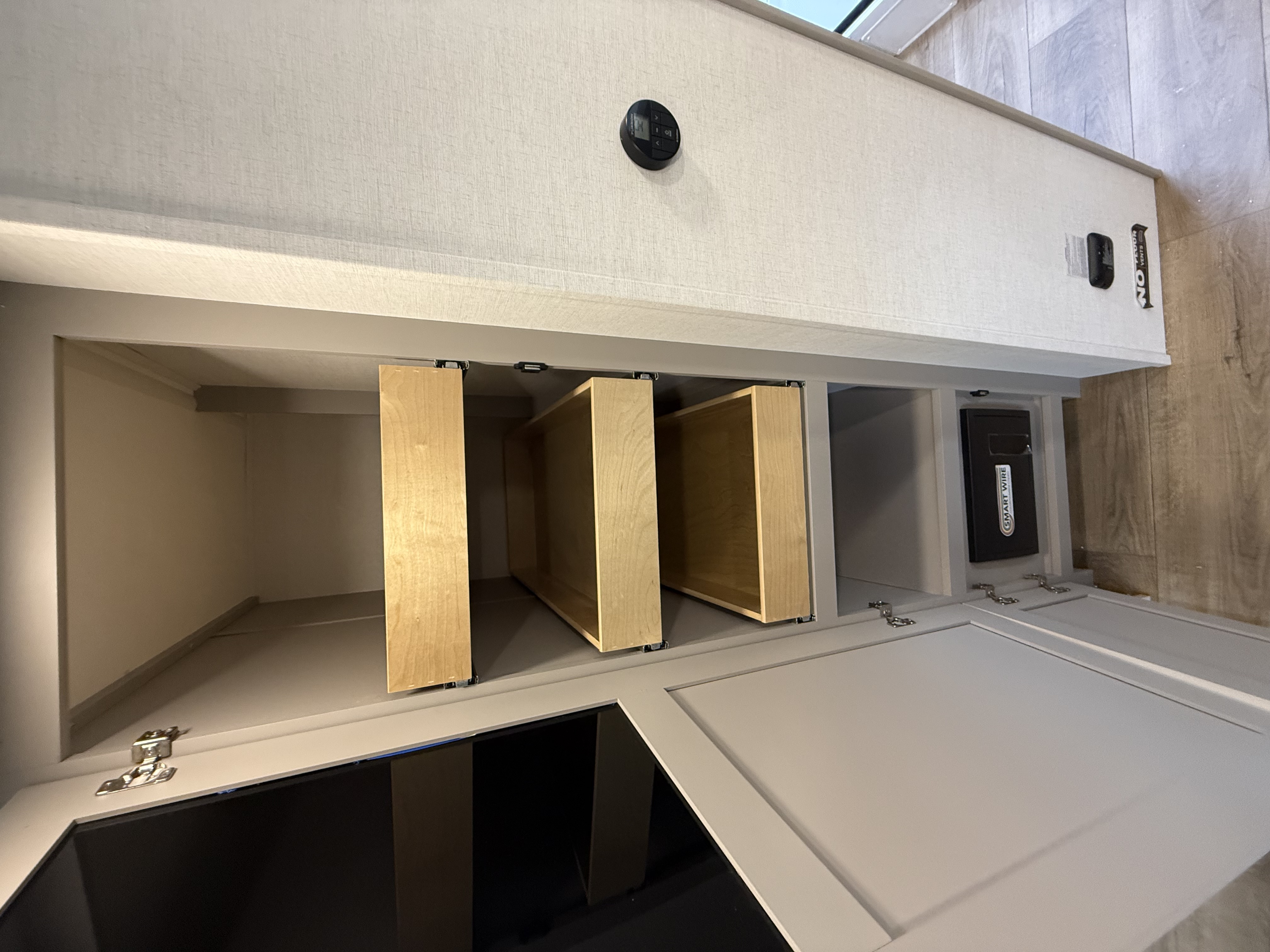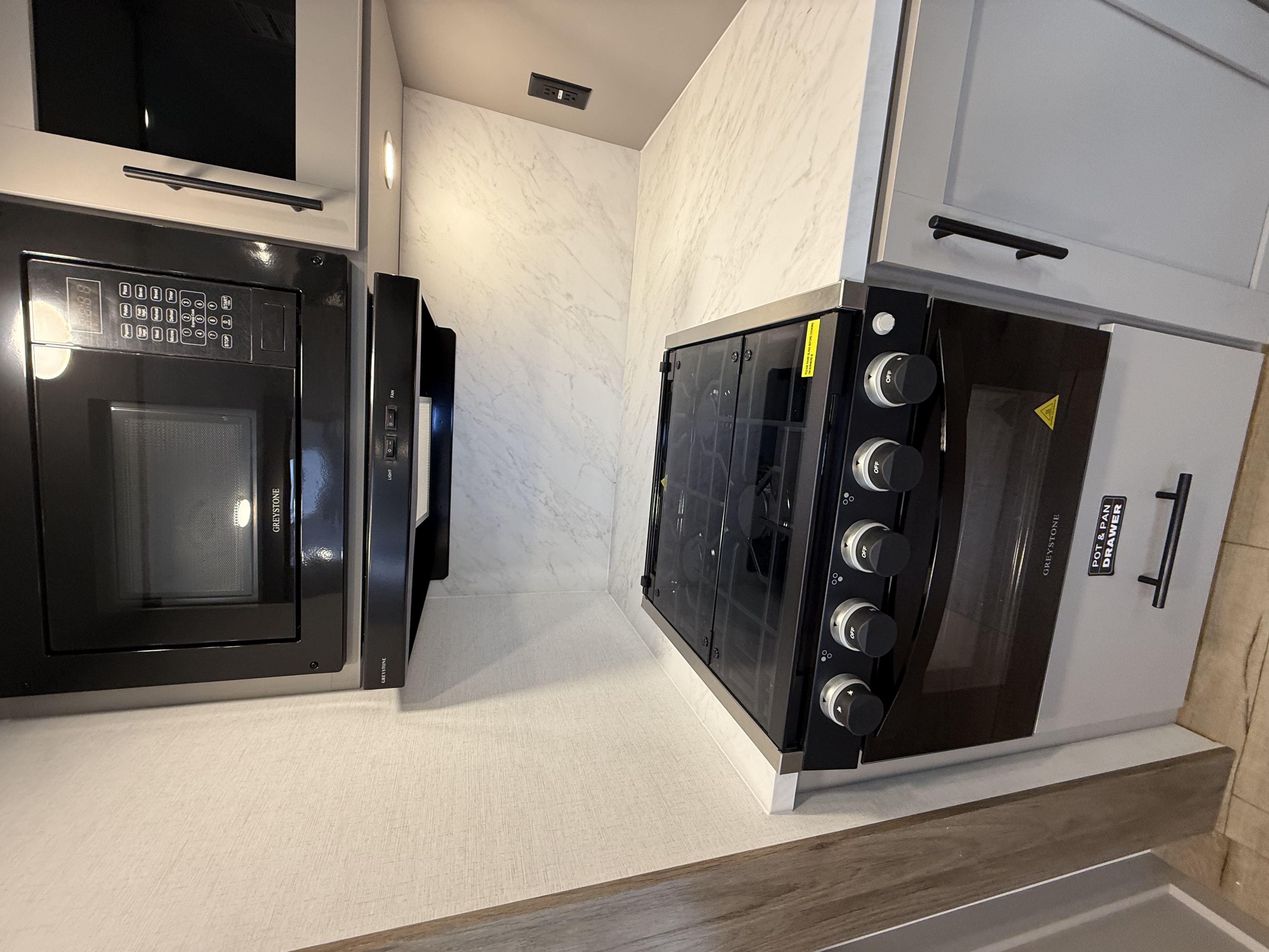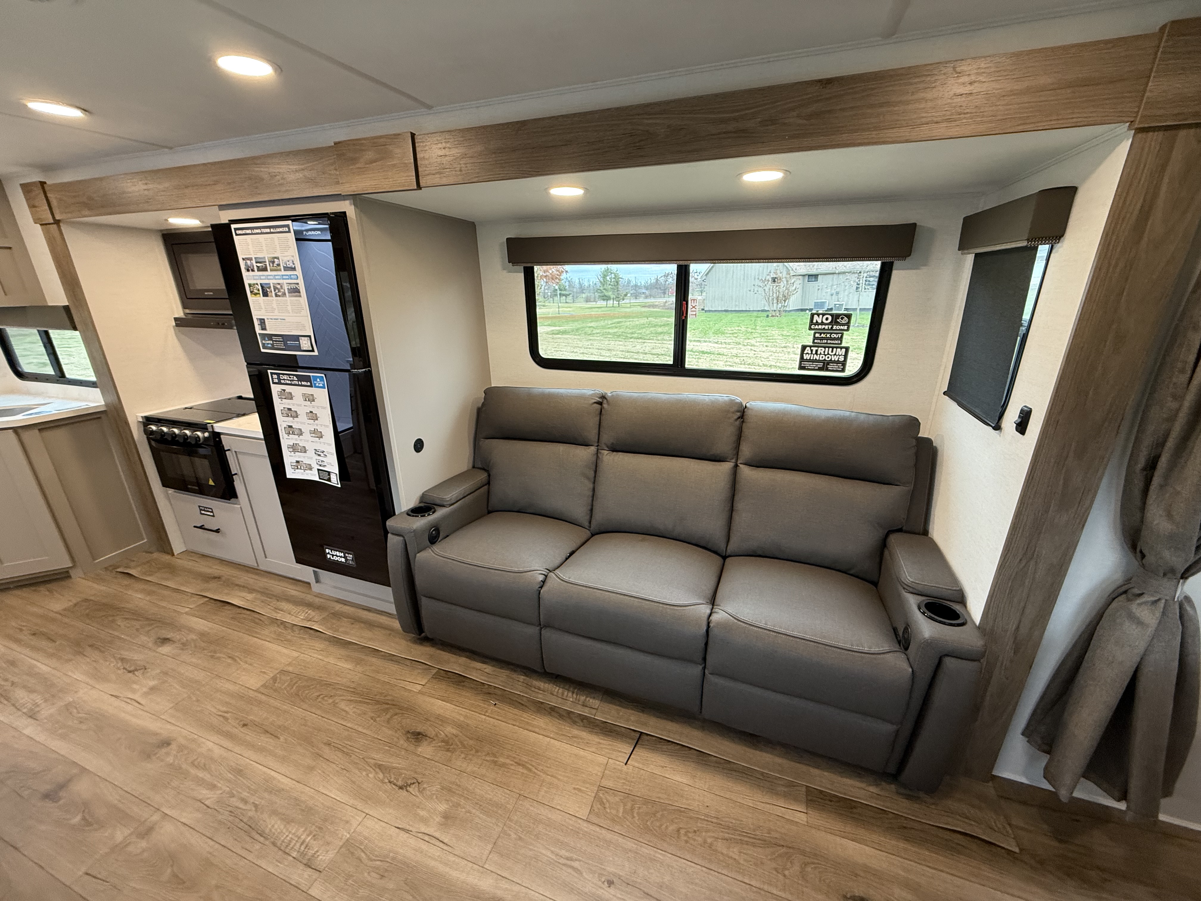 - Functional Kitchen: Equipped with a 10 cu. ft. 12-volt refrigerator, a pull-out pantry, and ample overhead storage for all your cooking essentials.