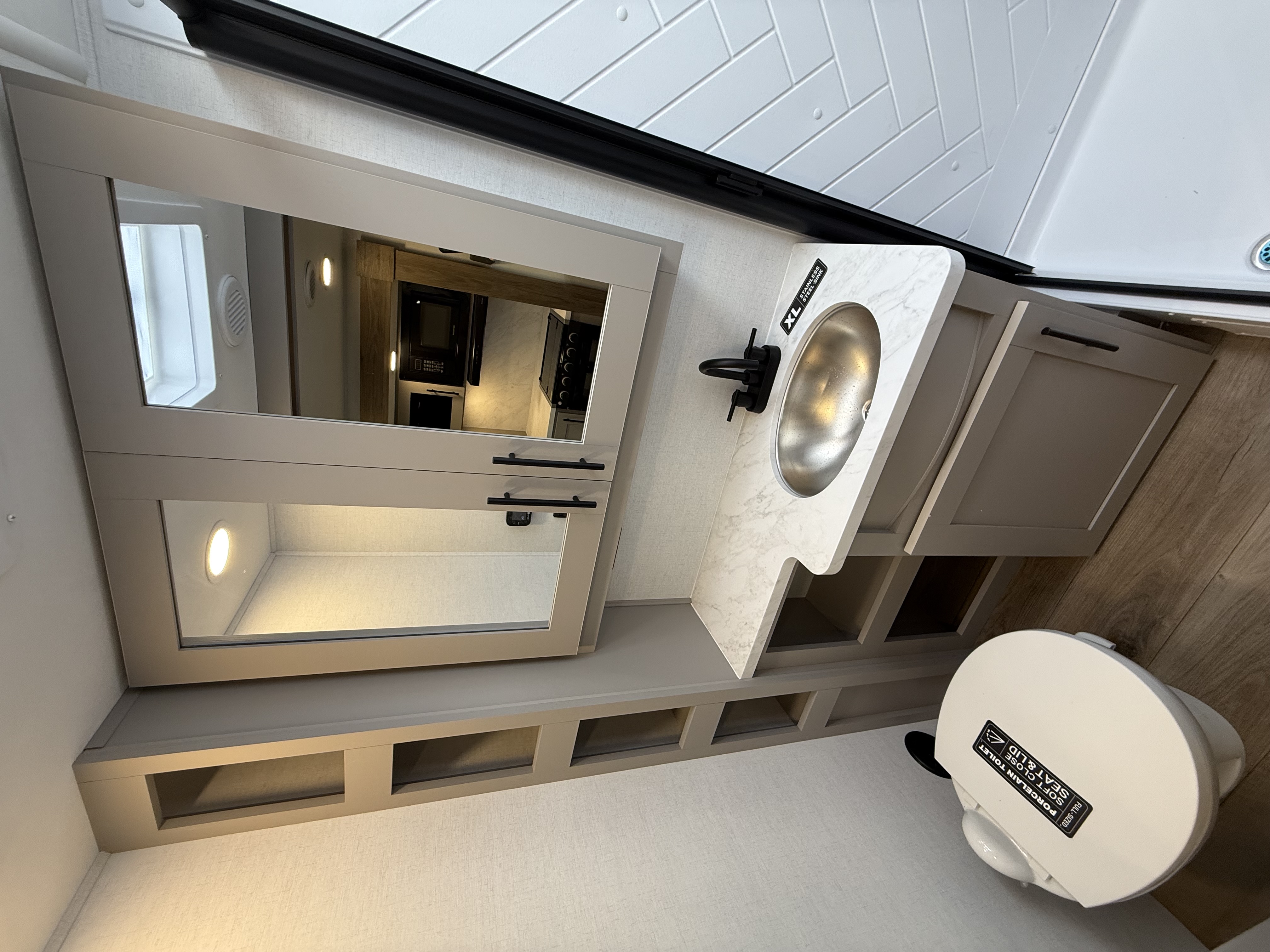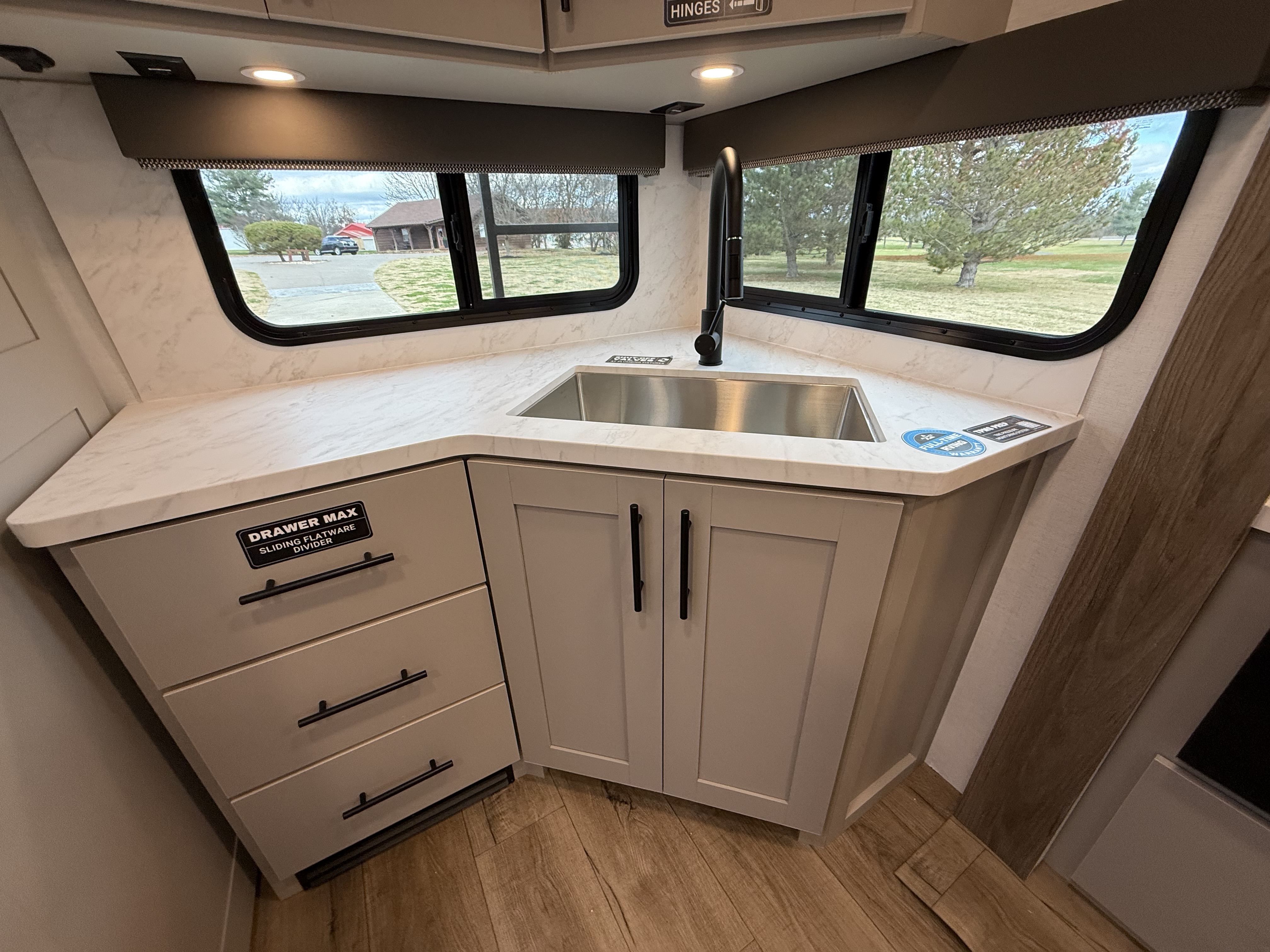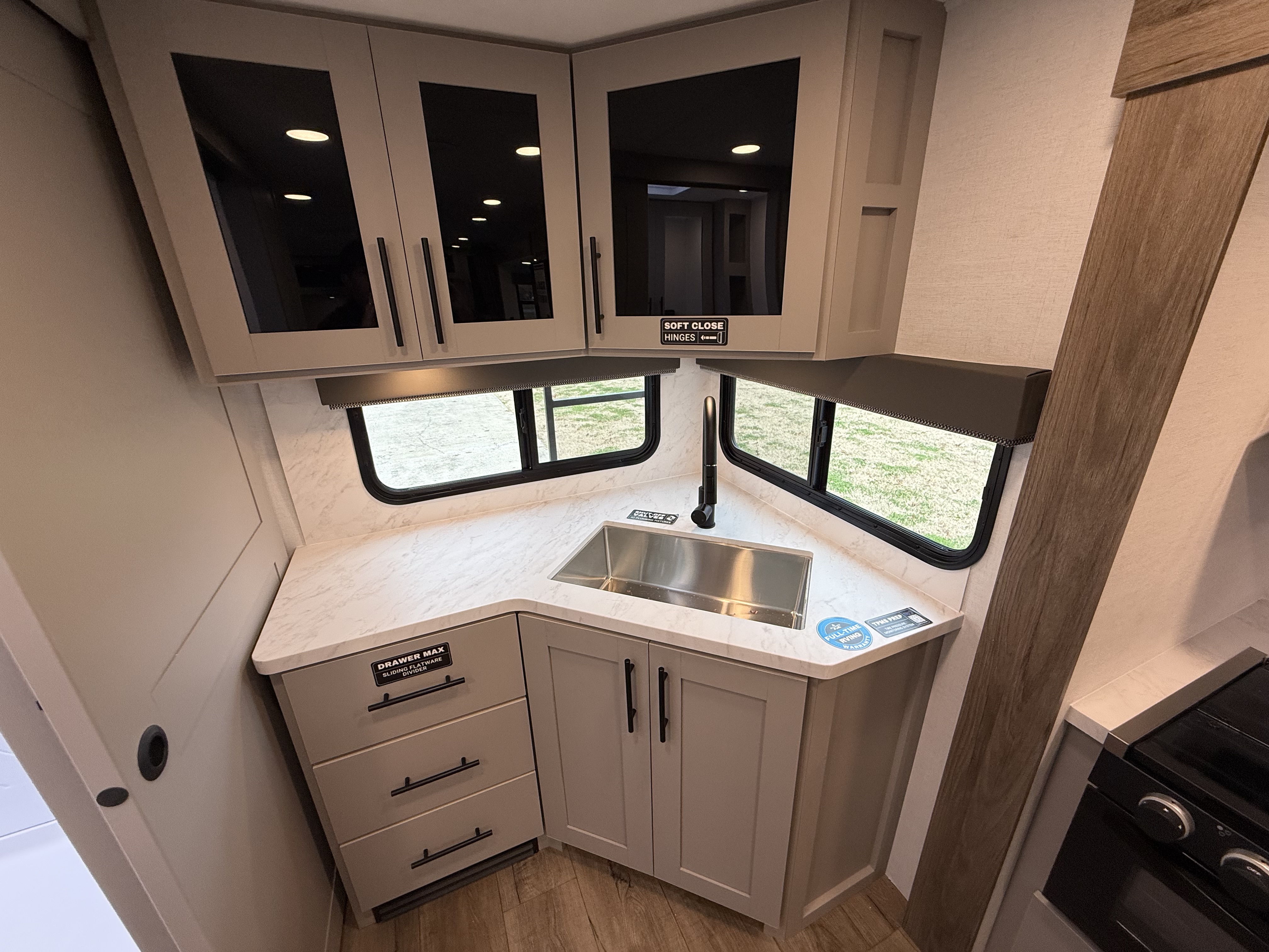 - Functional Kitchen: Equipped with a 10 cu. ft. 12-volt refrigerator, a pull-out pantry, and ample overhead storage for all your cooking essentials.