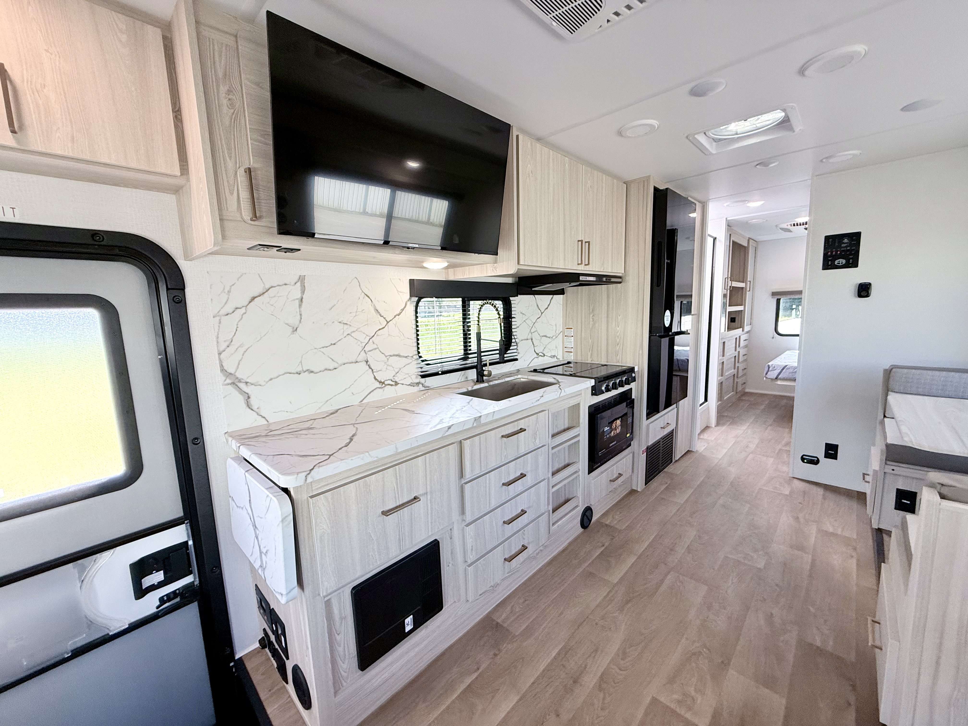 Automatic leveling, 2 Roof AC units, theater seating, and much more.