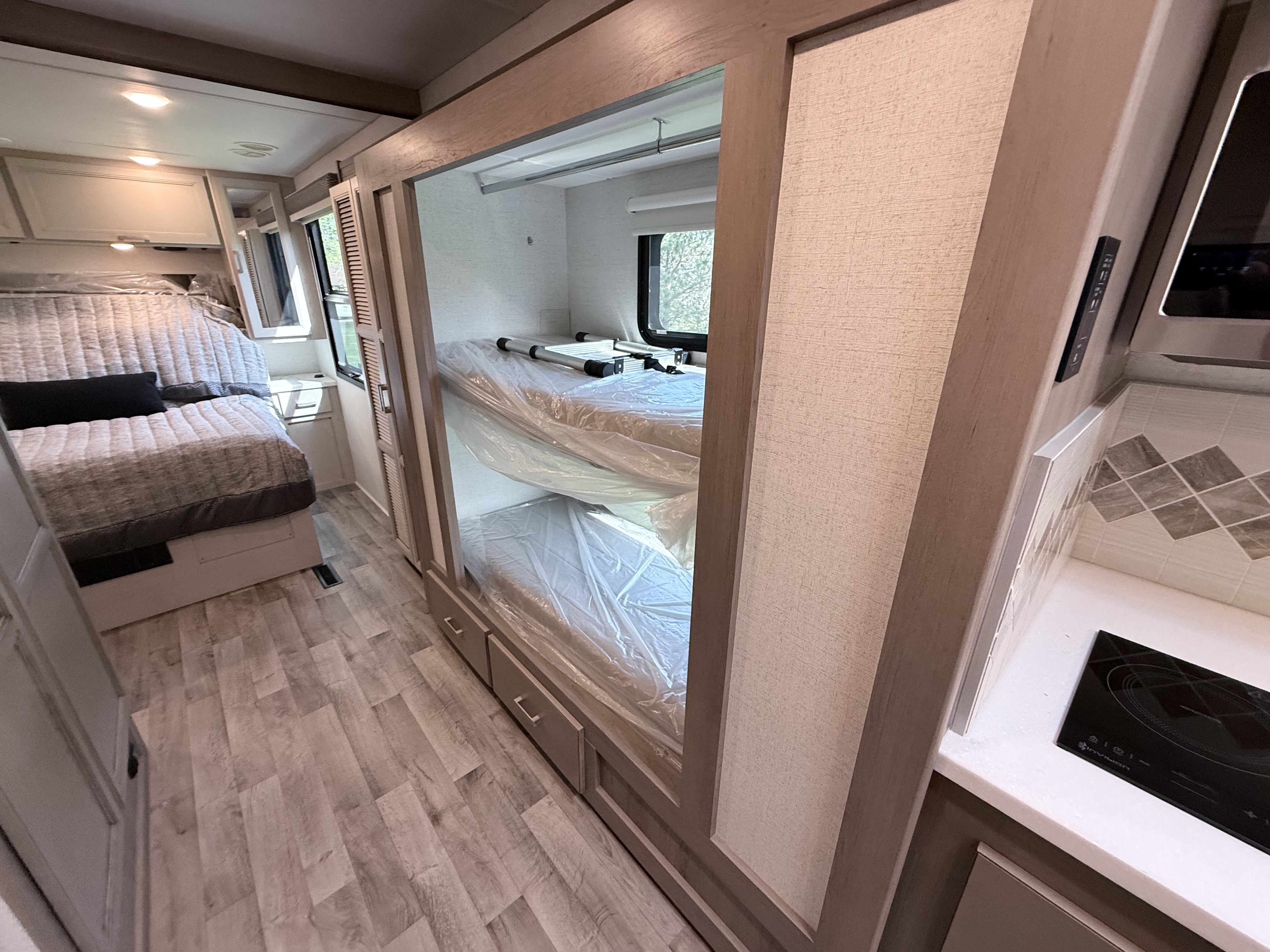 42" LED SMART TV in Living Area | 32 in LED SMART TV in Bedroom | Exterior 40 in LED TV on Swivel Bracket with Soundbar with Bluetooth® | TV Prep and USB Charge Port In Bunk Beds