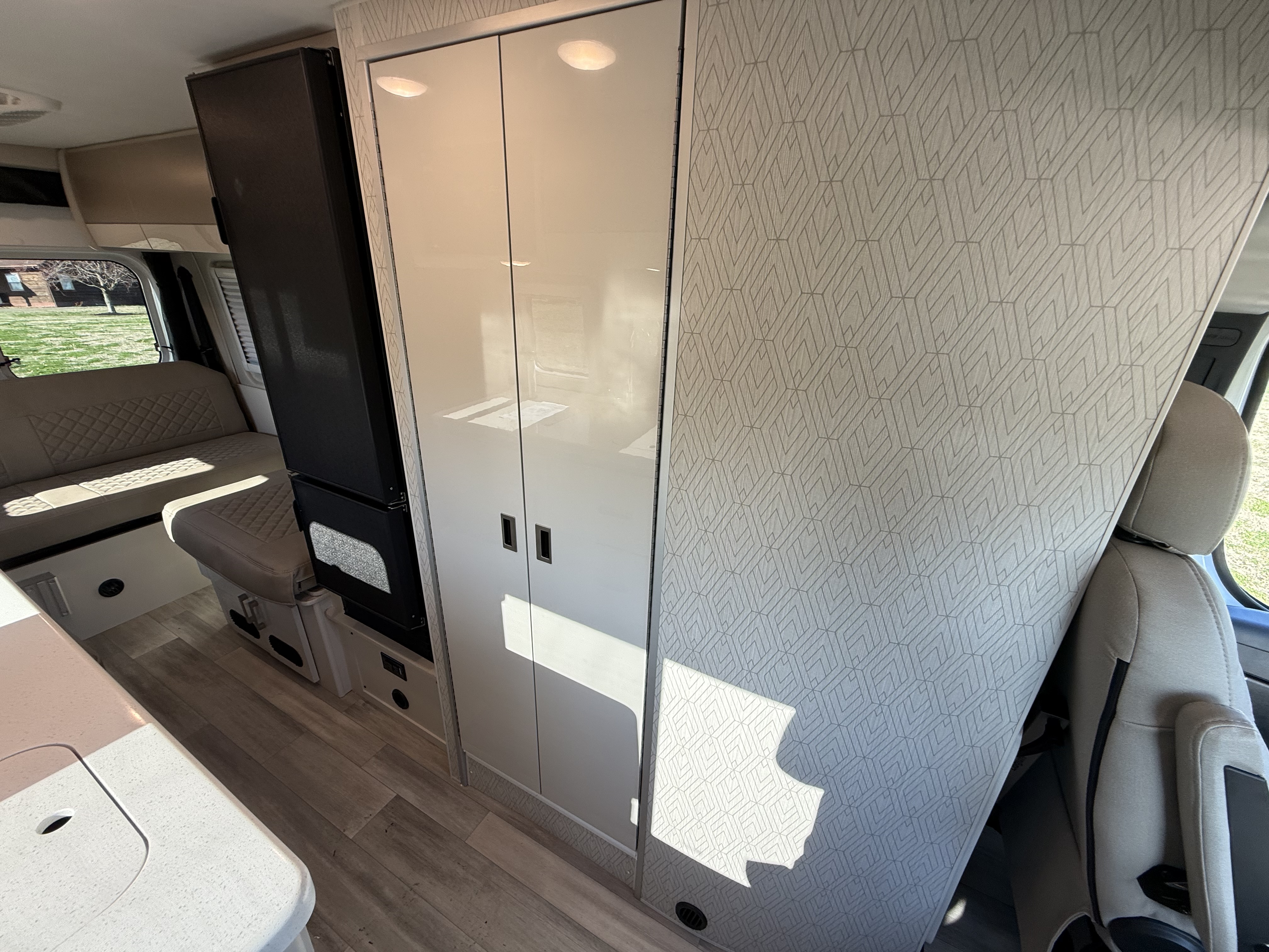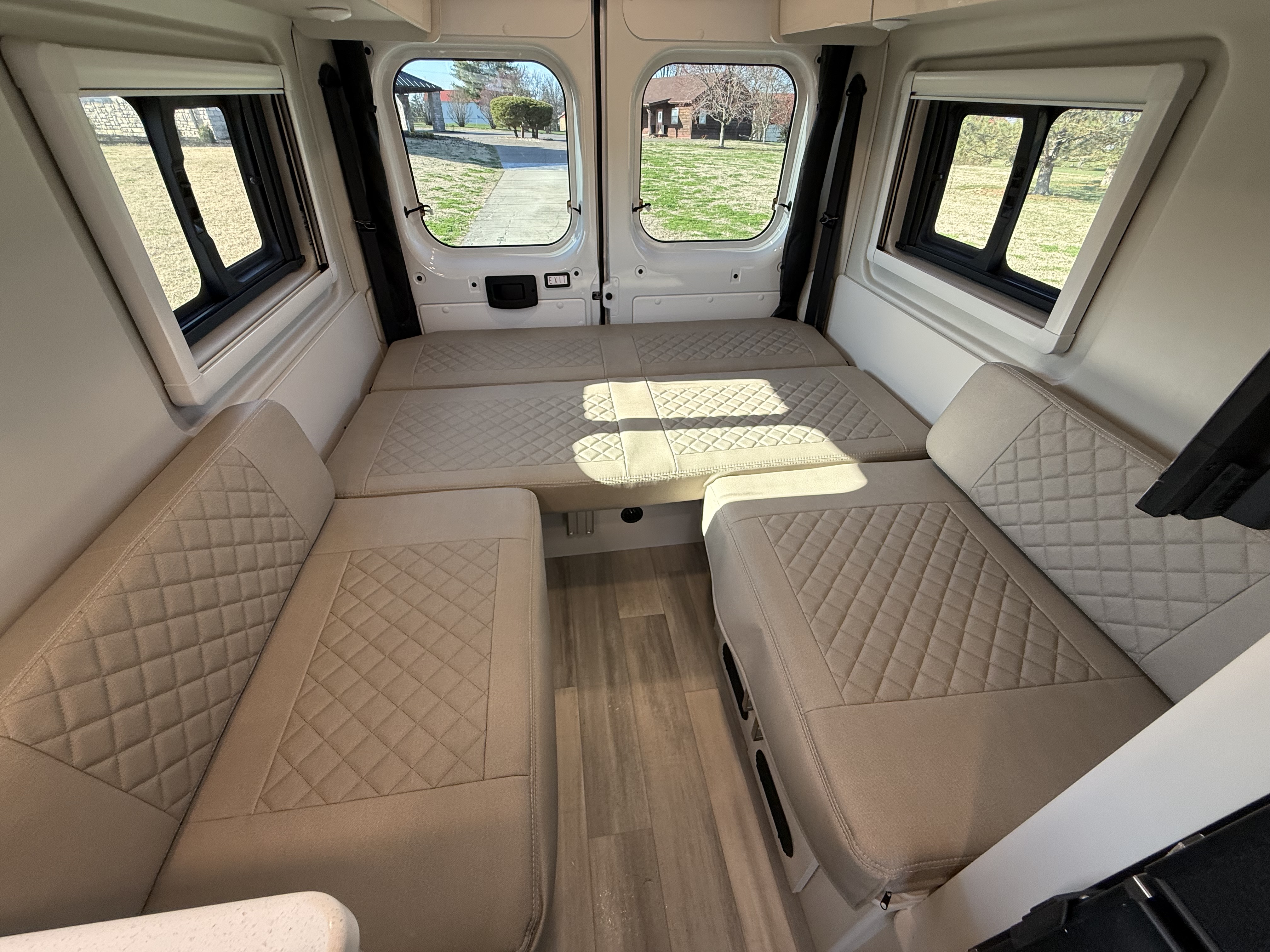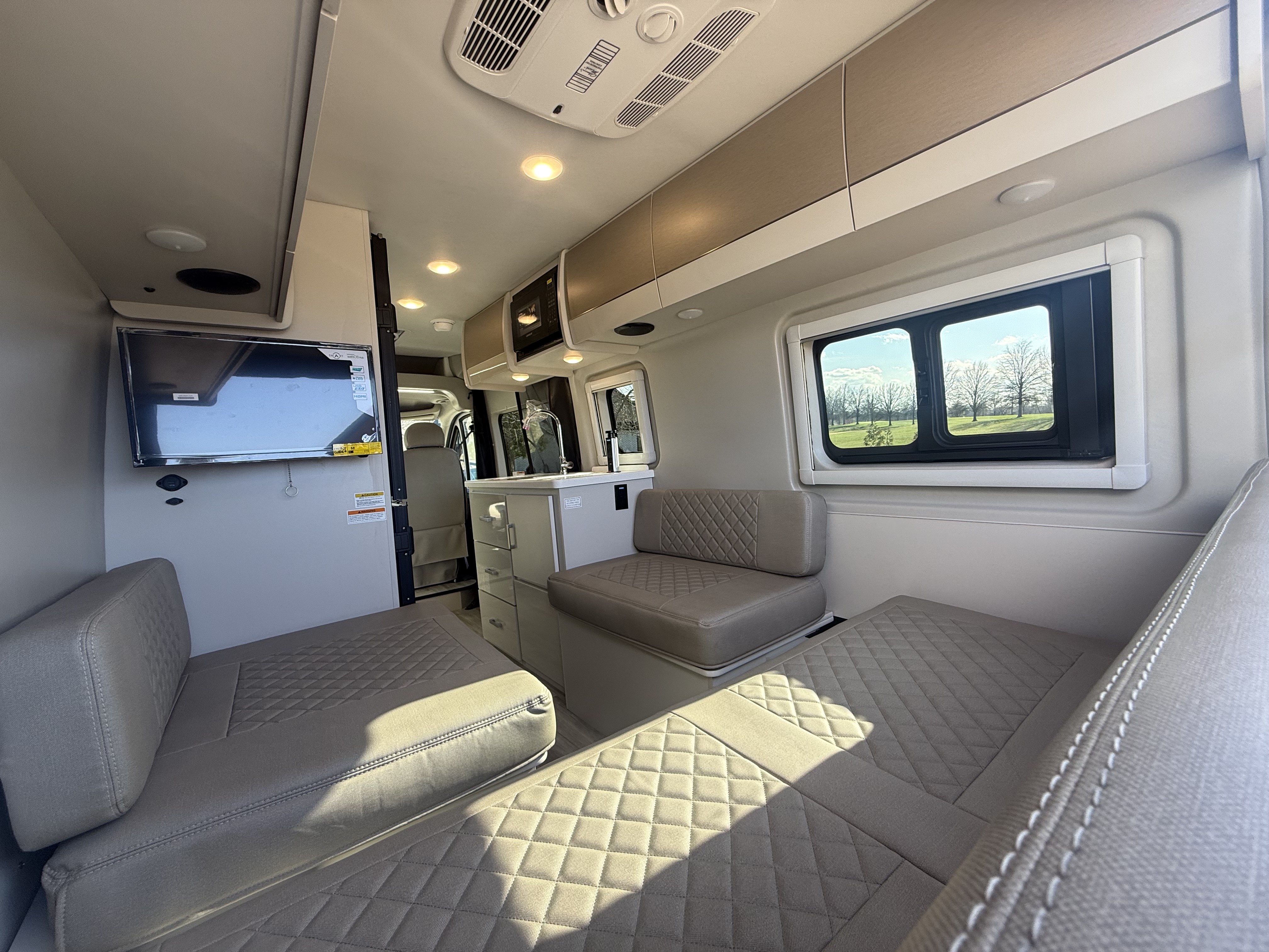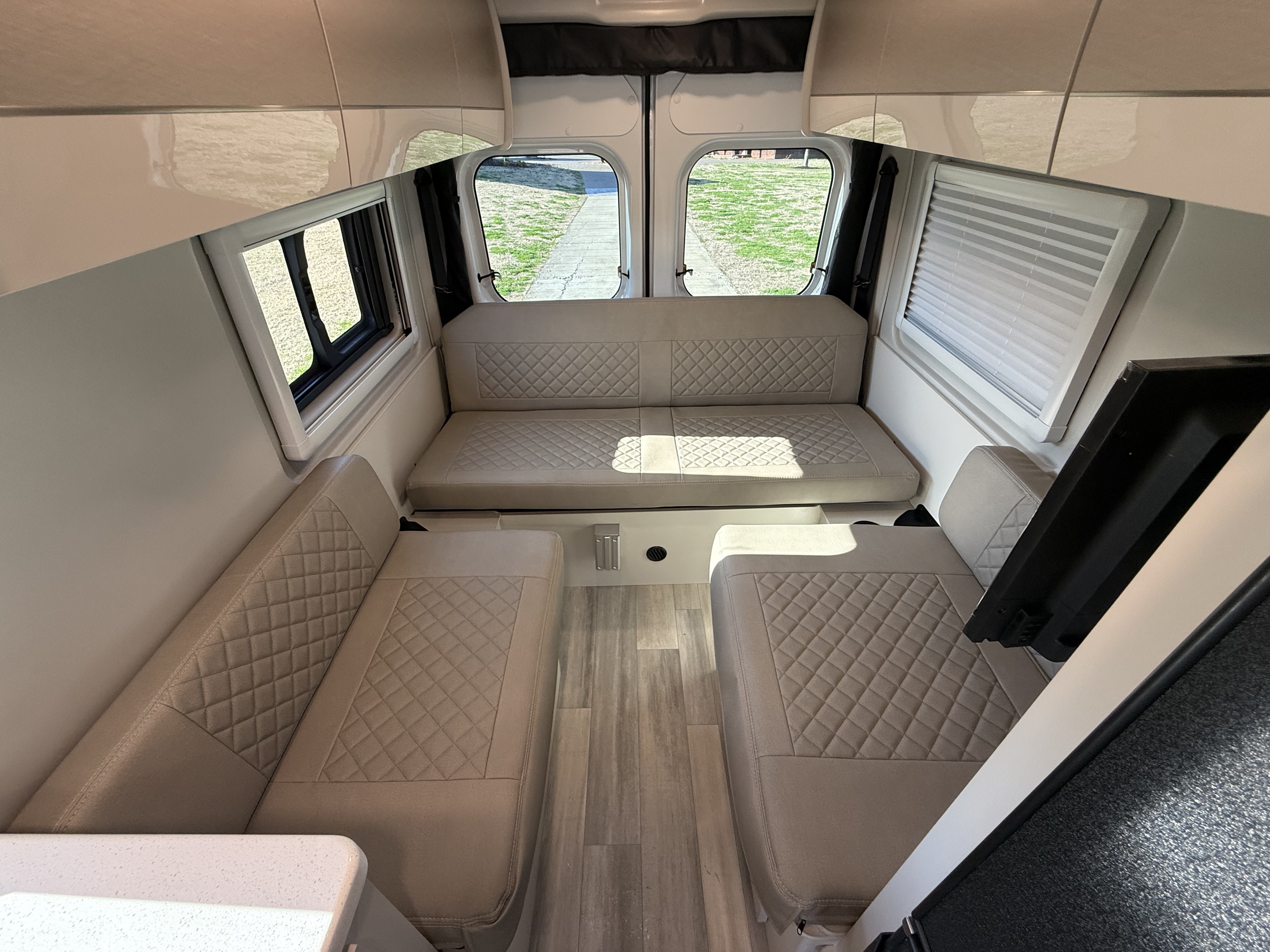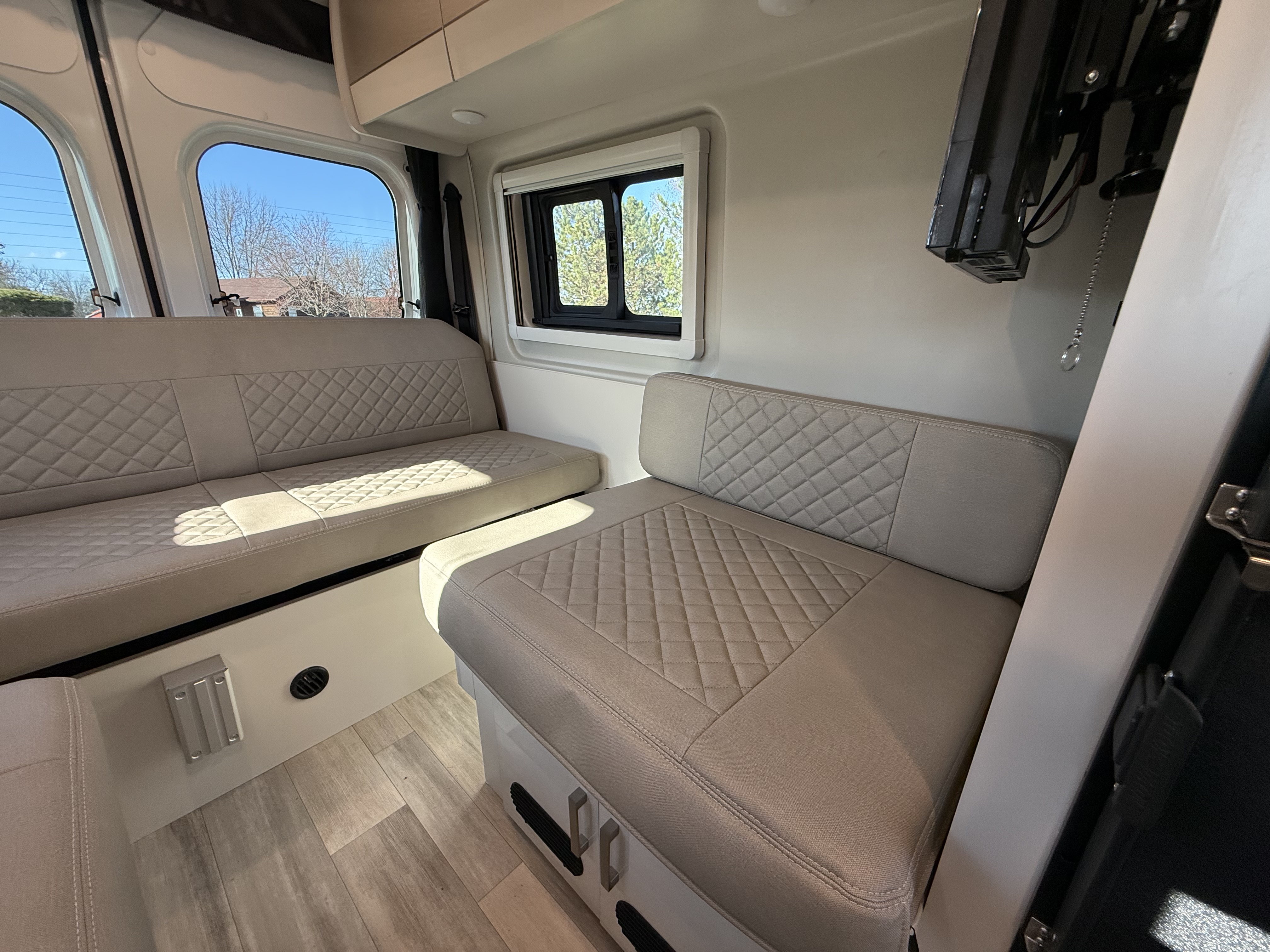 - Step into the Sequence® camper van and enjoy a modern, functional space. Sleek upper cabinets offer plenty of room for your gear, while bench-style seating easily converts into a bed for restful nights. Swiveling captain’s chairs add to the living area when parked, while the privacy shades help block out light when you want to sleep in. Manage lighting, climate, tank heaters, the generator, and more from the touchscreen or a connected device thanks to the Rapid Camp+® system by Firefly Integrations.