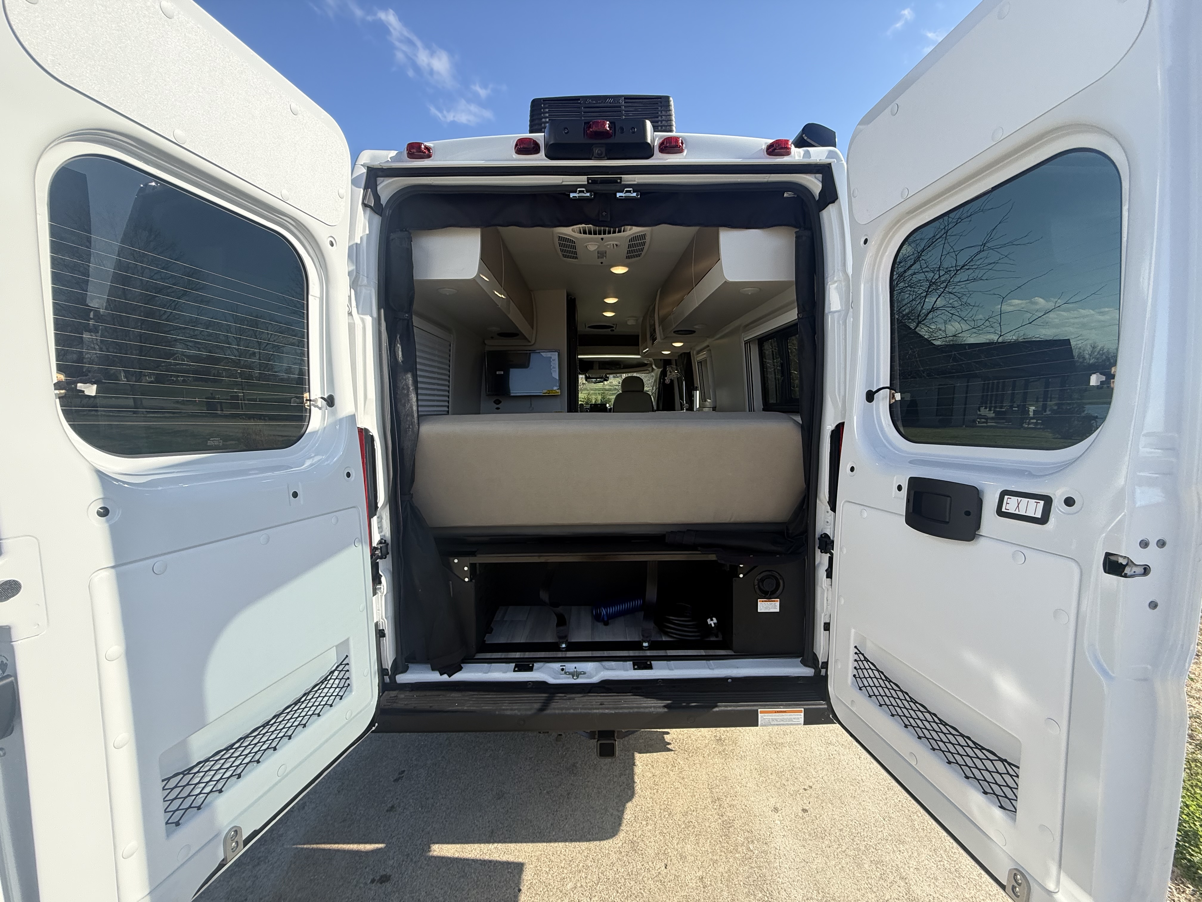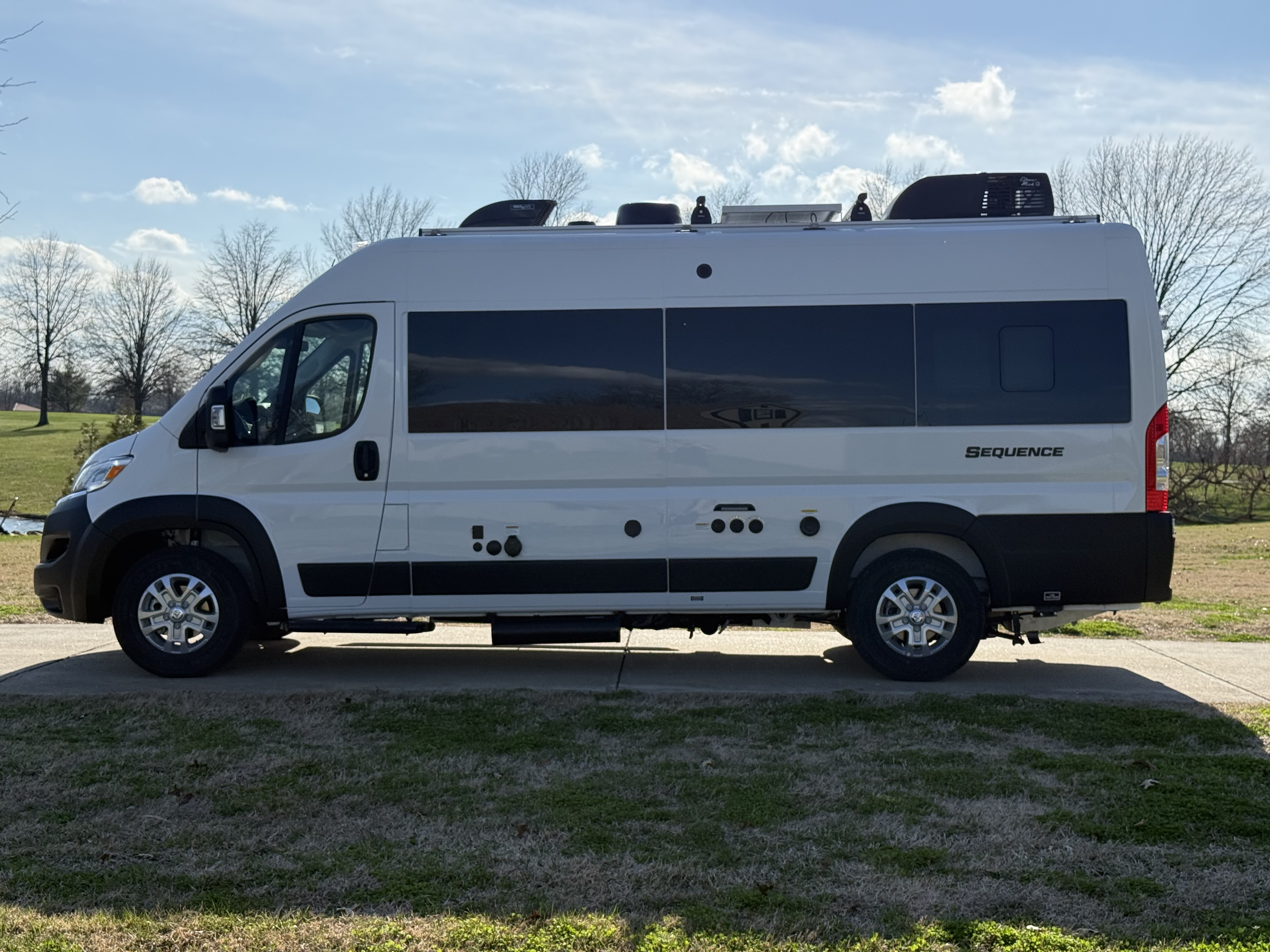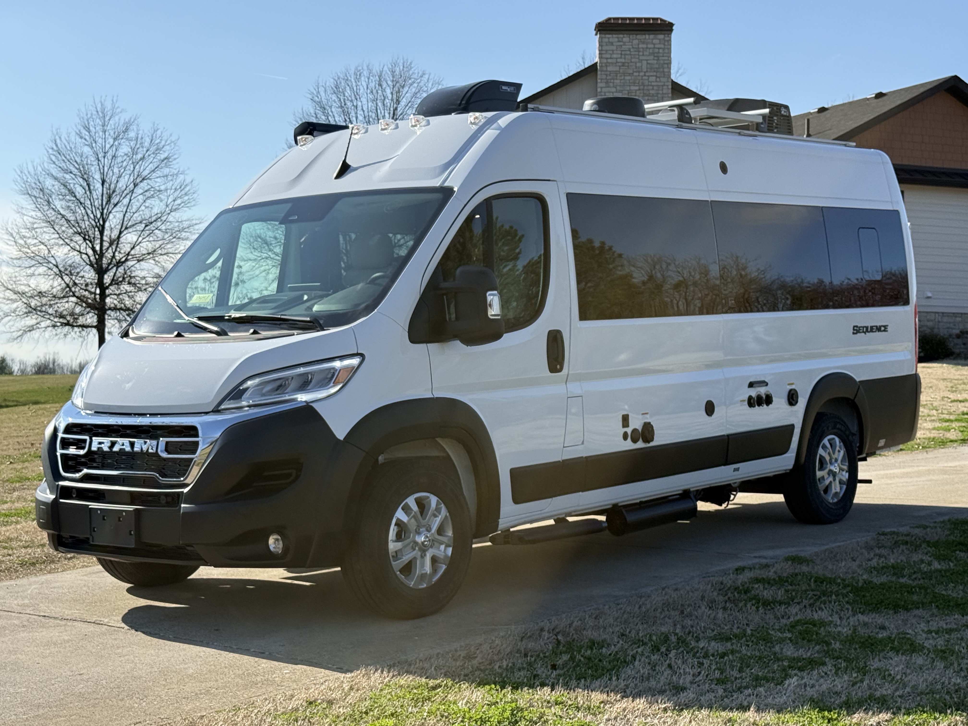- Kick off your next adventure in the Sequence®, built on the Ram ProMaster® 3500 XT window van chassis. Drive confidently with advanced safety features like attention assist, traffic sign assist, active lane keeping assist, and blind spot assist. Haul your gear using the 5,000-pound hitch, perfect for towing bikes or a small trailer, depending on your load. Enjoy modern conveniences like a keyless entry system, a digital rearview mirror, a backup camera, sleek aluminum wheels, and optional off-road tires and black rims.