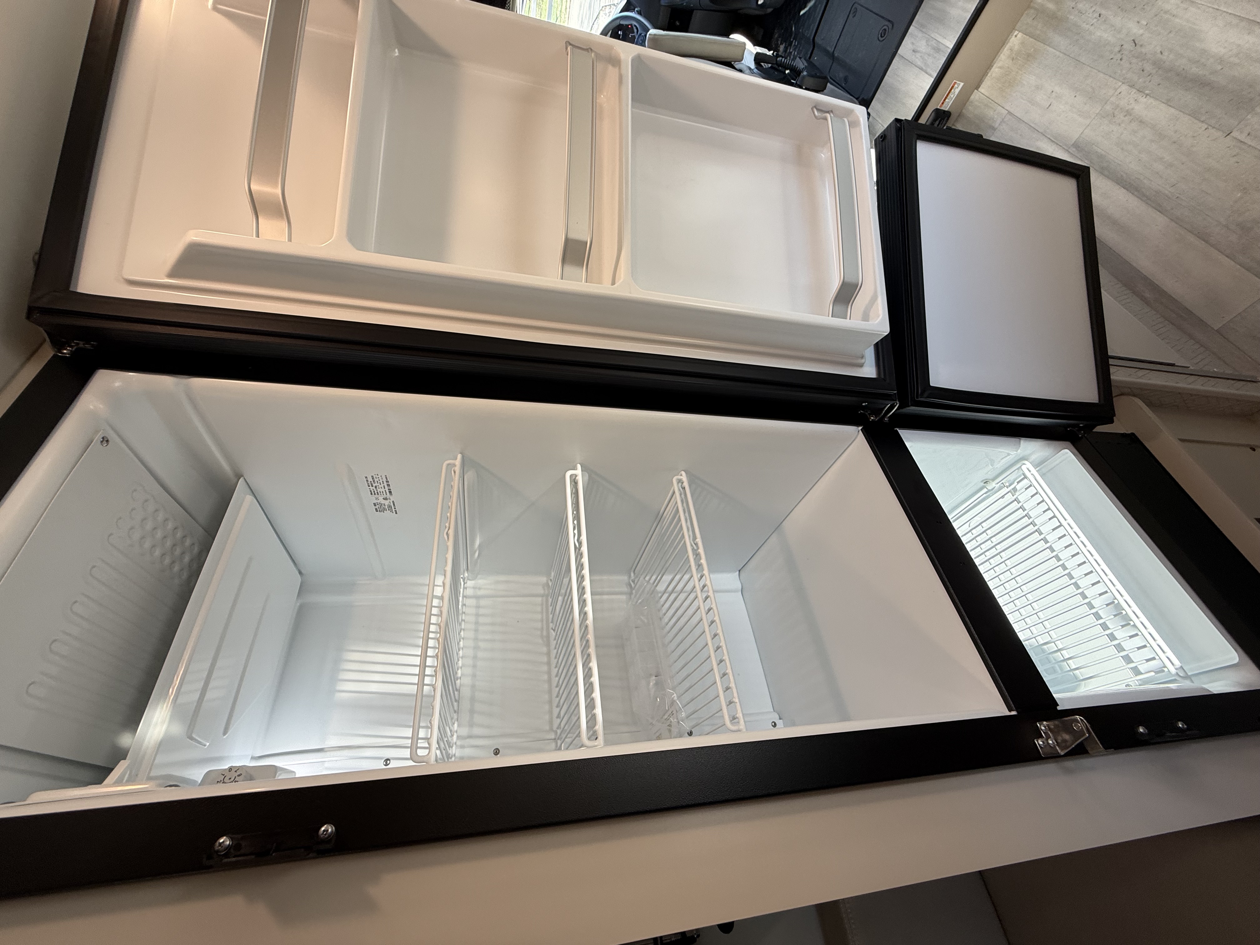 - Cook delicious meals on the road in the Sequence® camper van’s well-equipped kitchen, featuring a single-burner induction cooktop. Keep your ingredients fresh thanks to the 12-volt single-door fridge in the 20L and 20LS floor plans or pick between the 20U, 20Y, 20US, and 20YS if you prefer a double-door refrigerator. Warm up leftovers in the microwave and quickly rinse off dishes in the stainless-steel single-bowl sink. If you need to power up a coffee maker or blender, use the pop-up outlet on the countertop.