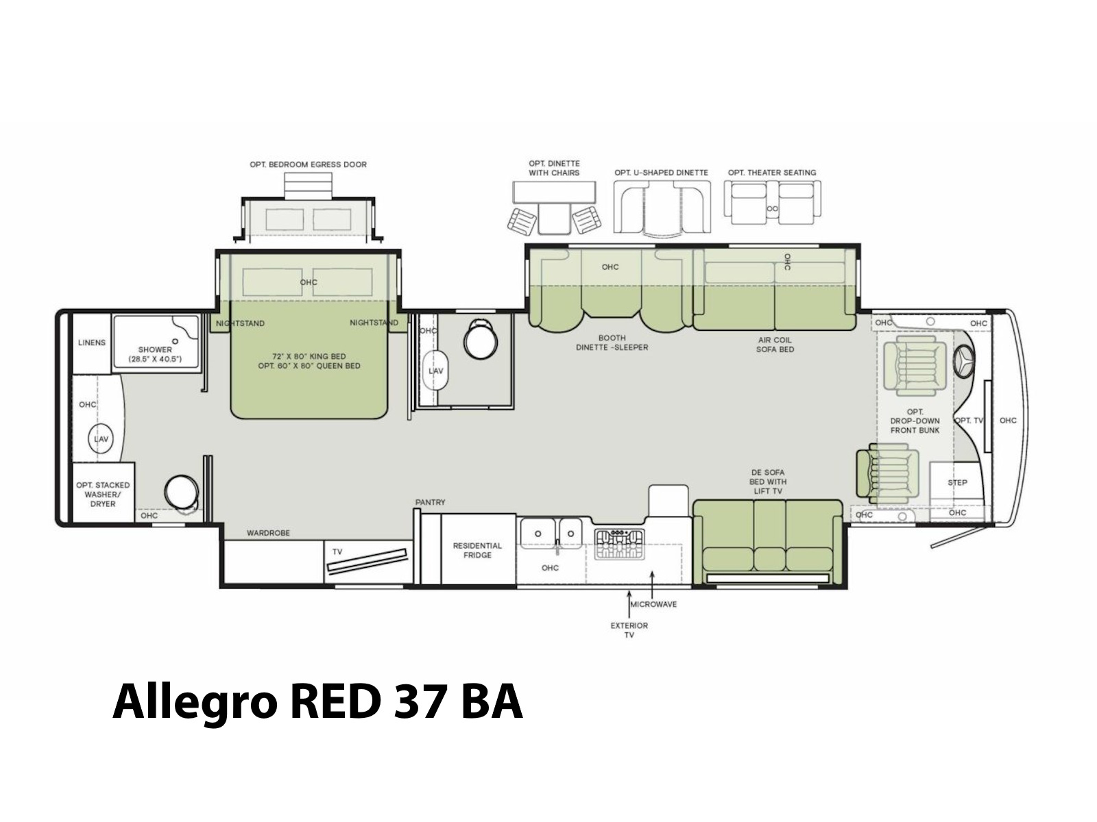 Upgrade to the power of a diesel! The Allegro Red delivers the quiet, air-ride comfort you dream of, packaged in a coach that is built to last for generations.