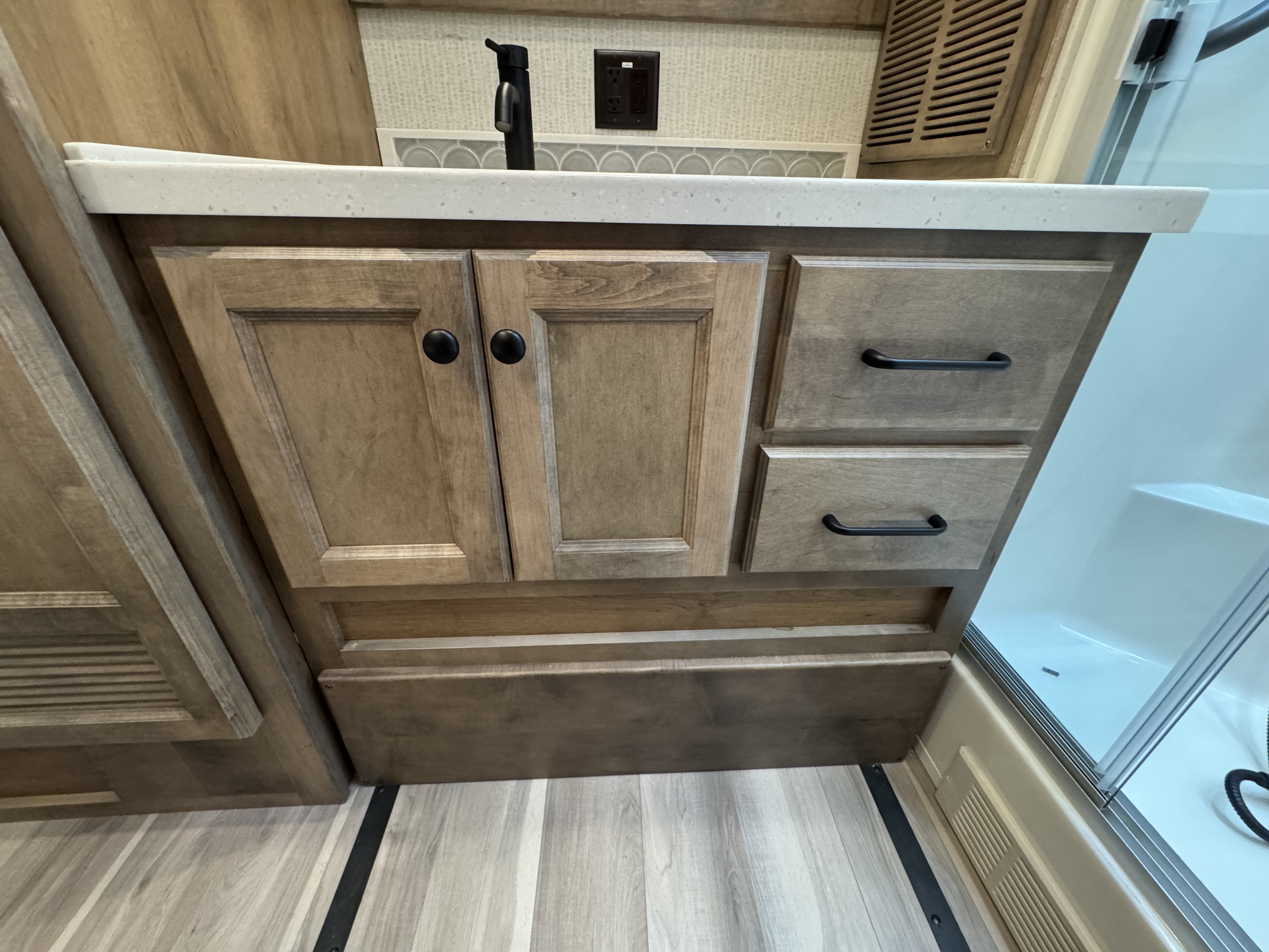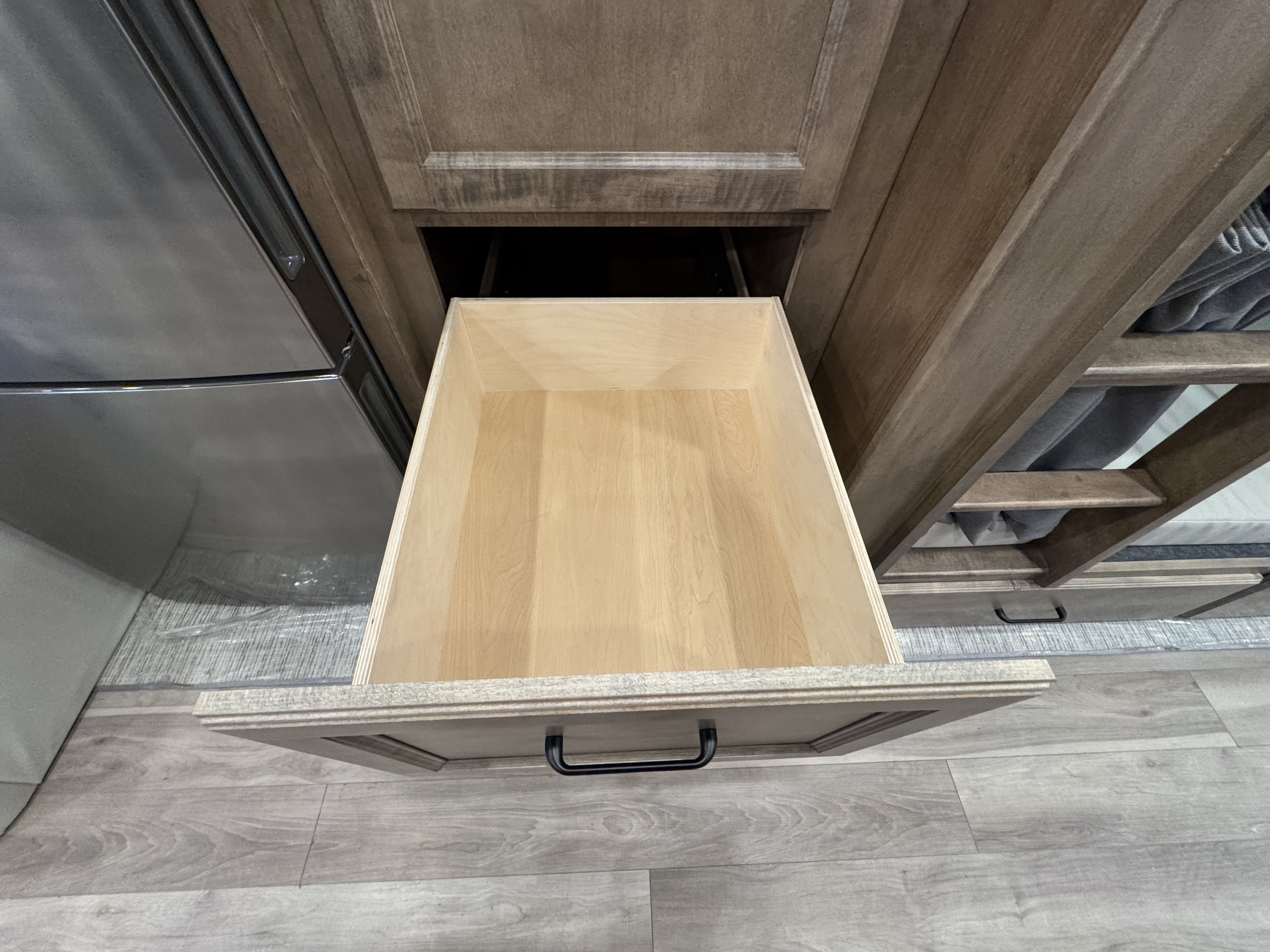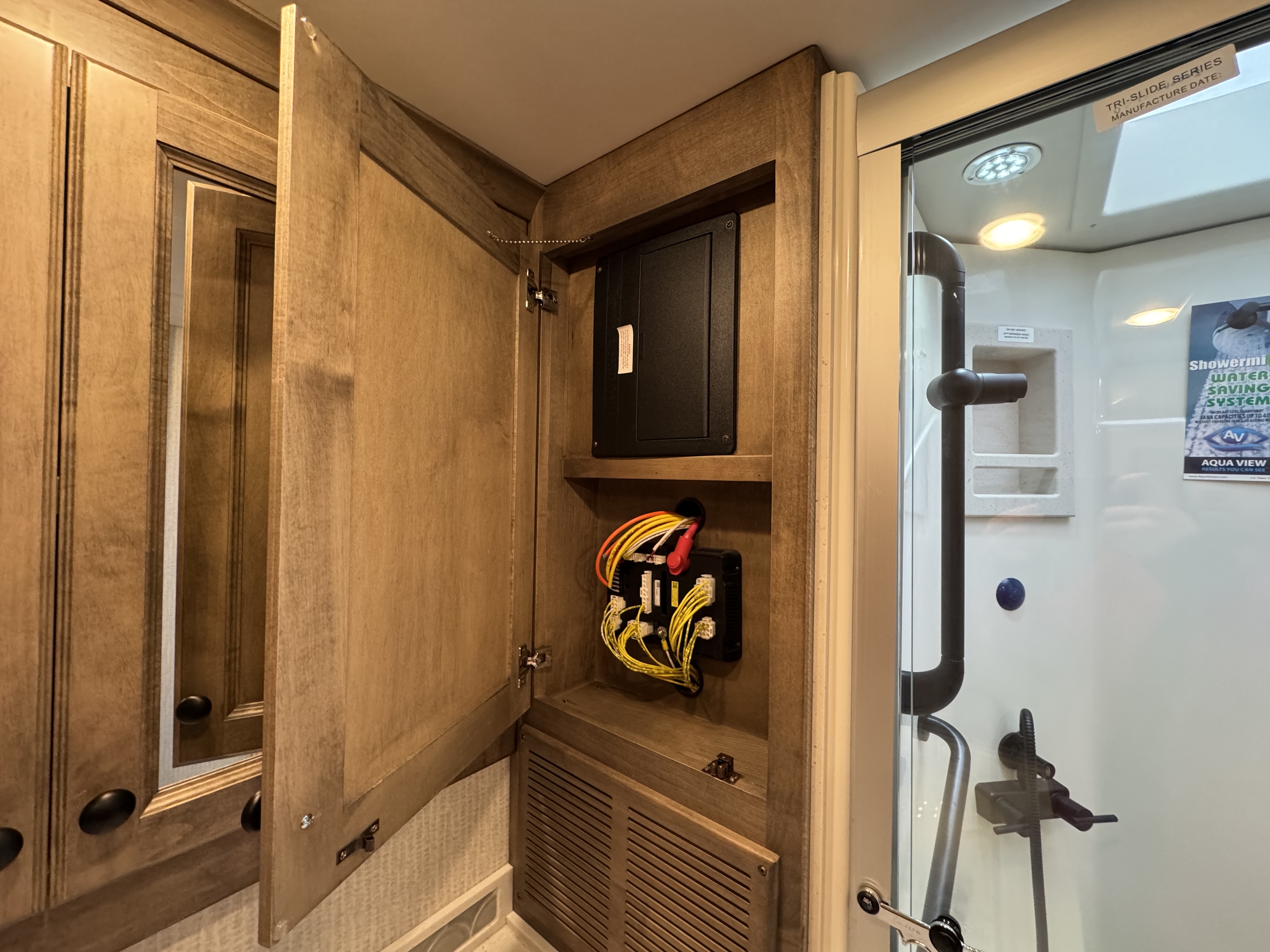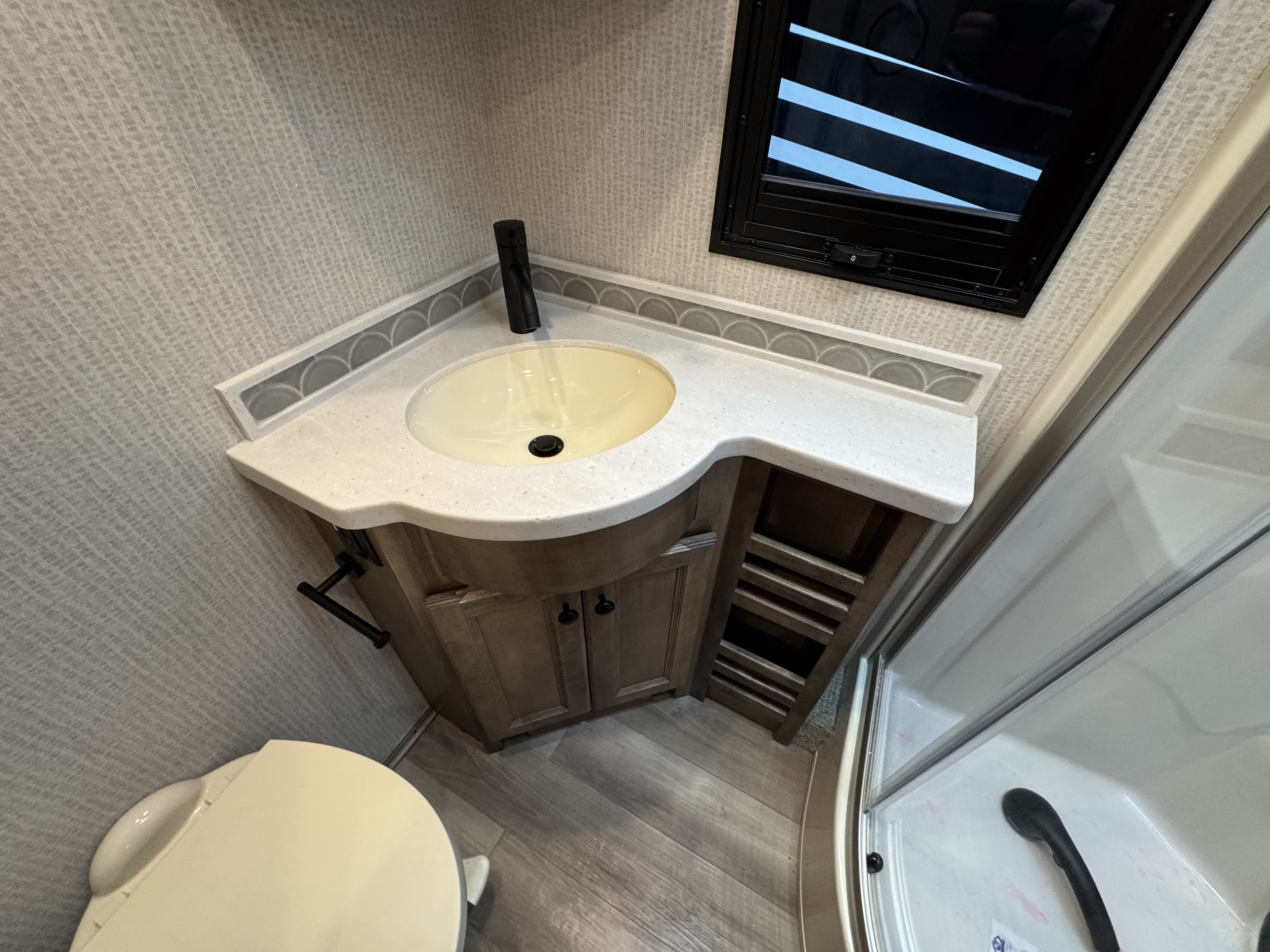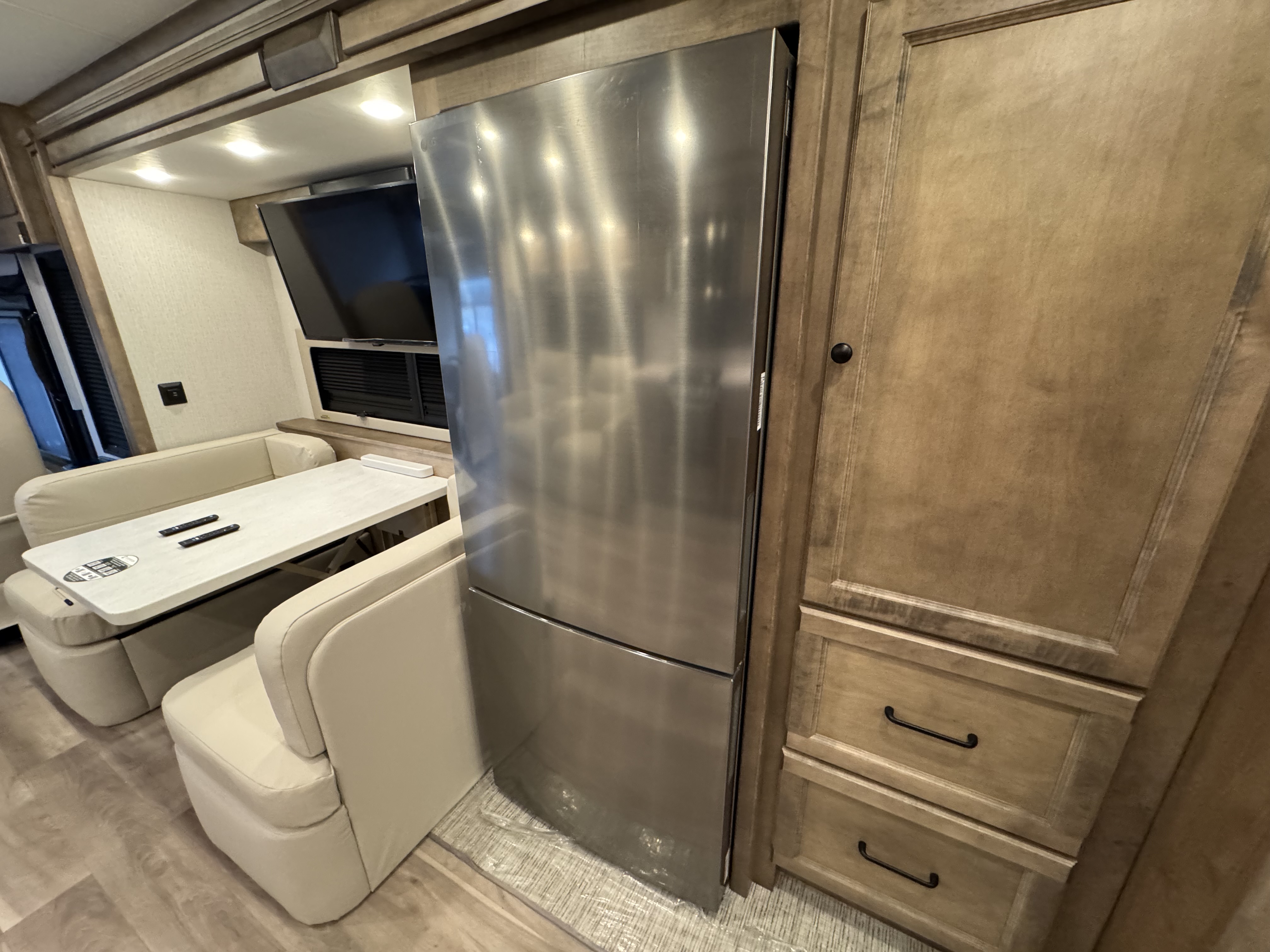 The 2026 Byway 38 BL makes an immediate impression with its sophisticated "Frosted Granite" full-body paint, setting a tone of modern elegance that matches the smooth performance of the Freightliner XCS chassis underneath. You will appreciate the serenity of the Air Ride suspension and Air Brakes, which turn every highway into a gliding experience, while the 340 HP Cummins engine provides the reliable power you need to travel with confidence. Inside, the luxury continues with Tiffin’s signature handcrafted cabinetry and Ultraleather furniture, all kept comfortable by the instant, endless hot water from the Truma AquaGo system and a layout designed for effortless living.