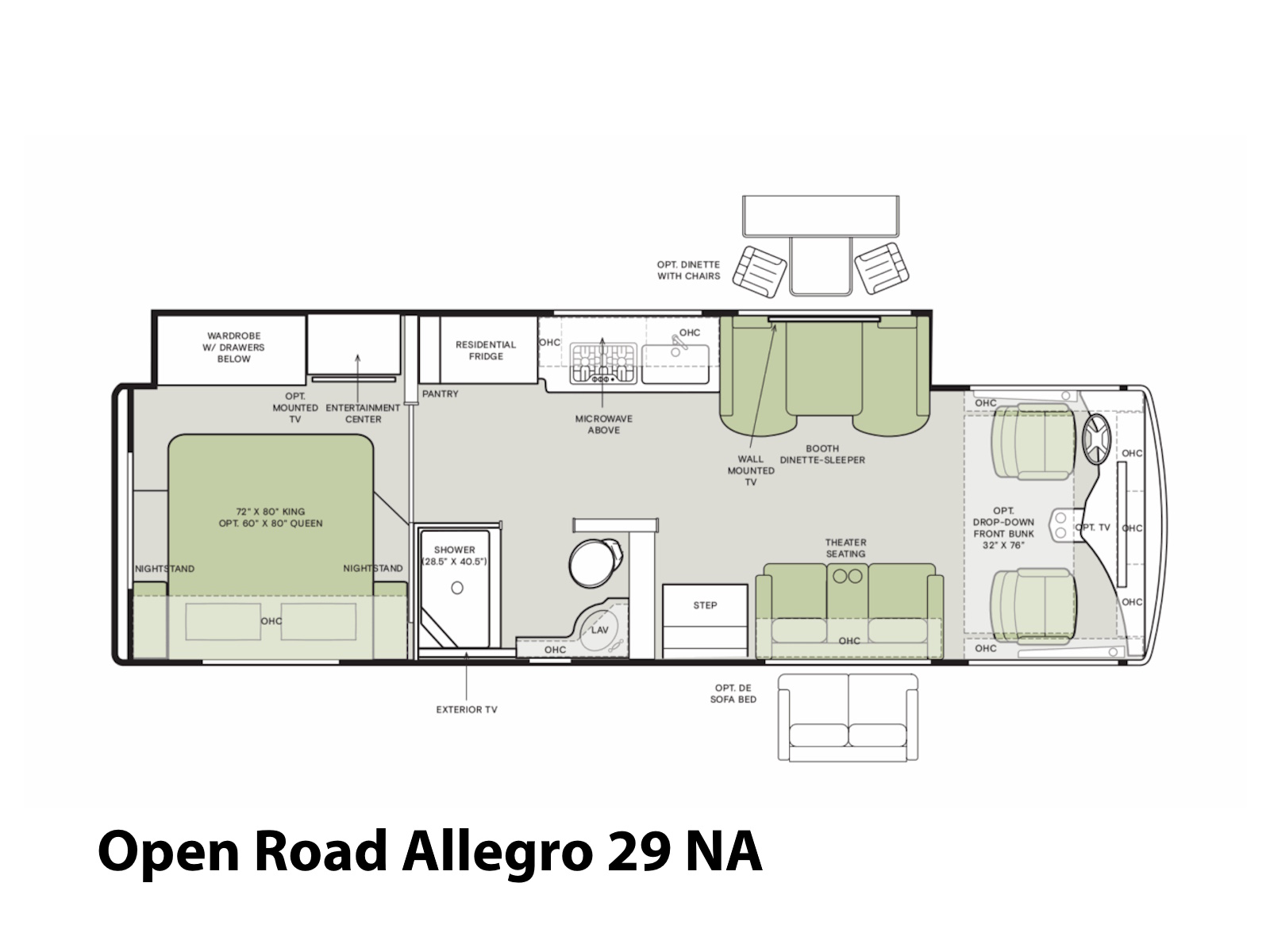 The 2026 Open Road Allegro 29 NA distinguishes itself with the sophisticated "Frosted Granite" Gen 12 exterior, creating a modern presence that perfectly complements its agile 33-foot stature. This compact footprint grants you access to exclusive state and national parks, yet the interior defies its size by offering a massive King memory foam bed and a handcrafted solid wood interior that feels incredibly generous. Powered by the dependable Ford 7.3L V8 engine and supported by a 5.5 kW Onan generator, it ensures you have the performance and independence to travel wherever your curiosity leads.