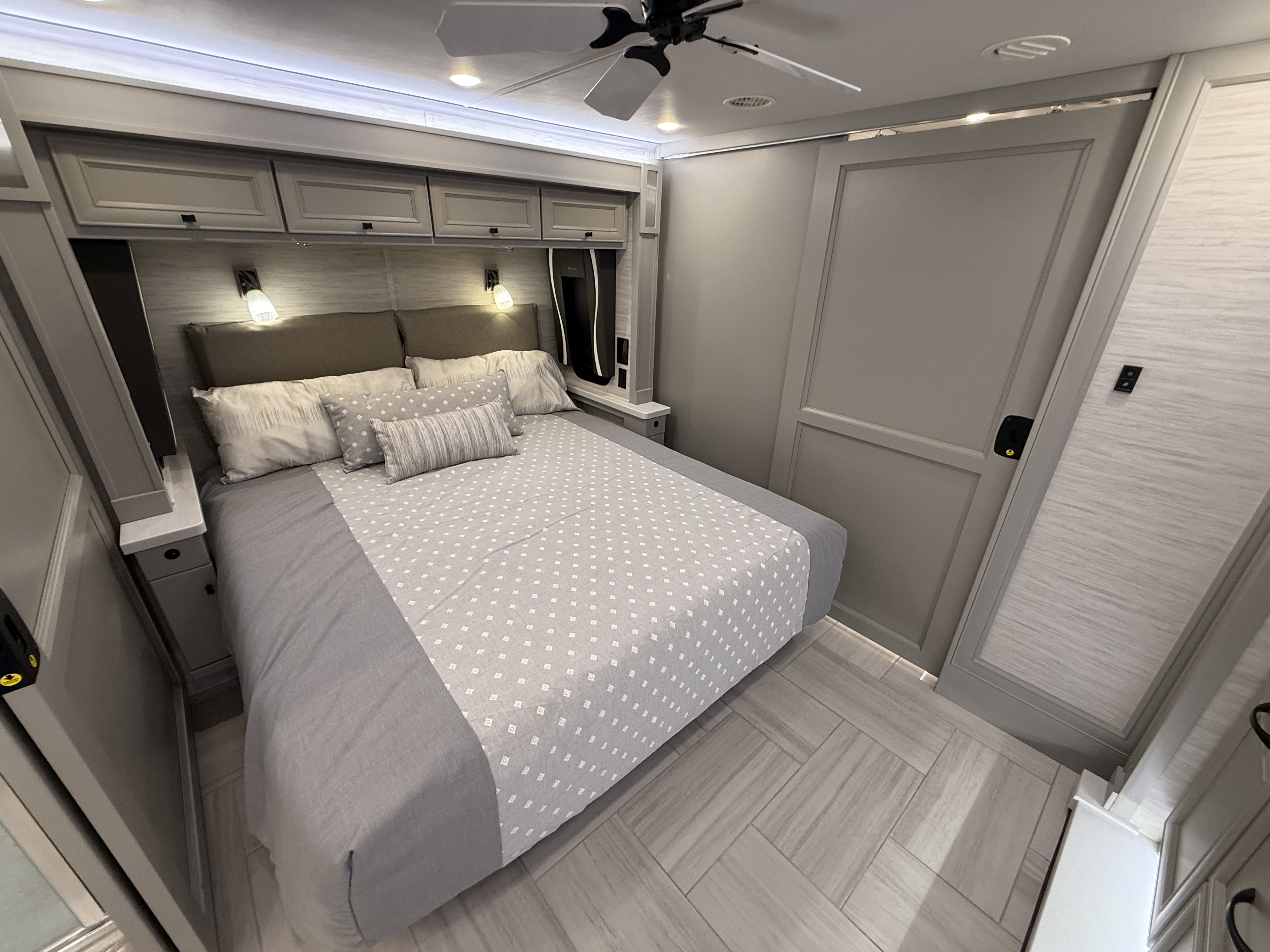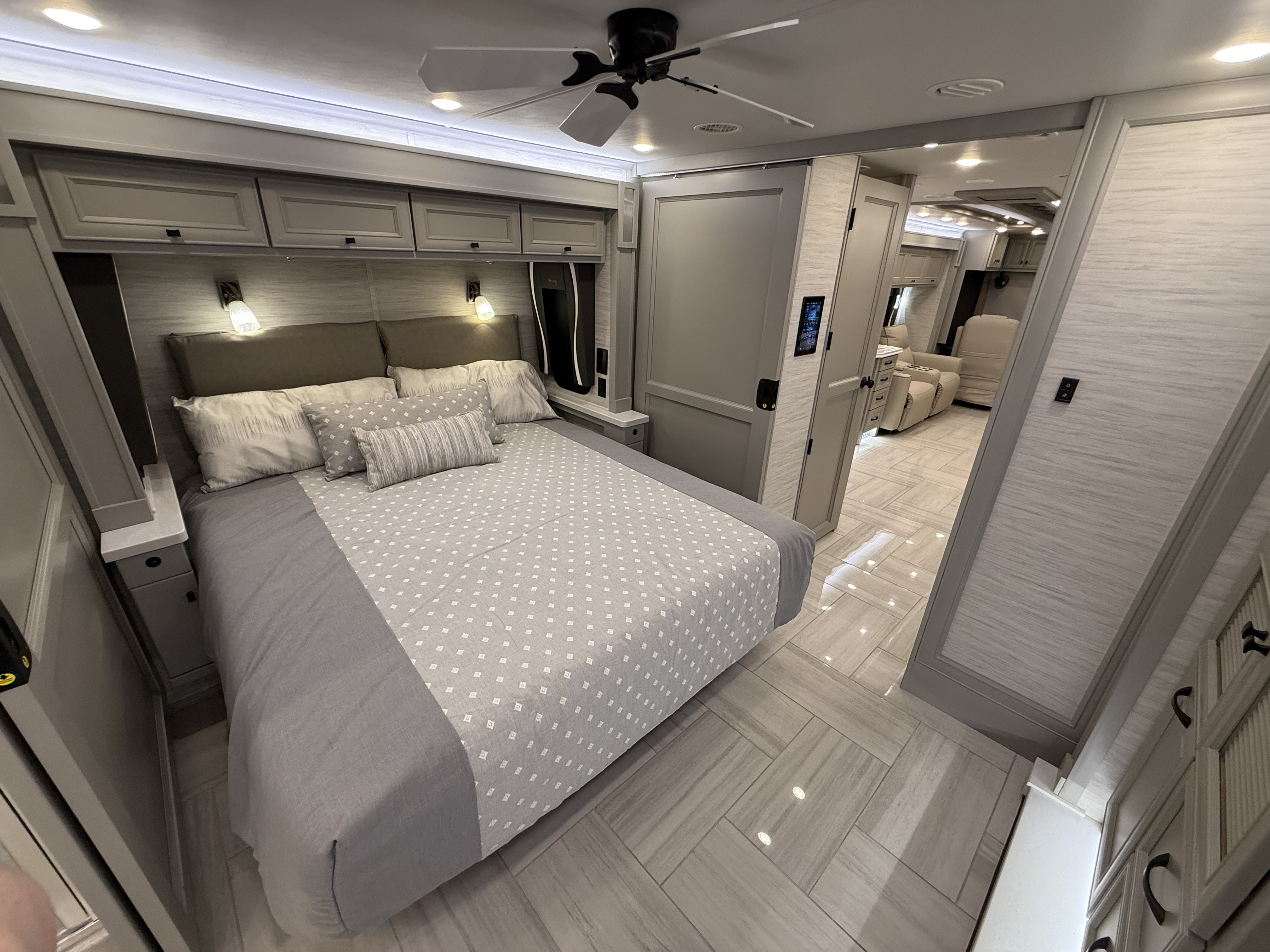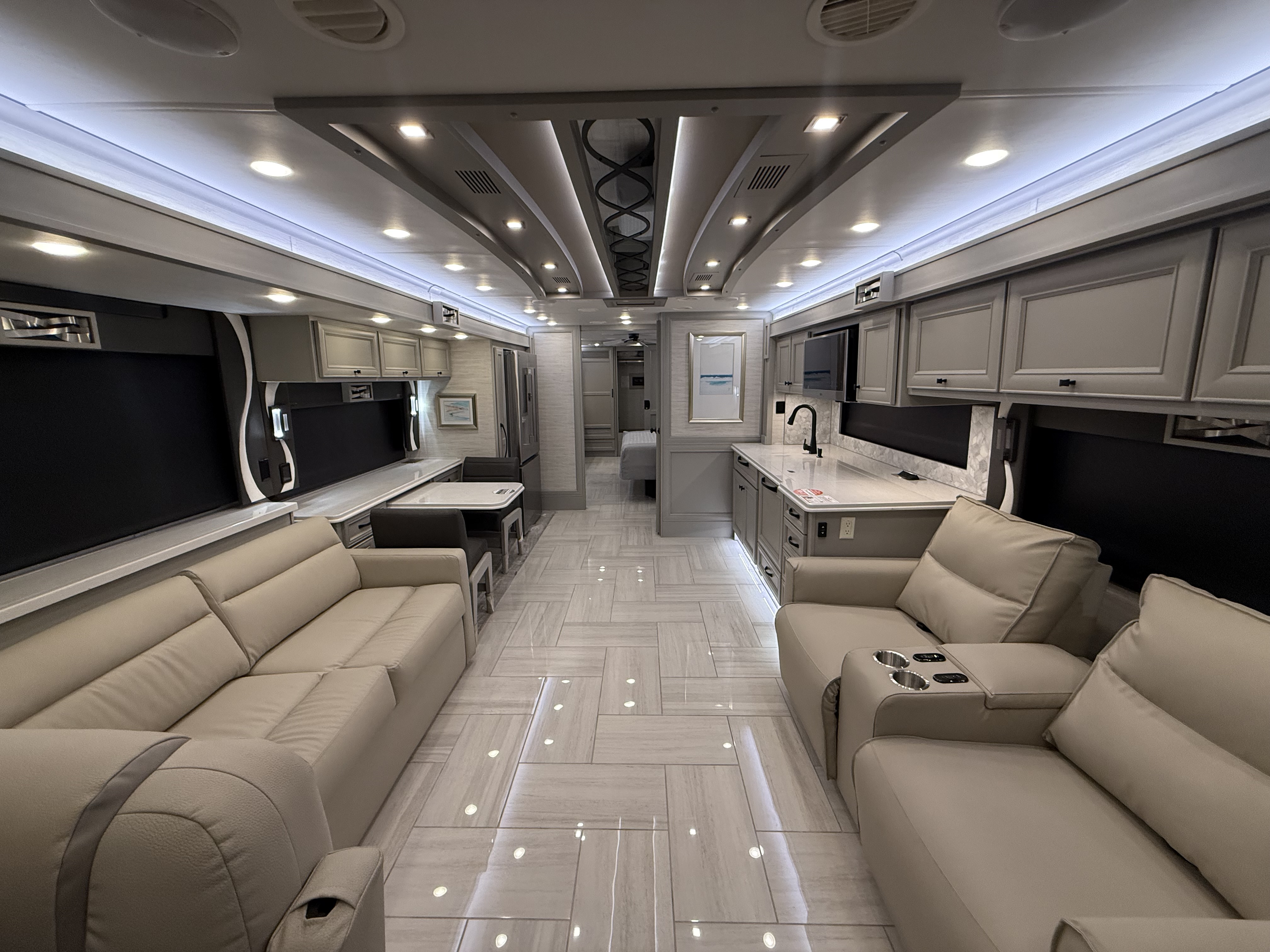 The 2026 Phaeton redefines luxury on the road with a host of new upgrades designed to elevate every journey. With four spacious floor plans ranging from 37′ 9″ to 45′, there’s a perfect option for every traveler. We’re unveiling new interior decors and stylish tile floor choices, including a heated tile option, giving you options to match your tastes and lifestyle. And for pet lovers, the optional Pet Perks Package ensures your furry friends travel in comfort too. No matter where the road takes you, the 2026 Phaeton is ready to take your travel experience to the next level.