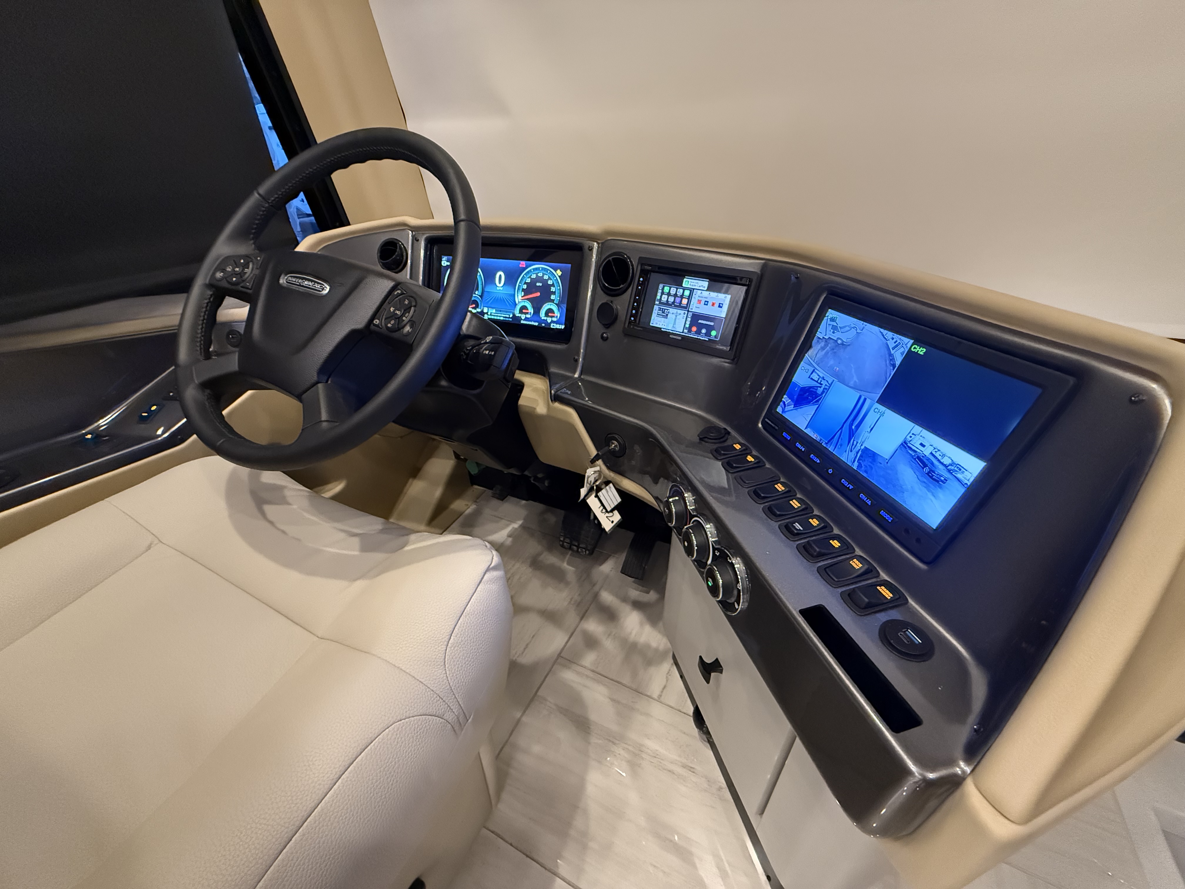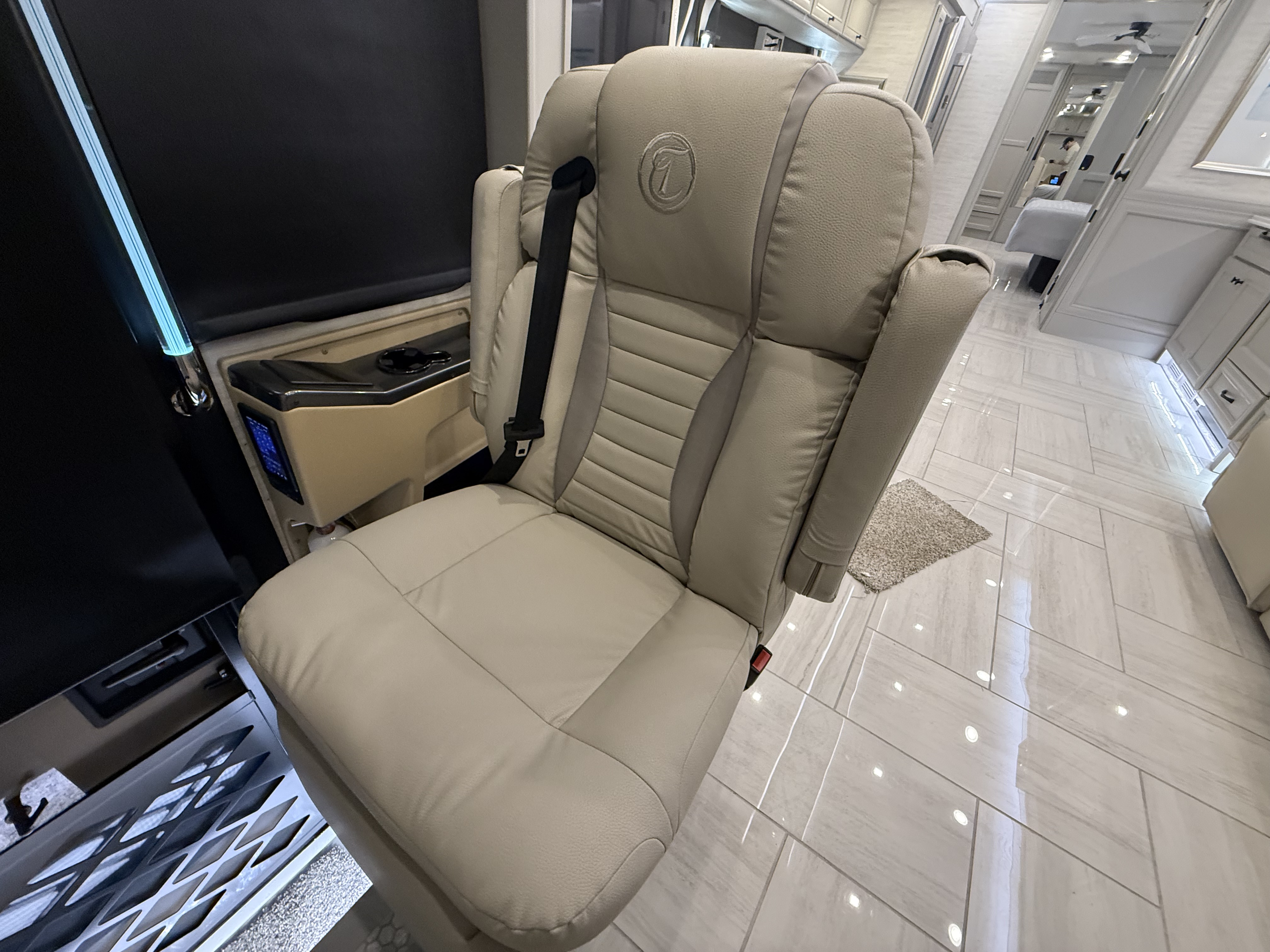 The 2026 Phaeton 40 IH continues its reign as a luxury icon, riding on Tiffin’s proprietary PowerGlide chassis with Independent Front Suspension for a travel experience that is incredibly stable and whisper-quiet. The "IH" designation delivers a completely flat floor throughout the coach, eliminating the rear step-up found in other diesels to create a seamless, single-level interior paved with heated porcelain tile. Surrounded by handcrafted hardwood cabinetry and powered by the reliable Cummins diesel engine, it offers an environment of total comfort controlled by the advanced Spyder Multiplex System that puts every system at your fingertips.